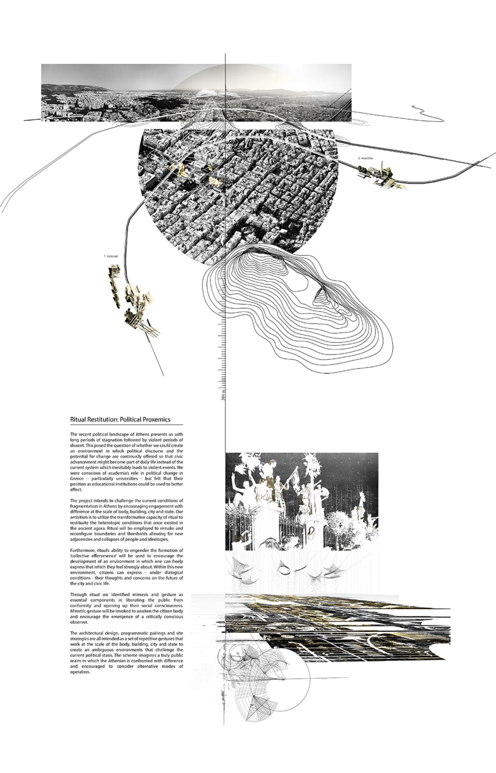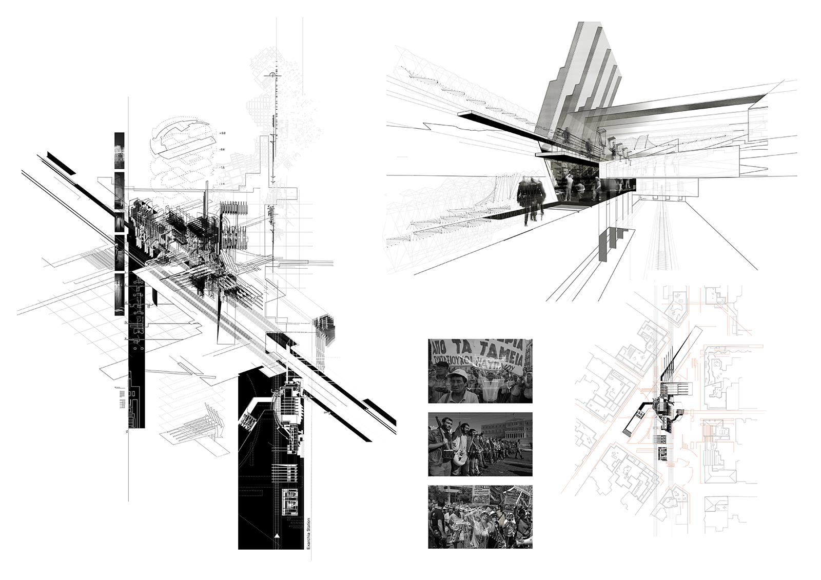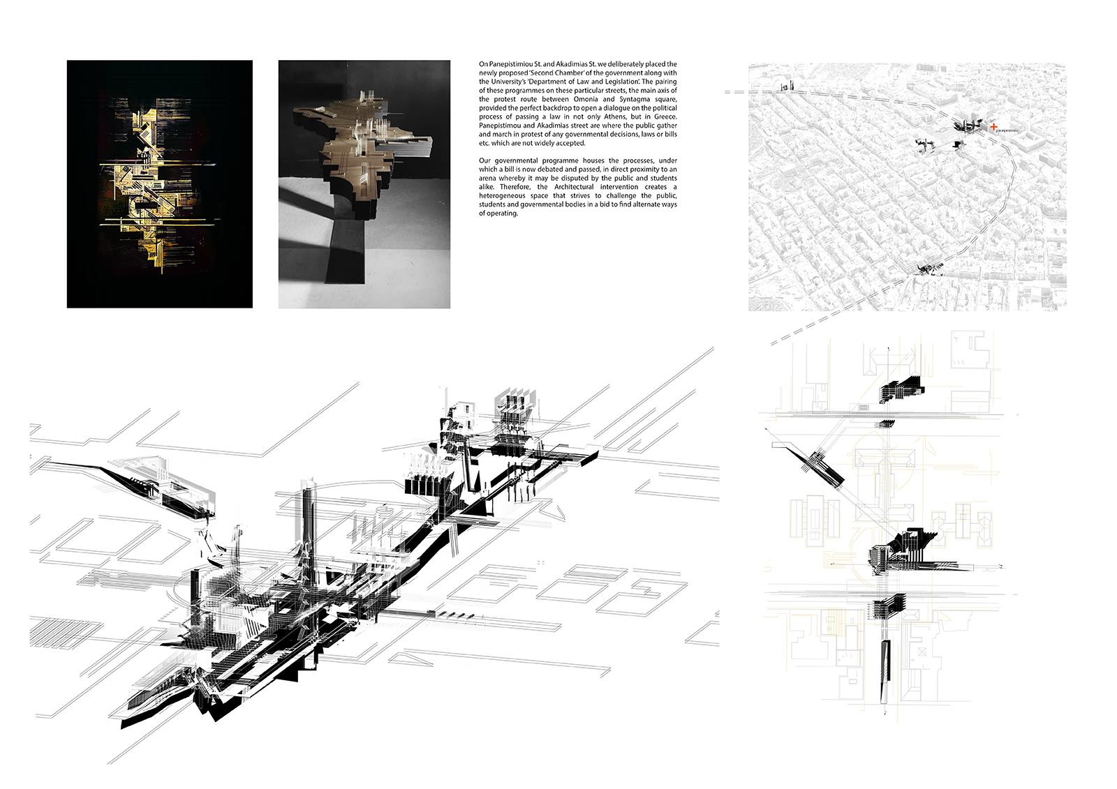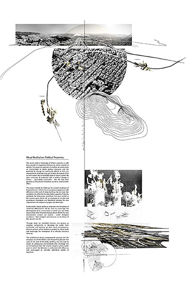 This project aims to question public space in contemporary Athens and its relationship to the political processes at work in the city. It is an investigation into the city’s relationship with democracy, governance and sovereignty and how architecture may intervene in questioning and remaking these relationships.