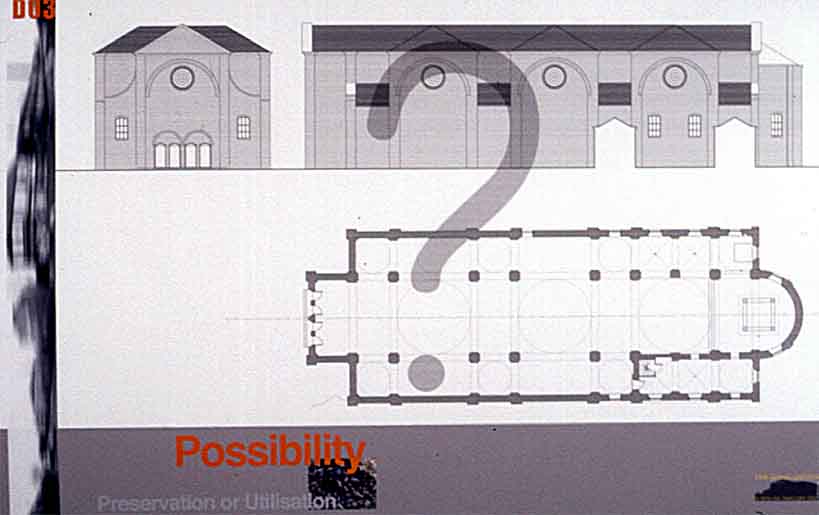 Our Lady of Mercy and St Thomas Part 1 Project 2000 Kevin Logan Manchester School of Architecture | UK Kevin Logan's StatementOur Lady of Mercy and St Thomas of Canterbury.The church, by abandoning the area leaves the residents of Gorton in an unpleasant and unjust wasteland. Is it acting as a responsible institution or could it react to the our changing world?What are the needs of a local community which seems to have no need for the church? Does the answer lie in a physical form of a building, or is it as I suspect more complicated? As architects, are we not being presumptuous in assuming that as so called educated individuals we have the answers to society’s problems? How can we claim the answers when the truth of the problem is none too apparent?I concluded that the the most powerful architectural statement I could achieve with this structure was to do nothing. So therefore my proposal for the church is to strip it back to its original form leaving it devoid of function and returning it to the local community to do as they wish. Then in addition I envisaged a new build element taking its form from the incomplete portion of the church, and reconstructing its never-built volumes. This non-religious community centre provides services for local people yet is still related to the original monument. Our Lady of Mercy and St Thomas of Canterbury, Gorton.The project was to find a new use for an abandoned church in Gorton, a sink estate in East Manchester. Although Sir Walter Tapper’s Italianate building of 1926 is highly ordered the interior volumes interlock to give a space with mystery and depth. The drama is enhanced by an unusual gallery which bridges the nave. The building was never finished, what the missing front two bays might have looked like was the starting point of Kevin Logan’s study.He removed the undistinguished modern additions to the church and proposed new community facilities as a secular replacement for the church which is preserved as a public space. He took the form of his structure as the negative of the not existent front. His flying office wing makes a response to the nave bridge and frames an entrance to a space in front of the church which acts like the public atrium to a Romanesque church. The massing of his building rises and swings round like the spaces of increasing size in the church. In these ways he made imaginative use of historical precedents and showed a feeling for sculptural form, an ability to balance solid and void, and a grasp of construction which is rare in a third year student.