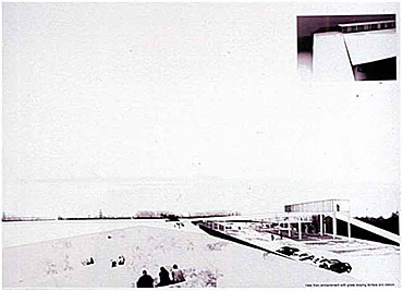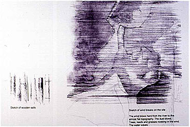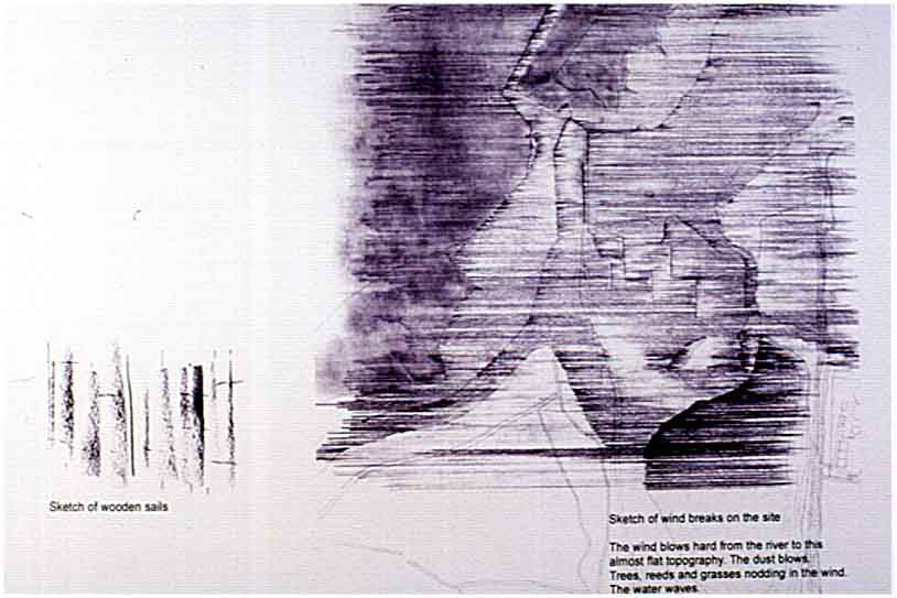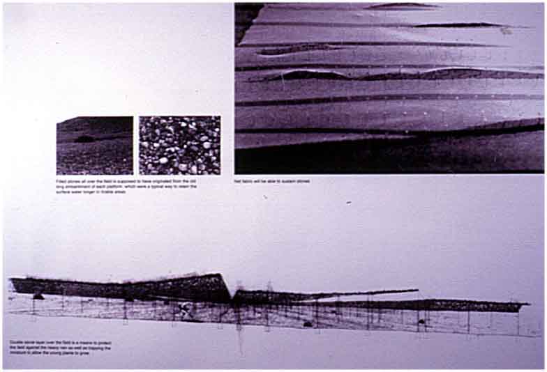 I also identified the essential physical quality of my particular site. An element of a landscape that I was working with became part of the building infrastructure. In time, the landscape tissue met the building tissue. It is intregrated into the spatial and material structure of the land.