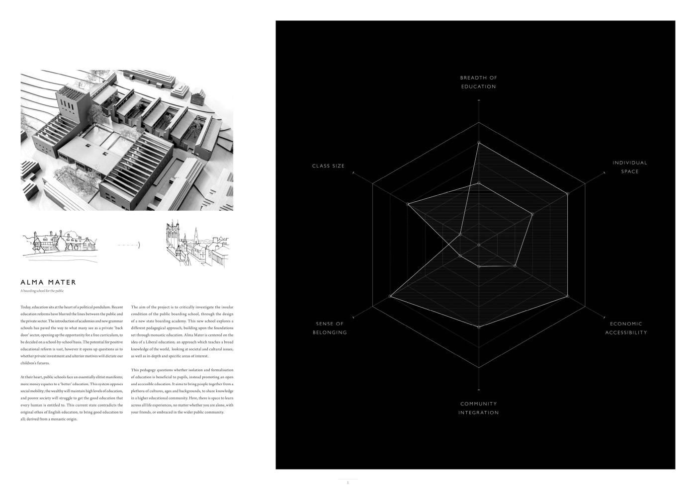 Alma Mater Part 1 Project 2017 Joshua Page University of Bath | UK Alma Mater investigates the insular condition of the public boarding school, questioning whether isolation and formalisation of education is beneficial to youth development. It aims to reinstate the founding monastic principles of the English boarding school, to promote an open and accessible education. The school invokes a Liberal education, striving to bring people together from a plethora of cultures, ages and backgrounds, to share knowledge in a higher educational community. Tutor(s) Martin Gledhill Julia Kashdan-Brown