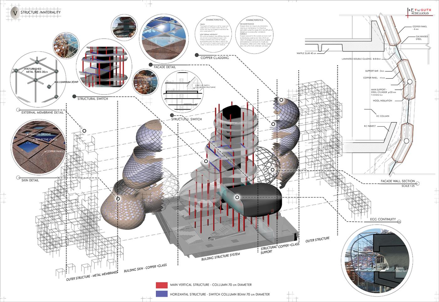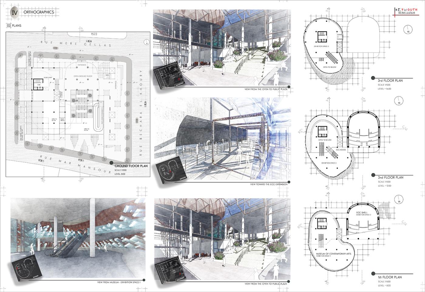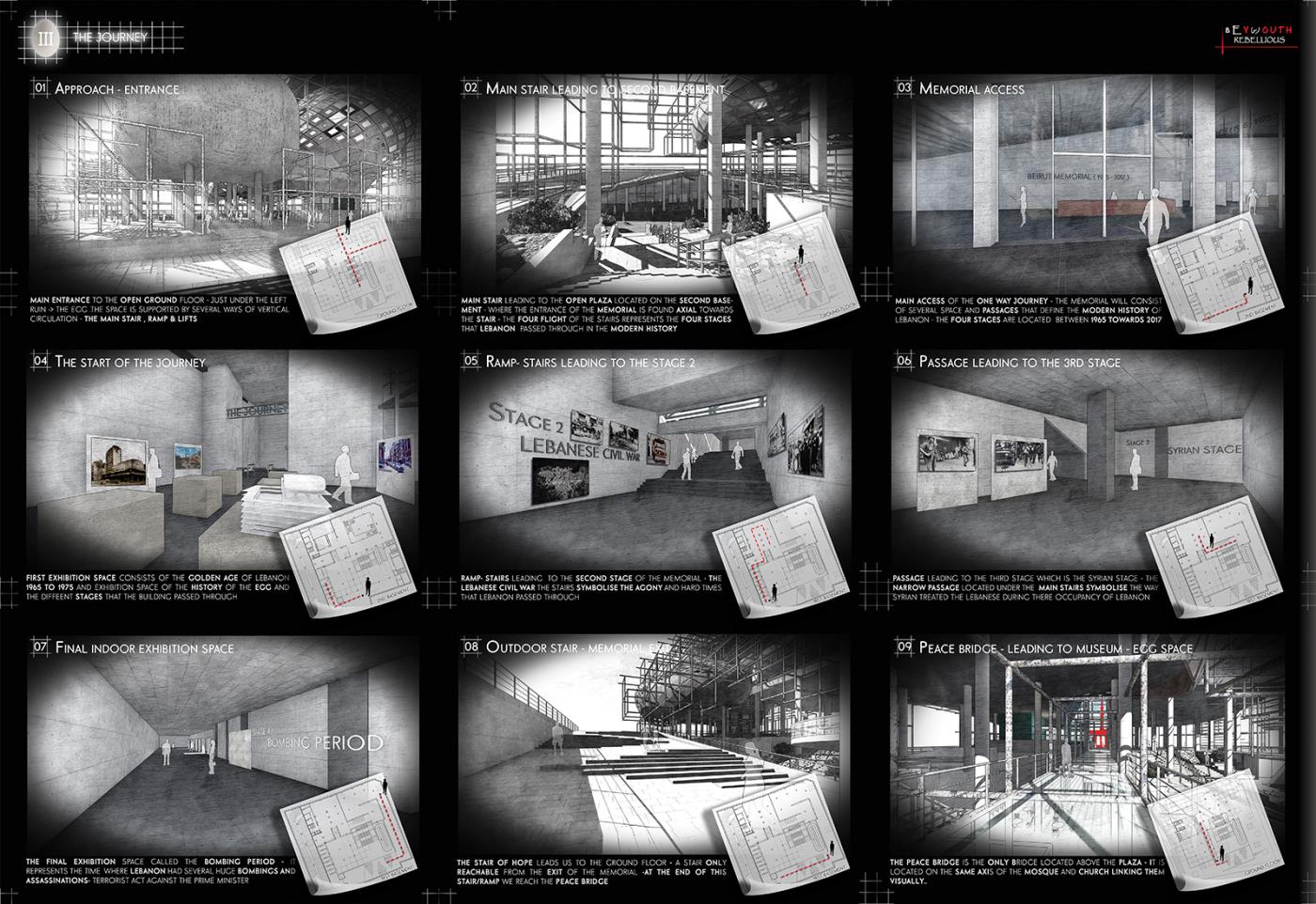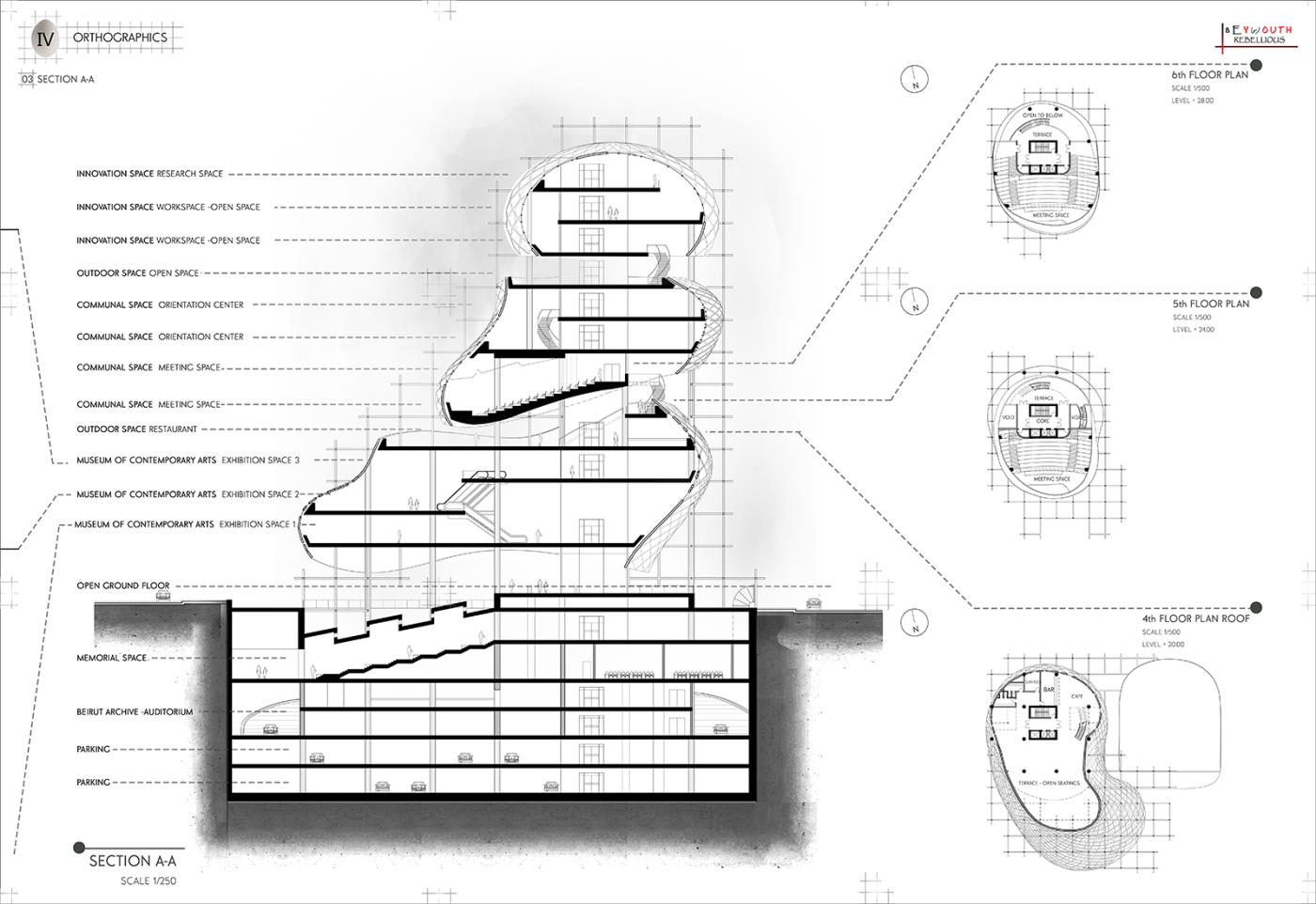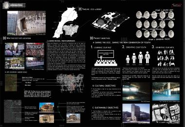 Beyrouth Rebellious Part 2 Project 2017 Bahaa Aboul Khoudoud Beirut Arab University - Debbieh campus | Lebanon Rebellious Beyrouth, is a project dedicated to revitalize and renovate one of Beirut’s Gem of the 60’s, Beirut City Centre, better known as The EGG Beirut, inheriting the name from its Unusual shape & designed previously by Joseph Philippe Karam.The proposed project includes the renovation of the forgotten ruin to a facility dedicated to the youth society of Lebanon & the History of Beirut. Tutor(s) Nader Azab Hesham El-Arnaouty Ibtehal El-Bastawissi