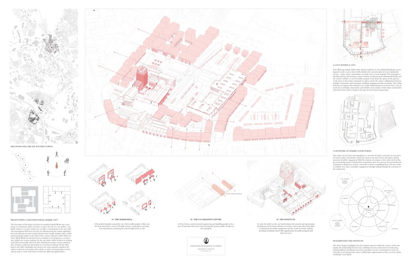 The Third Industrial Revolution Part 2 Project 2018 Timothy Fentem University of Nottingham Nottingham | UK Where the Third Industrial Revolution can be defined as a recent surge in making things within the age of innovation, my thesis proposal sought to understand the architectural implications of this on our future cities and how we can harness this to rebuilt our communities. This resulted in me transforming Spode Works, an Abandoned ceramic factory, into a Community Ceramic Institute to spearhead the future of the industry. Tutor(s) Tim Collett