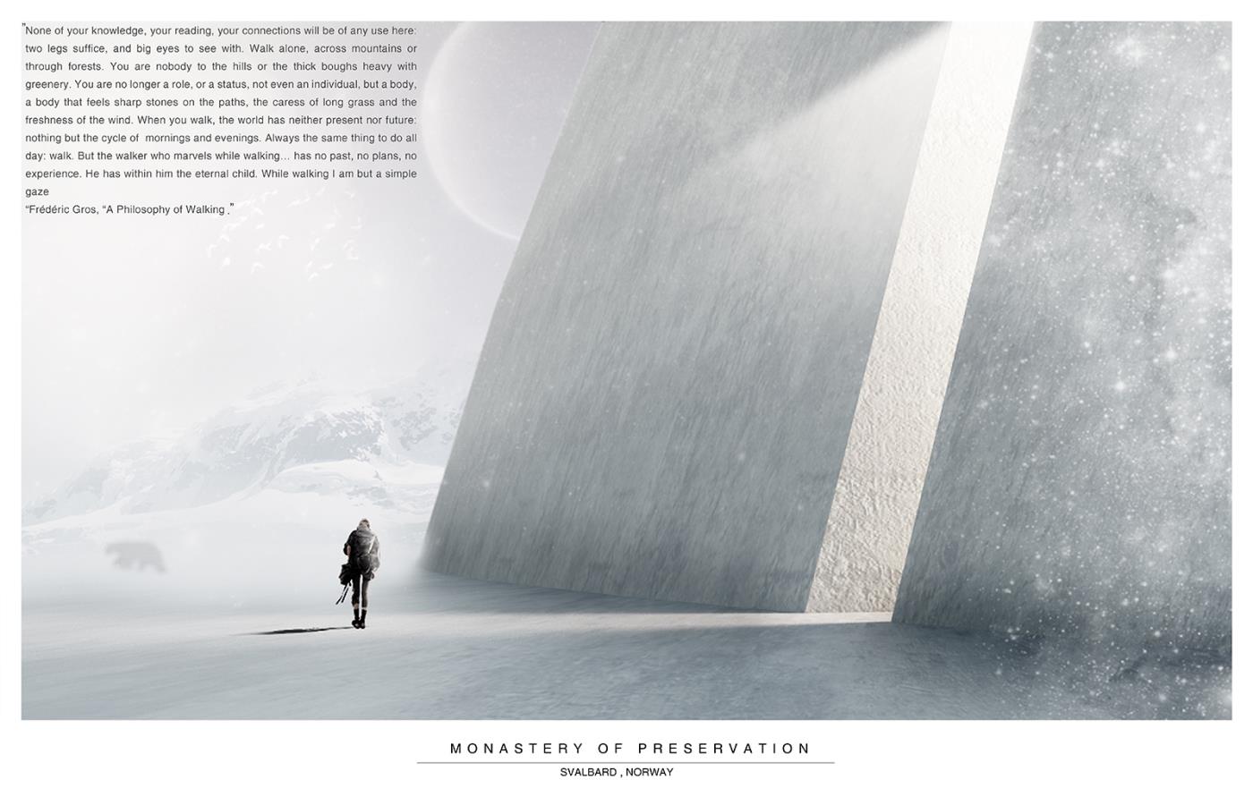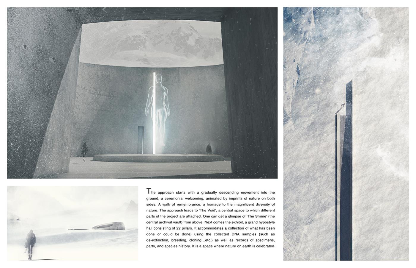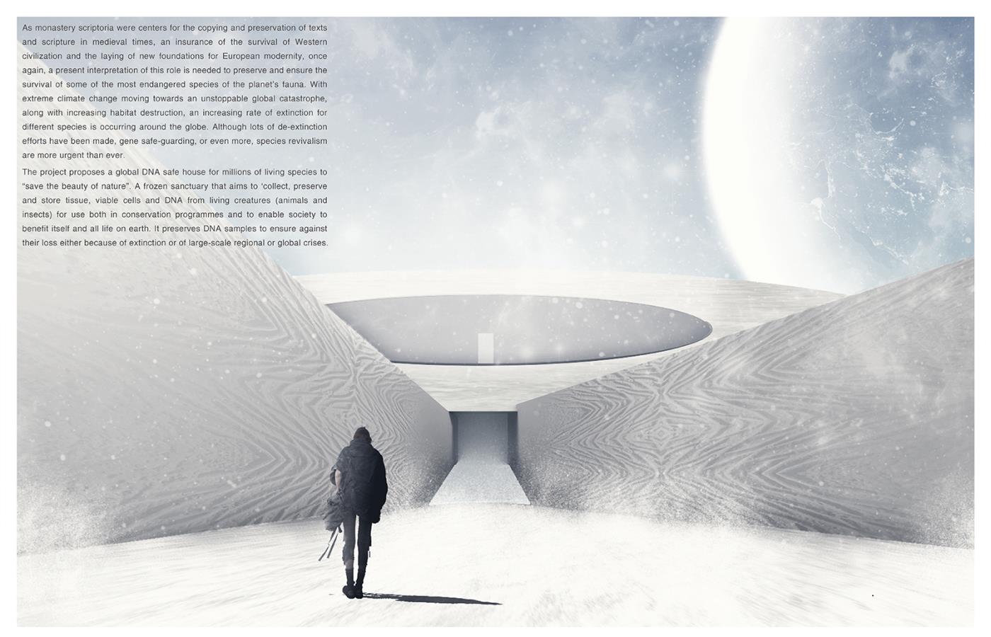 Monastery of Preservation Part 1 Project 2018 Mahmoud Amgad Arab Academy for Science, Technology & Maritime Transport - Smart Village Campus Cairo | Egypt The project proposes a global DNA safe house for millions of living species to “save the beauty of nature”. A frozen sanctuary aims to ‘collect, preserve and store tissue, viable cells and DNA from living creatures for use in conservation programmes and to enable society to benefit itself. It preserves DNA samples to ensure against their loss either because of extinction or of large-scale regional or global crises. Tutor(s) Mazin Abdulkarim Kareem Hammouda