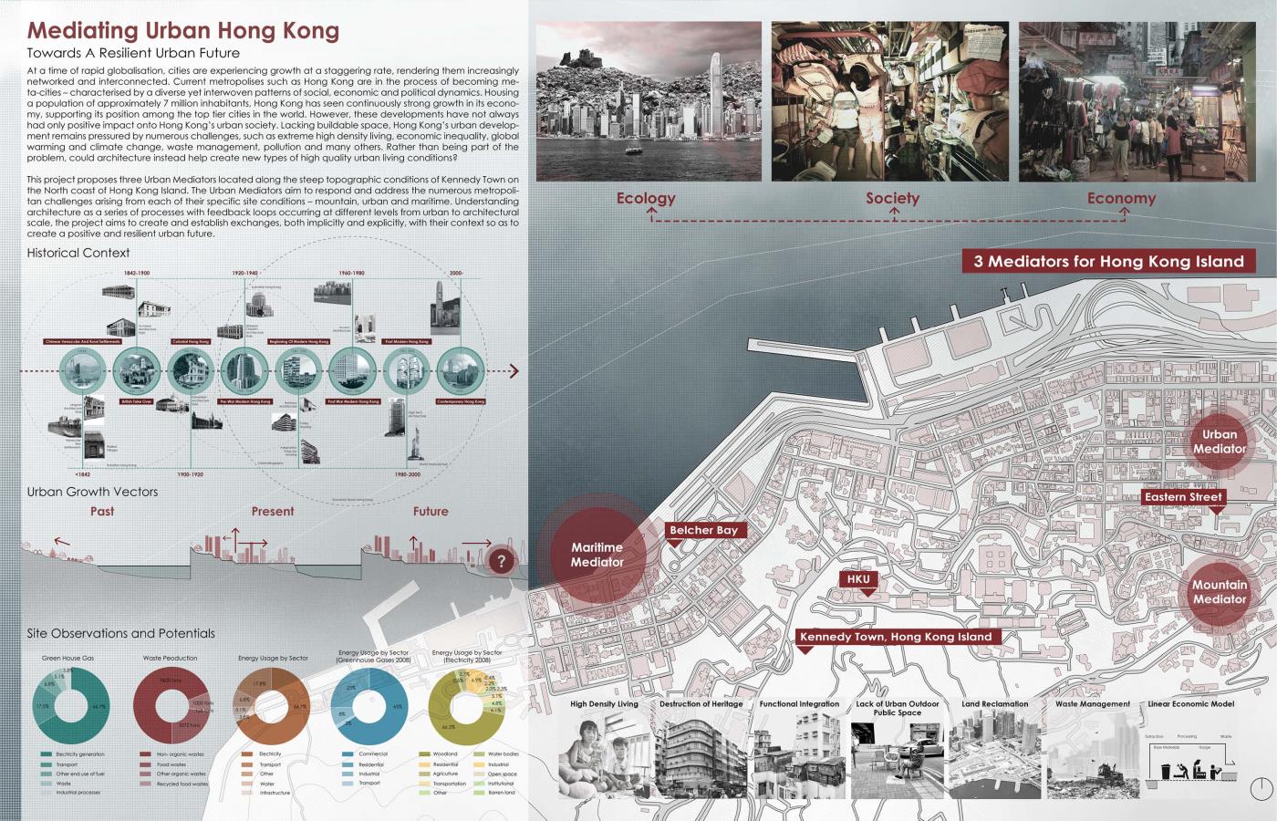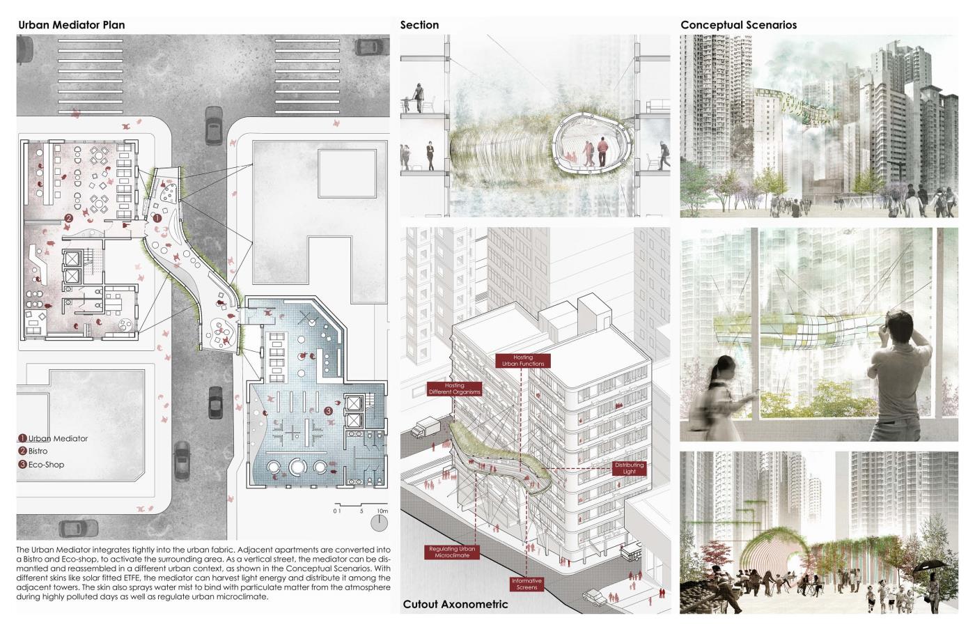 Mediating Urban Hong Kong Part 2 Project 2018 Chitraj Bissoonauth Xi'an Jiaotong-Liverpool University | China At a time of rapid globalisation, cities are experiencing growth at a staggering rate, rendering them increasingly networked and interconnected. However, these developments also had repercussions. The urban areas of Hong Kong are places where these pressures are strongly felt. Consequently, this project proposes three urban interventions in Kennedy Town, whereby each proposal develops both physical and virtual links to their immediate context to impact positively the surrounding. Tutor(s) Thomas Fischer Christiane Herr