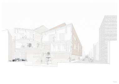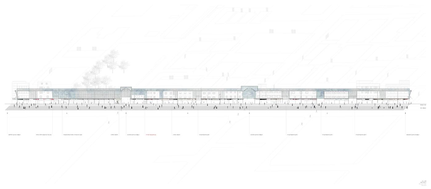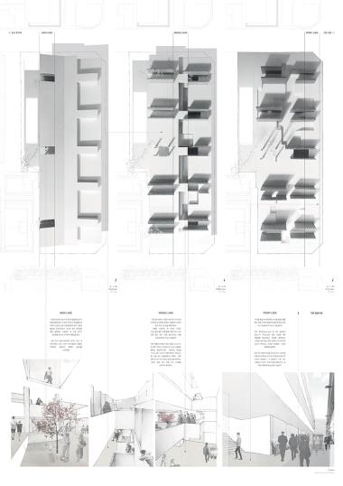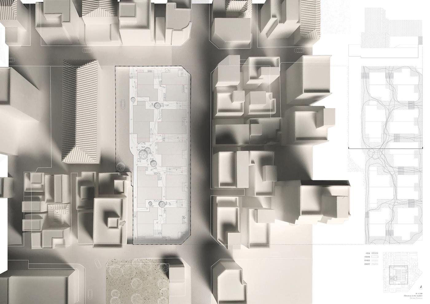 Mangwon Market - Sustainability in Architecture Part 1 Project 2018 Seol Baek Korea National University of Arts | South Korea Mangwon market is a Korean traditional market in Seoul. Due to the people’s interest in a traditional market, which has been growing recently, there is a lot of influx of outsiders along with the existing demand of local residents. However, the current market has difficulty in meeting the demands. This project proposes a new form for a sustainable market through the interaction of commercial spaces, residential spaces and open spaces. Tutor(s) Sooyoung Kim