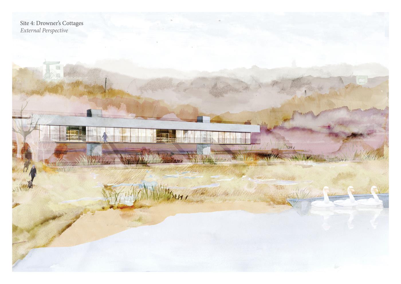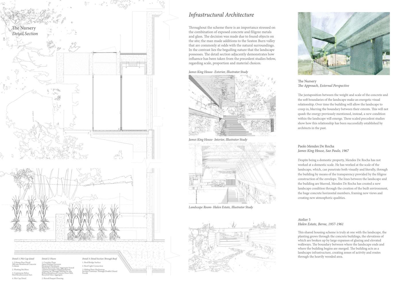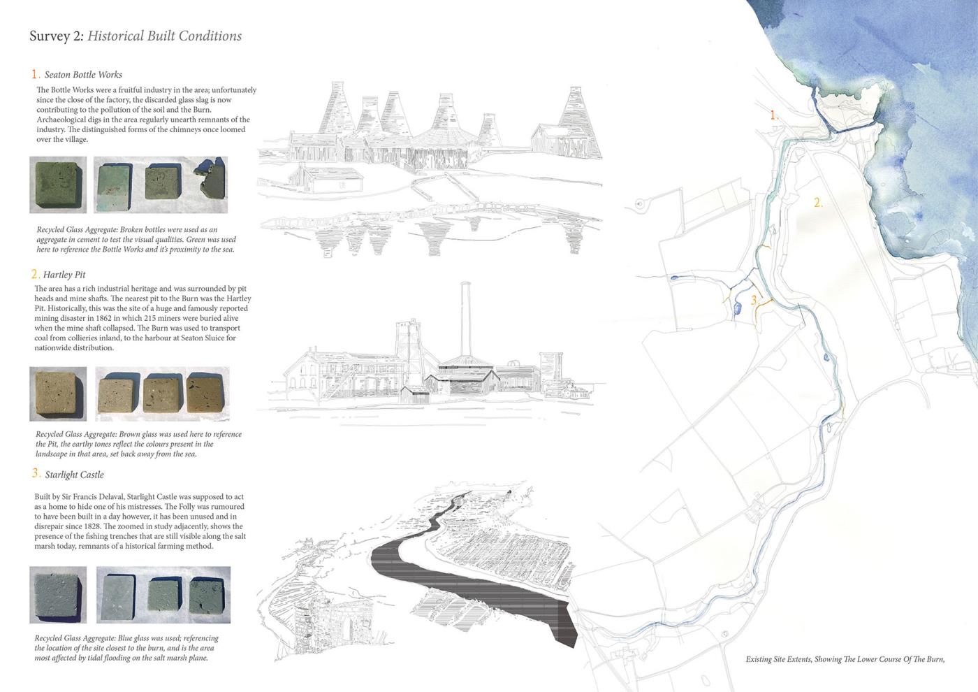 Building as a Function of The Landscape: Reinstating and Recovering Industry Along Seaton Burn Part 2 Project 2018 Florence Bill Northumbria University Newcastle | UK This thesis has explored re-establishing infrastructure in a post-industrial landscape. The site was chosen after exploring the Northumbrian coastline in pursuit of a landscape displaying awe inspiring compositional qualities. The emergent design concepts were based on rigorous readings of the boundaries of different landscape conditions present, within the extents of the lower course of Seaton Burn. The resultant architectural proposal, then, becomes a new landscape condition. Tutor(s) Shaun Young