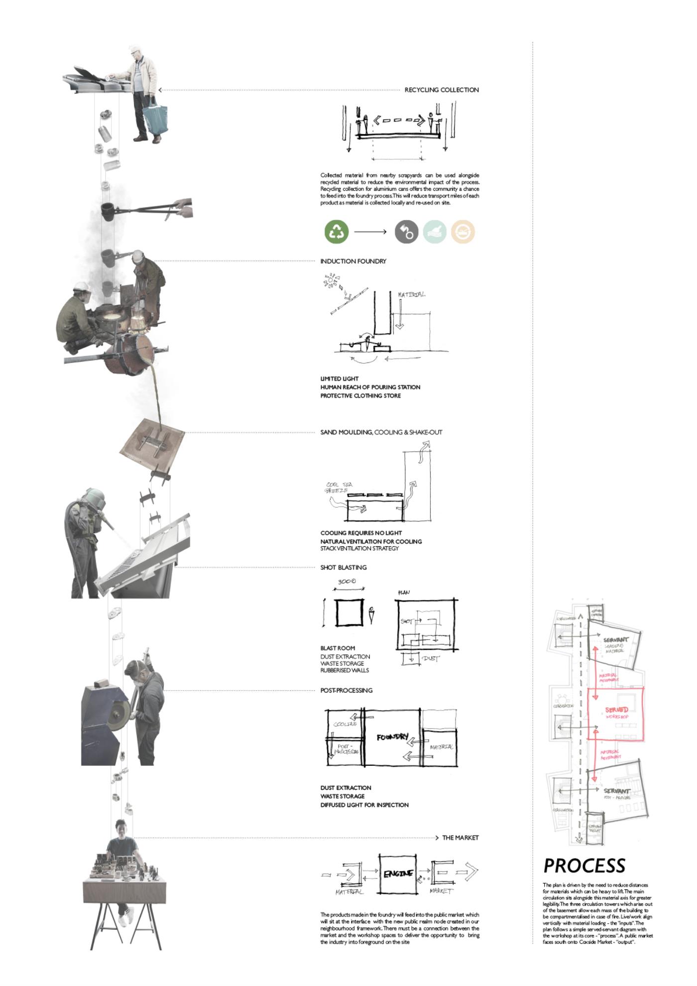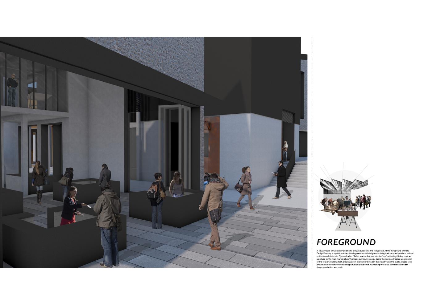 deposit -input - at the ‘rear’ through foundry - process - to a public market facing out