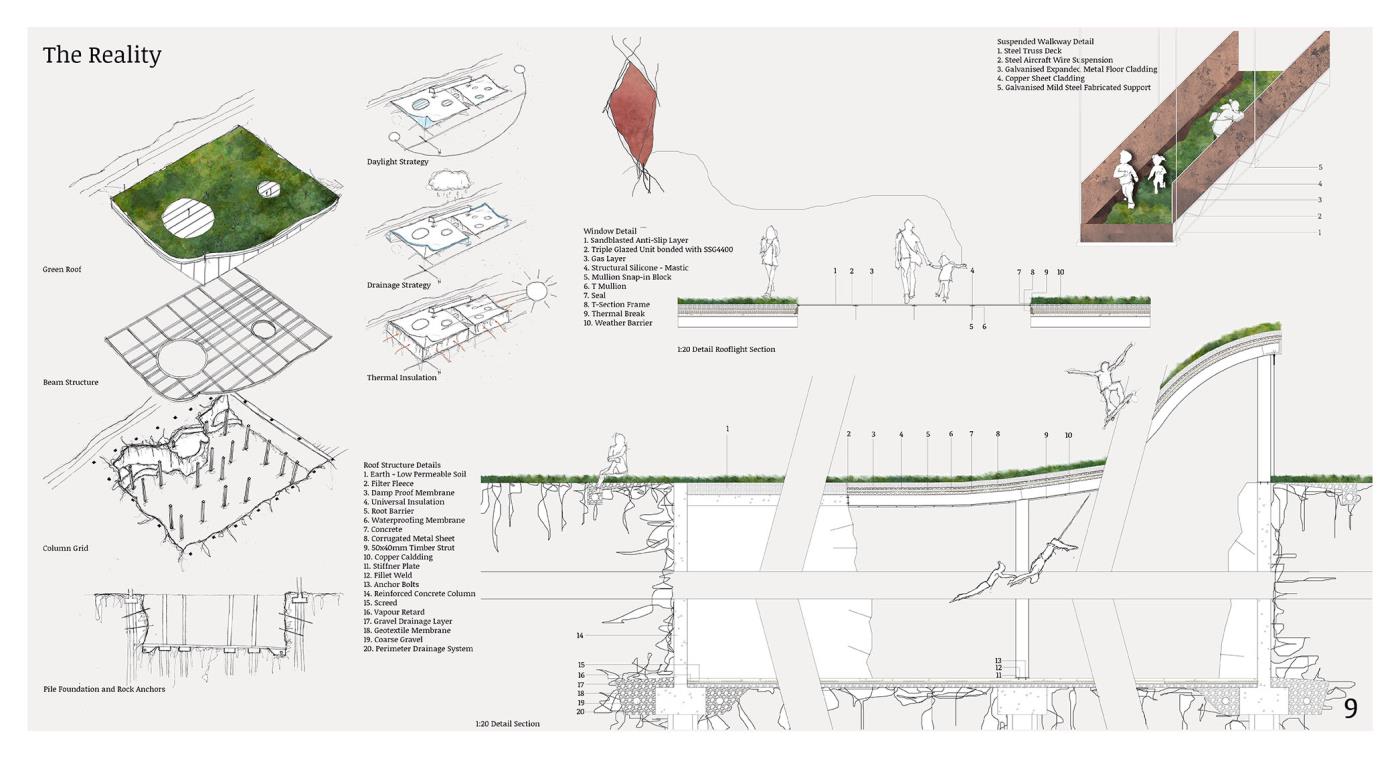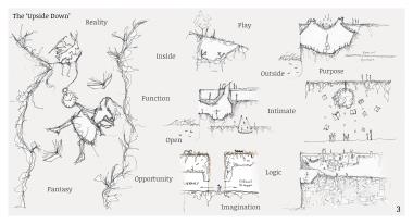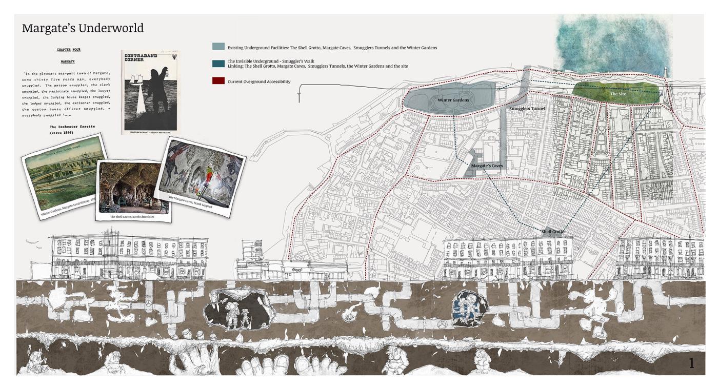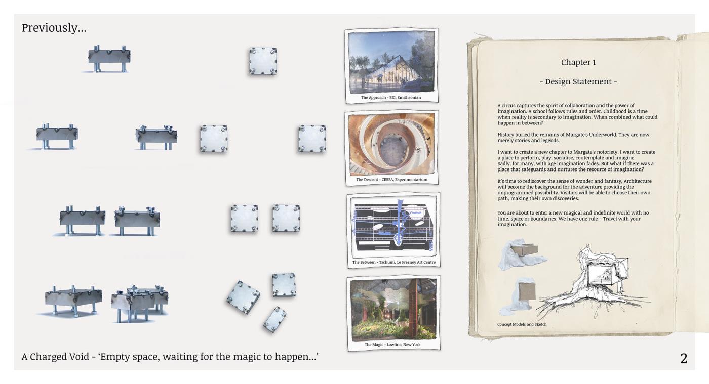 The Circus of the Between – A Circus School for the National Centre for Circus Arts Part 1 Project 2019 Megan Griffiths University of Kent | UK ‘I wonder if I shall fall right through the earth! How funny it’ll seem to come out among the people that walk with their heads downwards!’ Lewis Carrol, Alice in WonderlandConceived as a space between reality and fantasy, this project explores multiple thematic narratives of duality and synthesis in a place for the practice and performance of circus arts, resonant within the historical and contemporary urban conditions of Margate itself. Mostly burrowed into the shoreline chalk cliff-face, the majority of formal teaching and performance spaces are hidden underground, suspended within charged voids of unprogrammed possibility, inviting enchanted inhabitation….Through this physical and representational interplay of oppositions a poetically pragmatic architecture emerges, creating a venue of immersive experience that becomes a place of multiple social engagement and resource, engendering a diverse community of performers and teachers, Margate residents and day-trippers. Tutor(s) Jef Smith