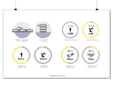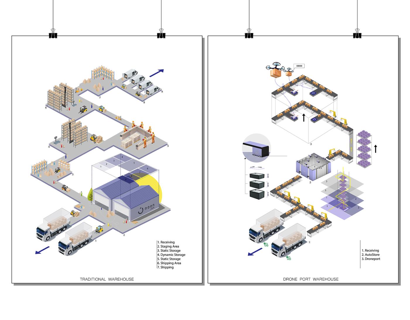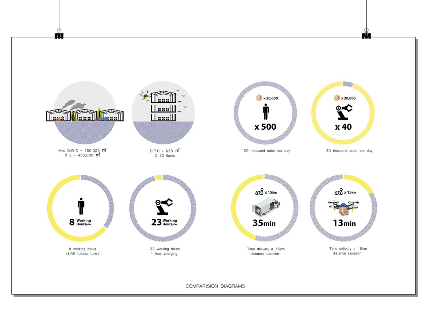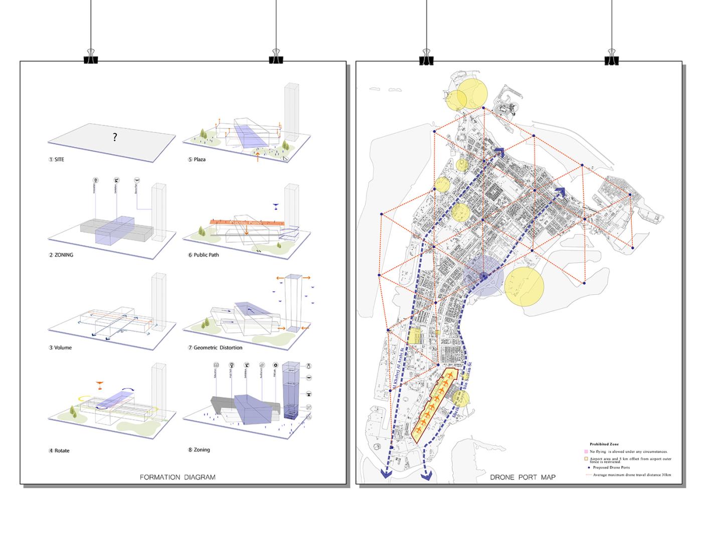 The project aims to introduce a new infrastructure in the city through the ‘Drone’ technology. The Drone port will explore the impact of the drones in the near future and its third dimension consequential transformation of the urban space. Today, Drones are fast developing technology in both Commercial and non-commercial sectors, in verity of uses. Therefore, introducing the Automation center is a much-needed step for a better future. The Center is a tool to get prepared for a future of artificial intelligence, nanotechnology, solutions to global problems, and target sustainability through technology to create a less carbon emission future.