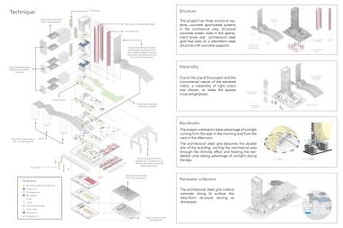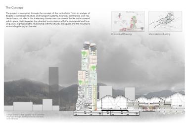 The commercial area is connected to the residential tower that, although is for the exclusive use of residents, it is conceived under the same notion of community by having green areas that work as interior walkways that connect each floor of the tower, and at the same time function as an ecological bridge between the eastern hills and the Bogota savanna.