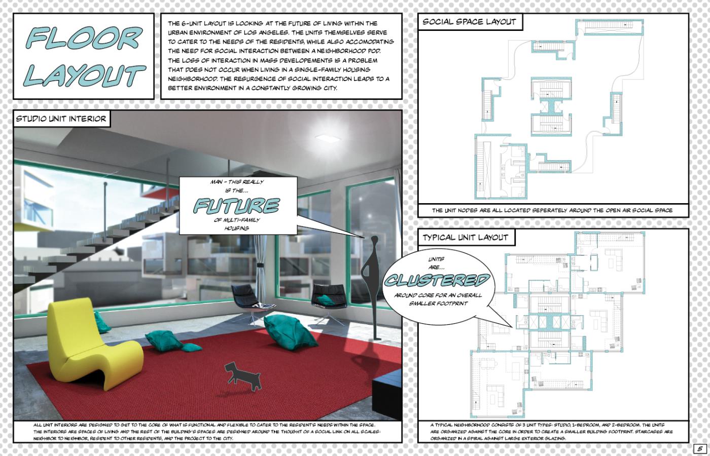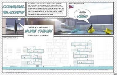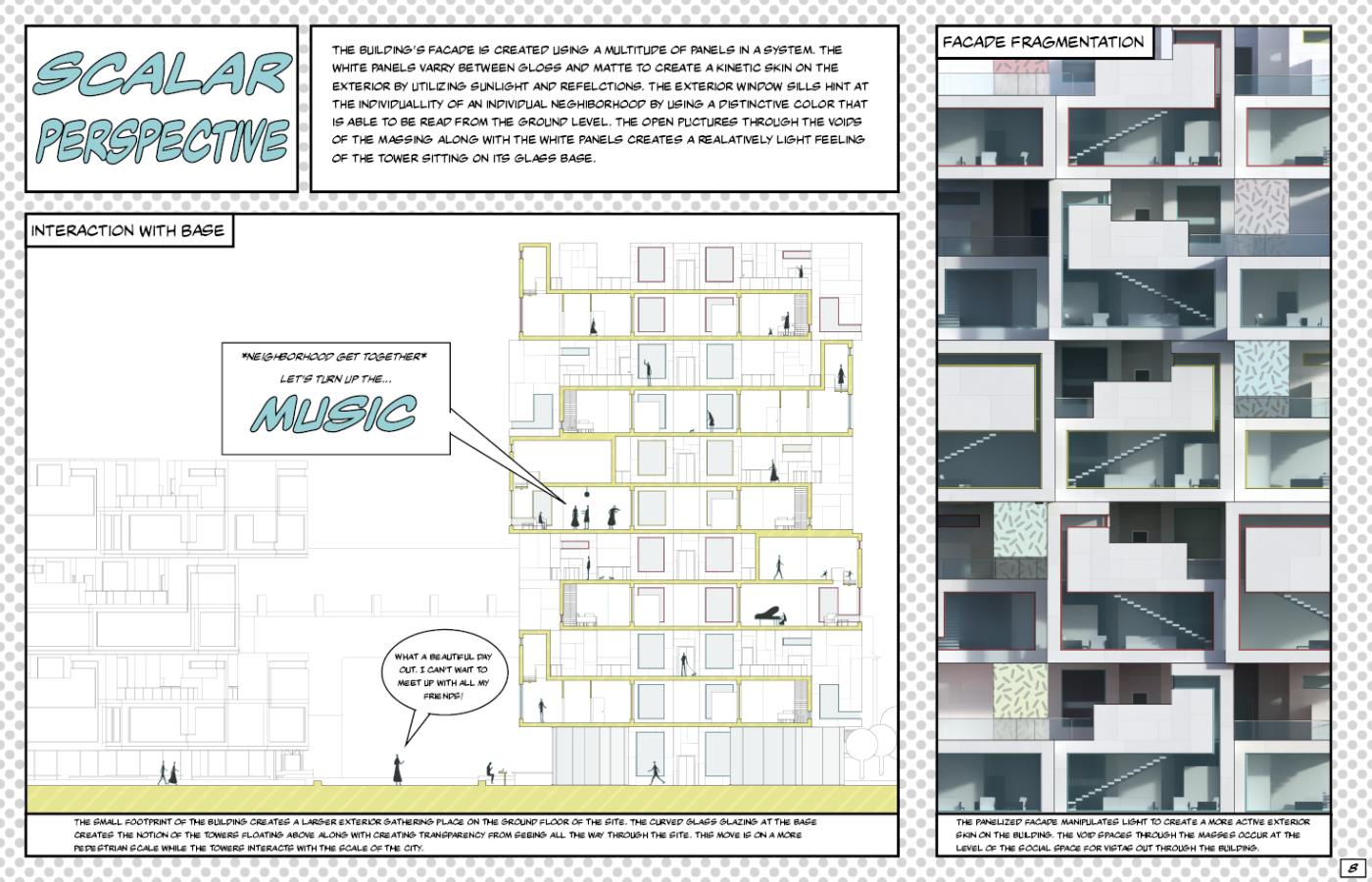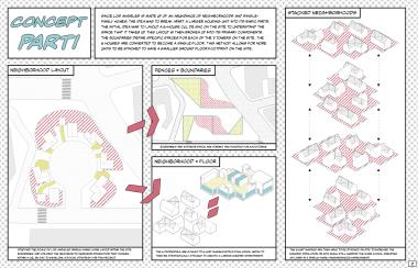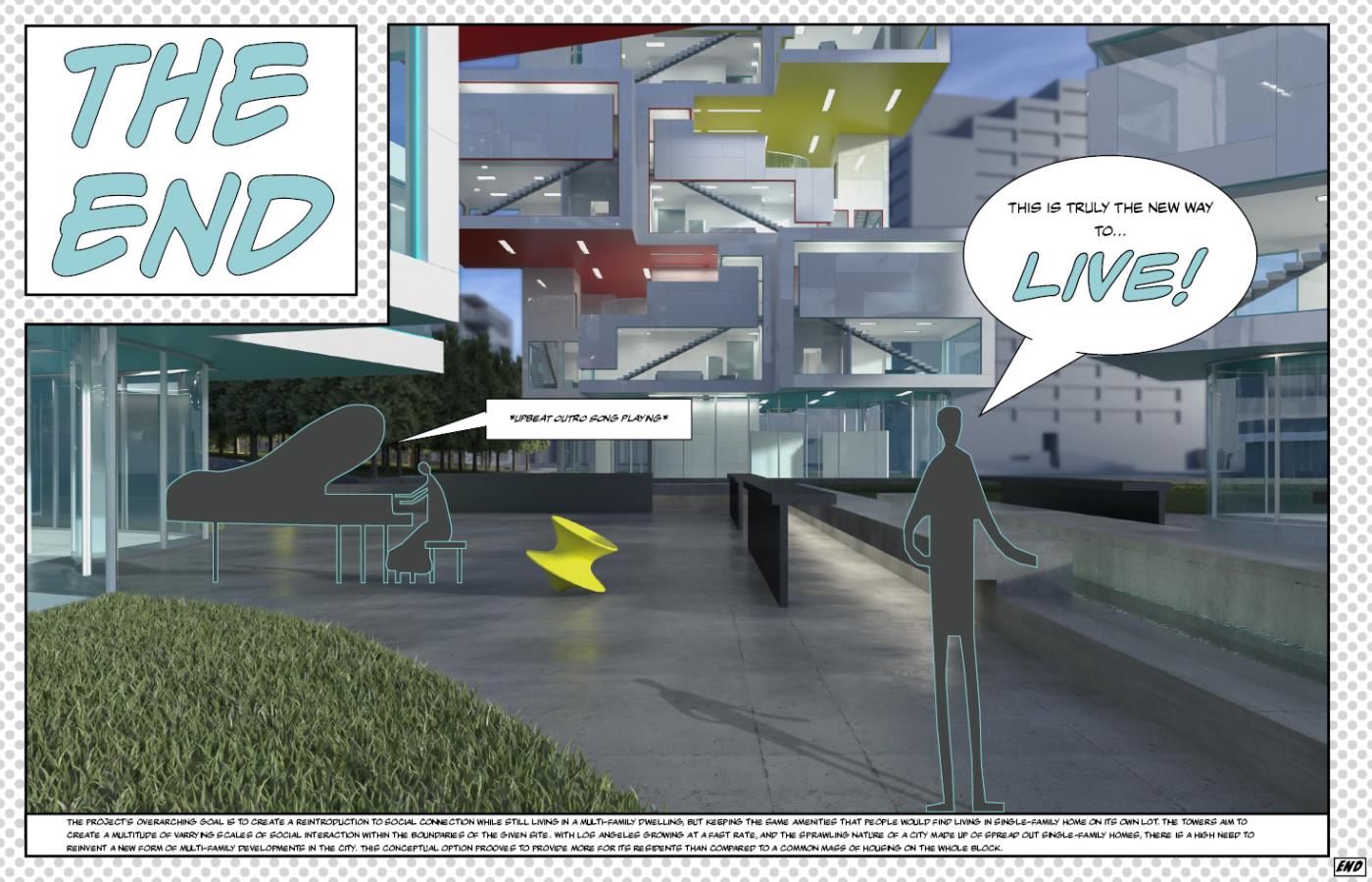 Pivoting Neighborhoods: The Future of Social Interactions in Housing Part 1 Project 2020 Matthew Wilson University of Arkansas | USA While Los Angeles is built around an abundance of low-density single-family homes. Pivoting Neighborhoods augments the idea of a common neighborhood and its amenities to create higher density within a smaller footprint. The aggregate form of the tower is made up of floor plates that alternate between a 6-unit plan and a shared open-air social space. Each floor of apartment units is manipulated strategically from the floor below to create the irregular form of the towers that obscures the clear reading of the individual units. The shared social space, through which residents enter their apartments, invite random interactions amongst the tower dwellers. This allows people to feel more comfortable sharing space with immediate neighbors, without the burden of needing to know everyone in the complex. Tutor(s) Charles Sharpless