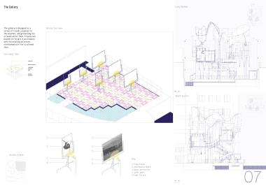 The project proposes a meanwhile use of the local industrial sites. Placed within an existing site structure, the project is comprised of suspended studio units, rainwater harvesting roofs and a central spiral stair. It forms a sequence of spaces adaptable to the needs of its users through precast concrete elements that are meant to be assembled in different variations.