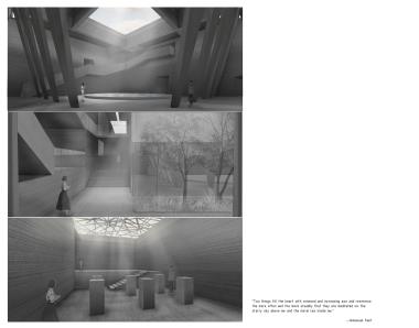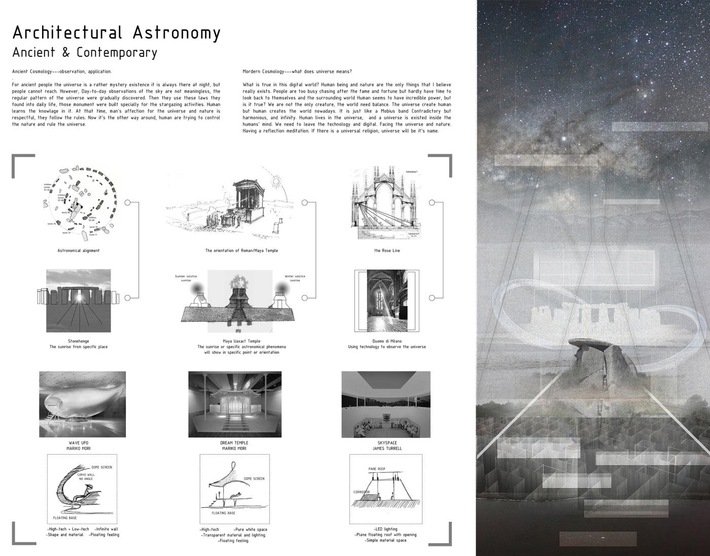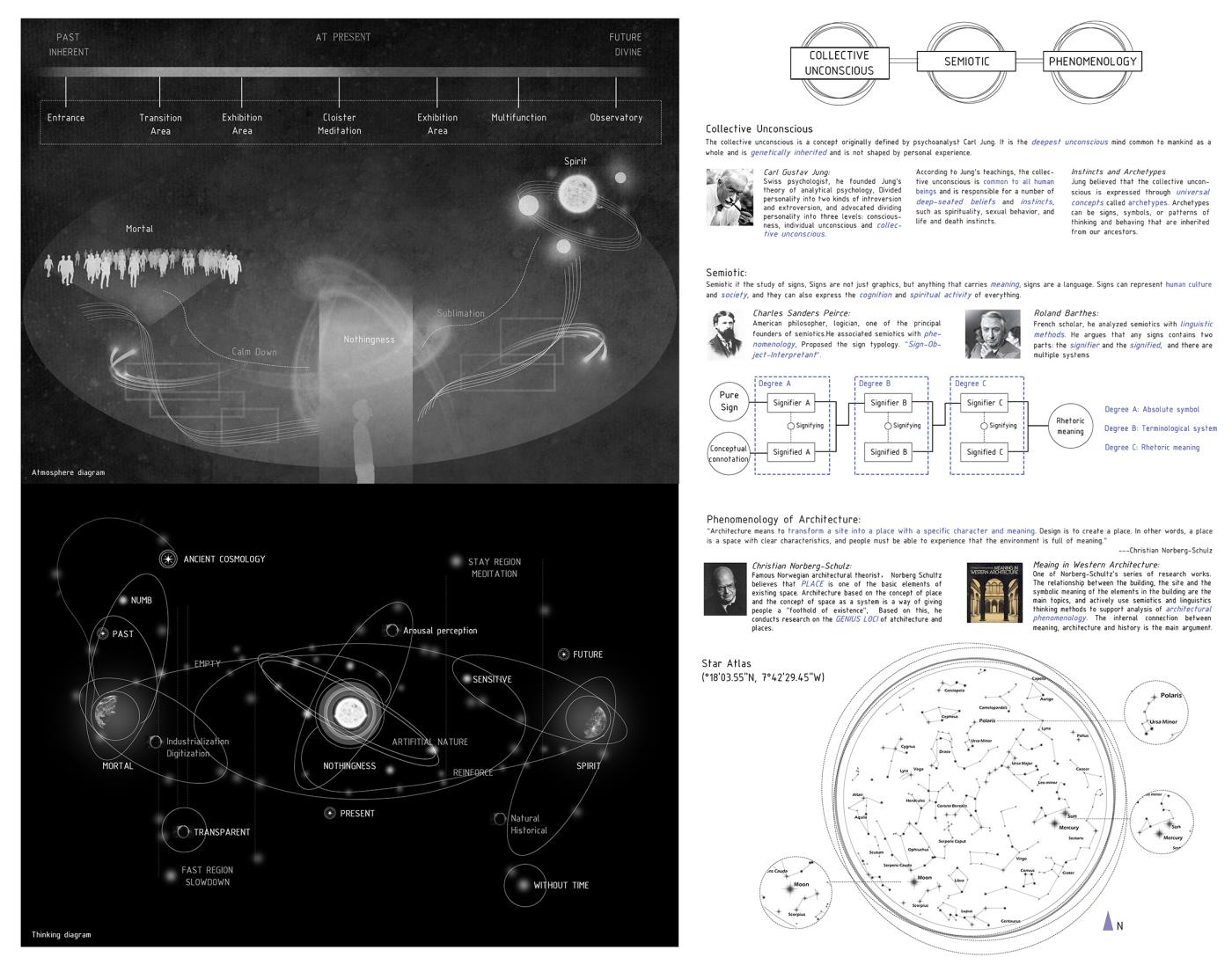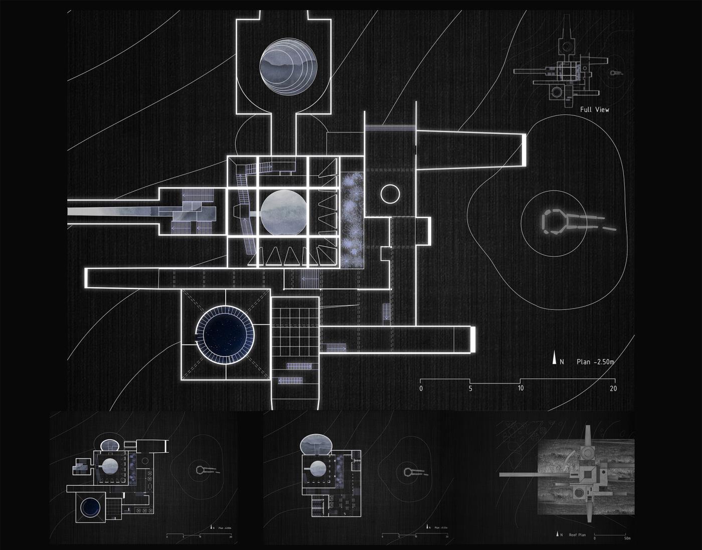 Mind Oasis - The Starry Sky Above Me Part 1 Project 2020 Wenxi Wang Xi'an Jiaotong-Liverpool University | China Mind Oasis is a tourist facility built on the Portuguese plain. Its concept is to build a soul purification machine in a place far away from the urban context, by taking natural scenery, especially astronomical scenery (starry sky, sunrise, sunset) into the architecture, combined with technology, to reawaken people’s attention to natural beauty around and to feel it from a new perspective, so as to create a place where people’s spirit can temporarily stop, reflect, and recharge. Philosophical theory for example the phenomenology of architecture, the collective unconscious and the semiotic are used as design strategies. The Mind Oasis will continue and reinterpret the astronomical and humanistic significance of Aldeia da Mata dolmen on the site, create a modern stone monument, and combine nature, starry sky with architecture and technology through different journeys and spaces design to make people rethink about the relationship between the inner soul and nature and the universe, and regain the peace and power of the soul. Tutor(s) Juan Carlos Dall'Asta