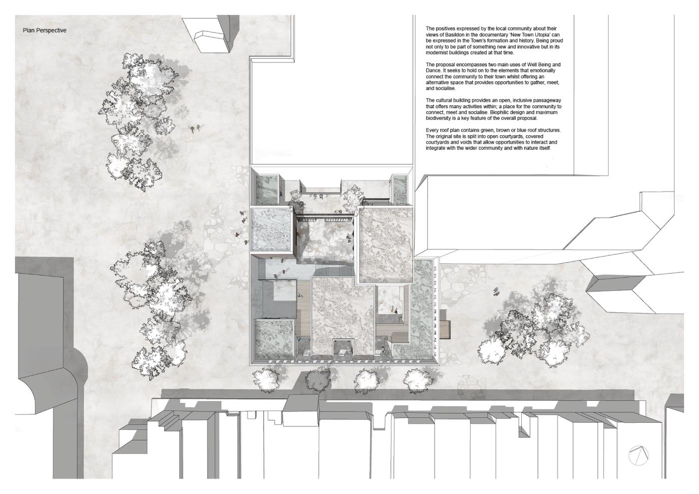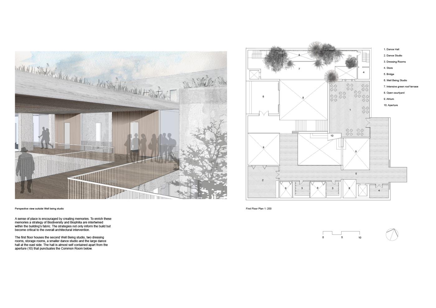 The proposal captures the intangible qualities of place that enrich individual relationships between people; community and their physical surroundings. Biophilia and biodiversity provide the critical framework; creating the atmosphere in which a sense of place can be successfully and sustainably nurtured. They o?er strong links between memory, experience and emotion that has the power to imprint a lasting connection between person and place.