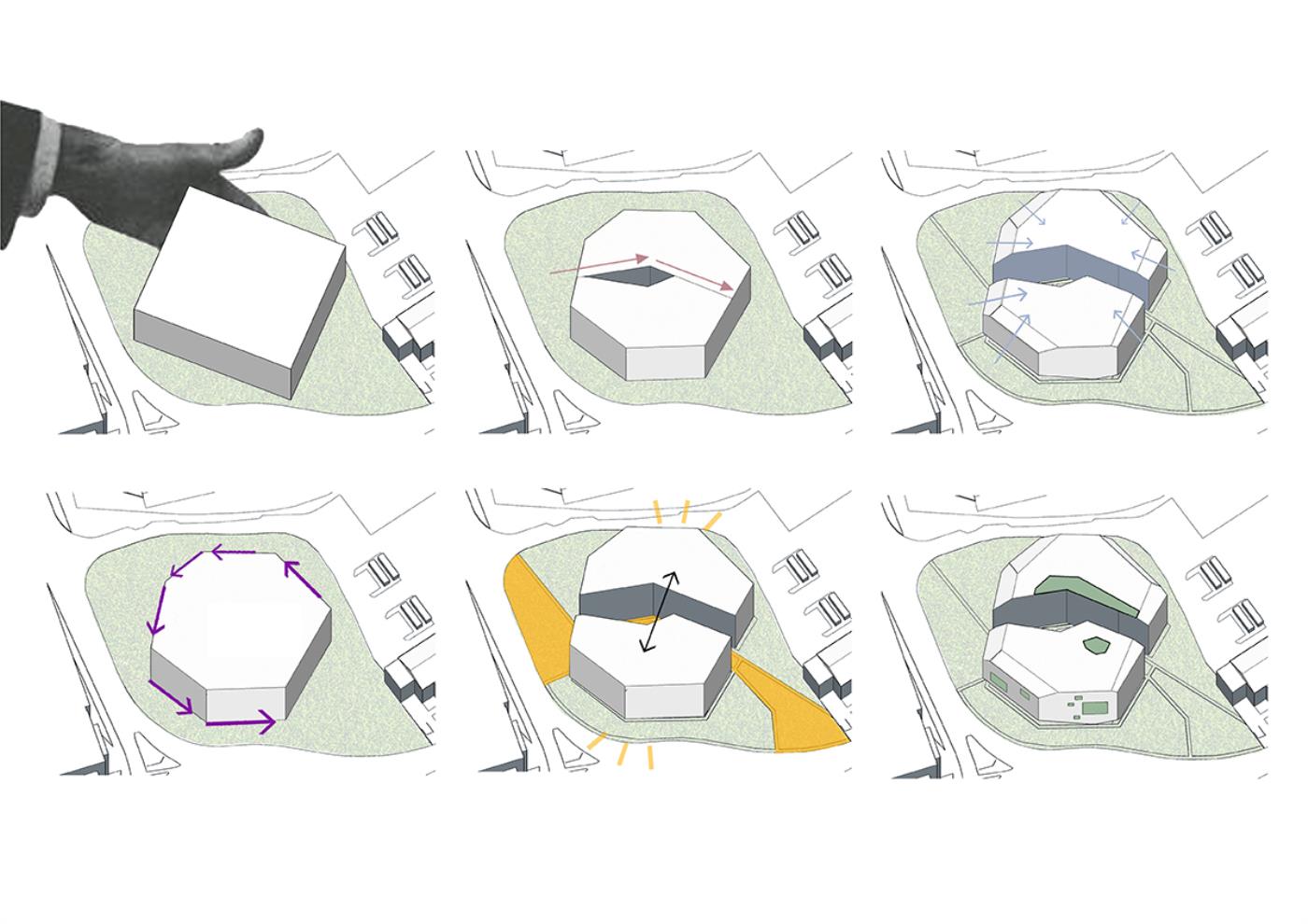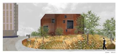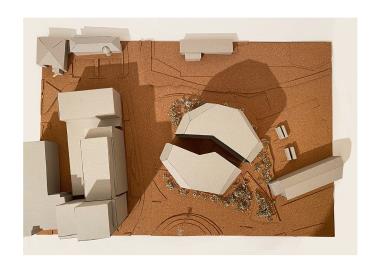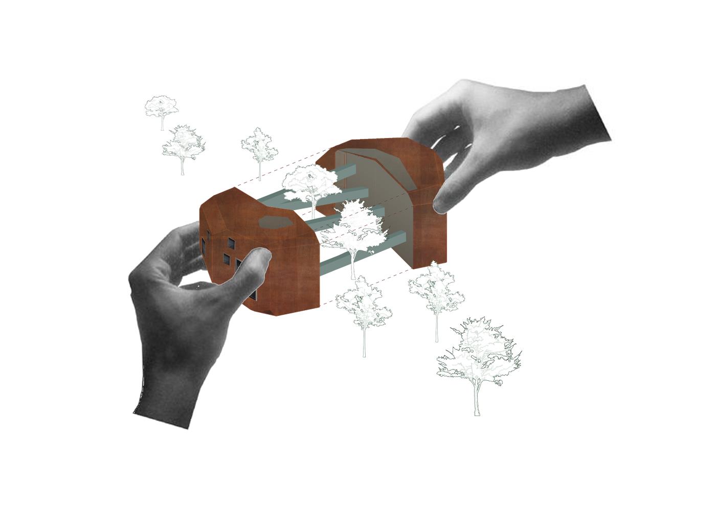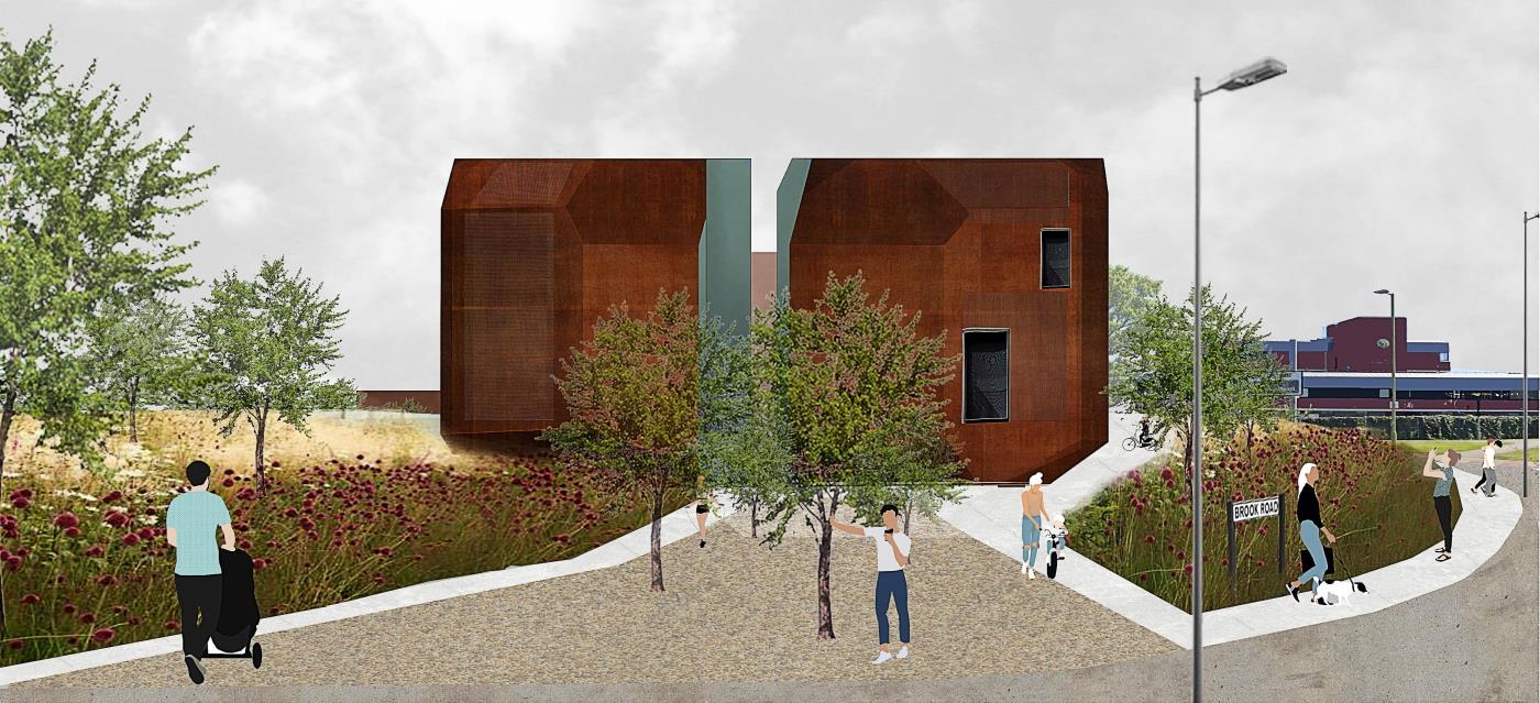Repository of Knowledge: Borehamwood Public Library Part 1 Project 2020 Laura Smith University of Hertfordshire | UK Demographic studies of Borehamwood show that the majority of the population are predominantly in the lower income group. This effects the area’s school funding and, in turn, educational opportunities. Studies show how the natural environment has an important impact on the uptake of information, especially in the children’s learning development. By designing a space surrounded by the natural environment and directing access to the building through a natural ‘portal’, there will be a positive impact on their learning experience. Furthermore, by splitting the building down the middle through planting a tree lined meadow, nature, along with all it’s positive benefits, can be brought back into the heart of the building. The bugs and wild animals which inhabit the plot can be another resource to help the town’s children learn about wildlife.The natural landscape flows through the two structures, bound together by walkways on each level. Organised into distinct areas, a quiet study space and a community-based area, designed for interaction and activity. I sought to break the mould of the conventional library designs. The earthy tones of the Corten façade ground the building in the heart of this highly industrialised metropolis. Tutor(s) Ian Owen