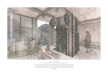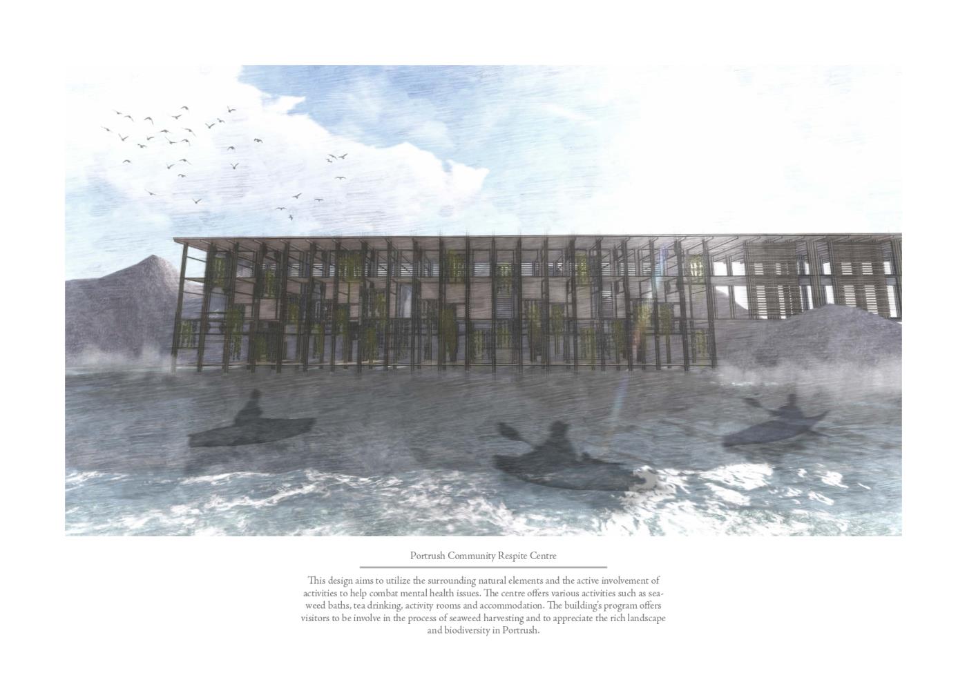 This project is situated in Portrush and aims to design spaces for stillness, recovery, and well-being, with the intention to take individuals away from the scene of their trauma to a place which provides a healing experience.