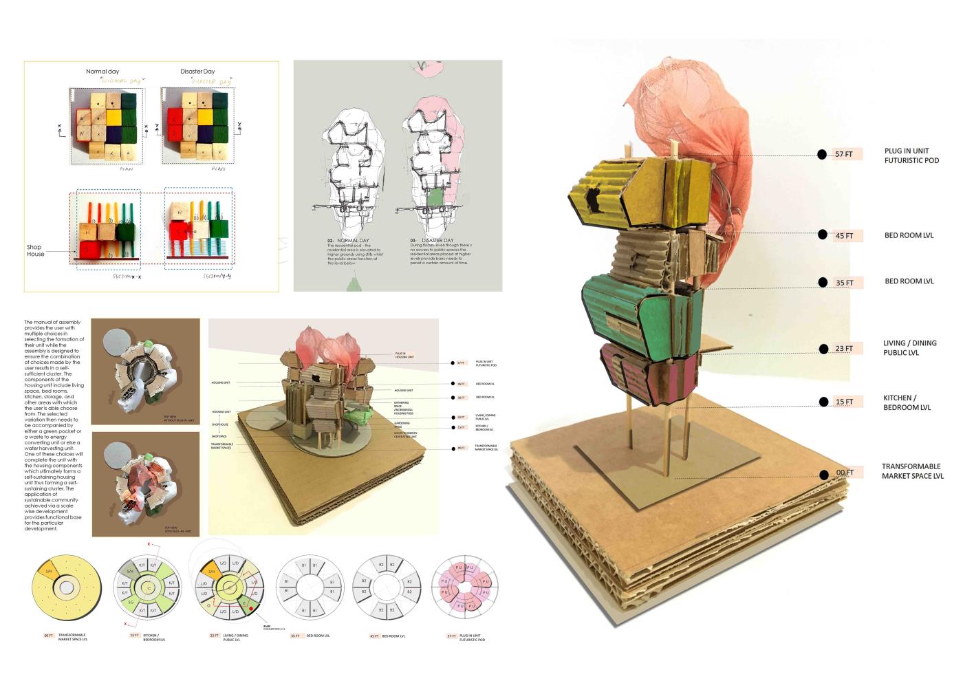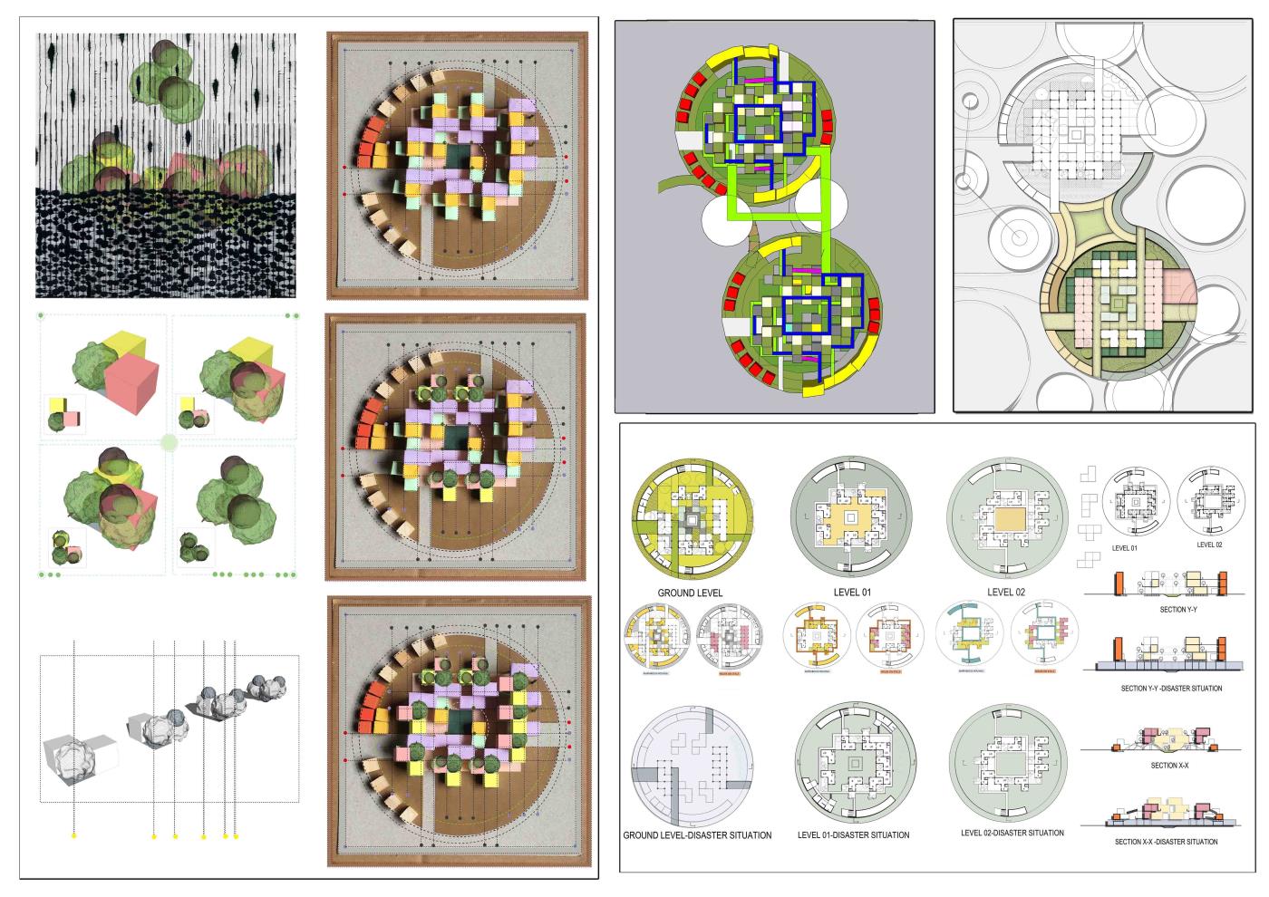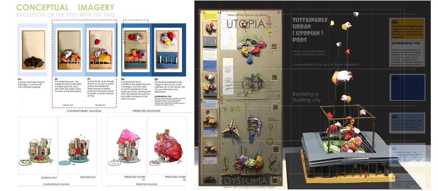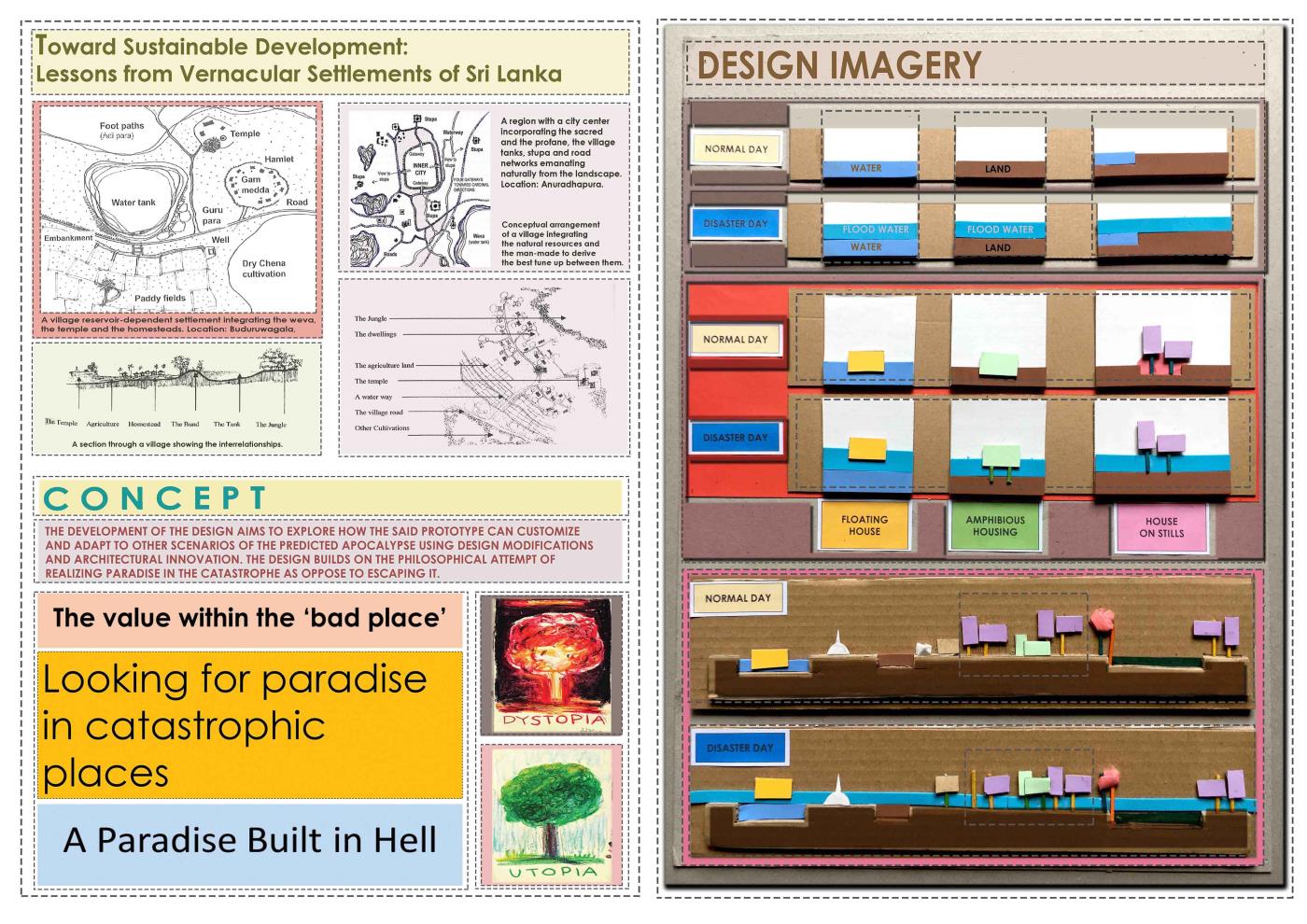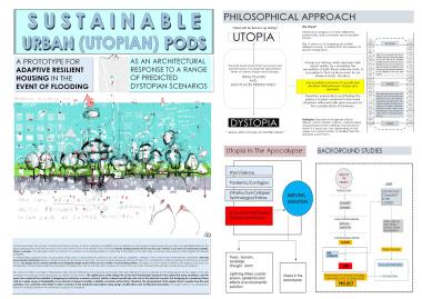 Sustainable Urban (Utopian) Pods Part 2 Project 2020 Sandeepa Vithanage City School of Architecture | Sri Lanka Until the recent past, the concept of dystopia remained a fantasy, a fuel for imaginative visualization and an inspiration for technological advancement. But today, the current events of the world indicate that the dystopian future is now a presumed possibility. This observation drives the architect to a position of crucial responsibility in contributing to the health of the earth while consciously advocating by action against the adverse possibilities. This design solution is an attempt particularly to propose an utopian future solution for the dystopia created by rising water level, a major form of ultimate apocalypse; an environmental catastrophe. The low income community housing at lower riverbanks of “Kelany River”, Sri Lanka which undergoes annual scenario of flooding has been the focus to propose adaptive residential pods that would sustain the basic way of life in the event of flood. The design explores how the way of life in the particular community could be made sustainable via architectural solutions proposed towards the neighborhood which would not compromise the quality of life during the dystopia created by floods. Further an attempt is made to propose an architectural prototype solution that could be later developed towards specific solutions to overcome the dystopia during floods. Tutor(s) Ranjith Alahakoon