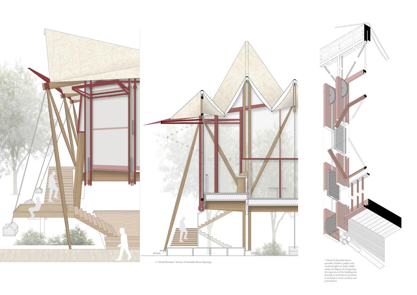 Formal aesthetic and compositional concerns are avoided in order to resist withdrawal into abstract, exclusive architectural imagery, so detrimental the life of our cities. Through an iterative process of drawing and modelling I ask: How can the architecture of this new institution borrow from the language of these archetypal places of gathering, while expressing itself as something new? How does this approach reflect on our values as architects, and the inclusive capacity of our profession within wider society?