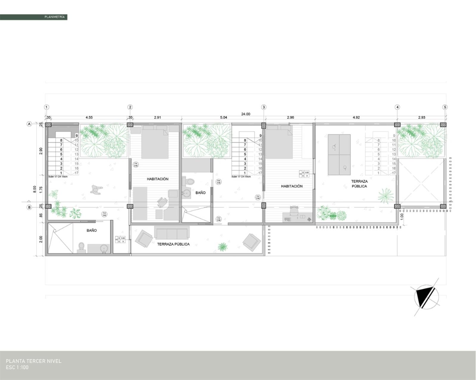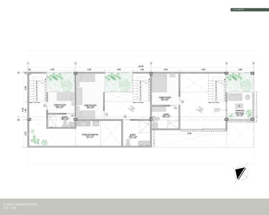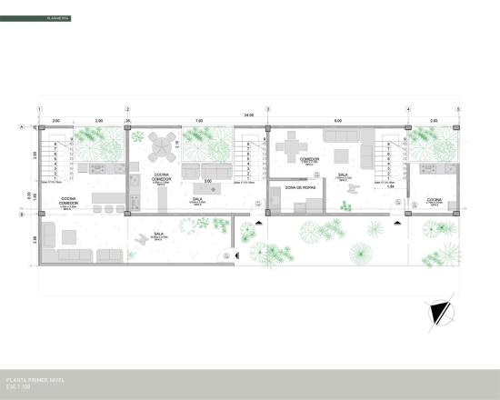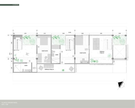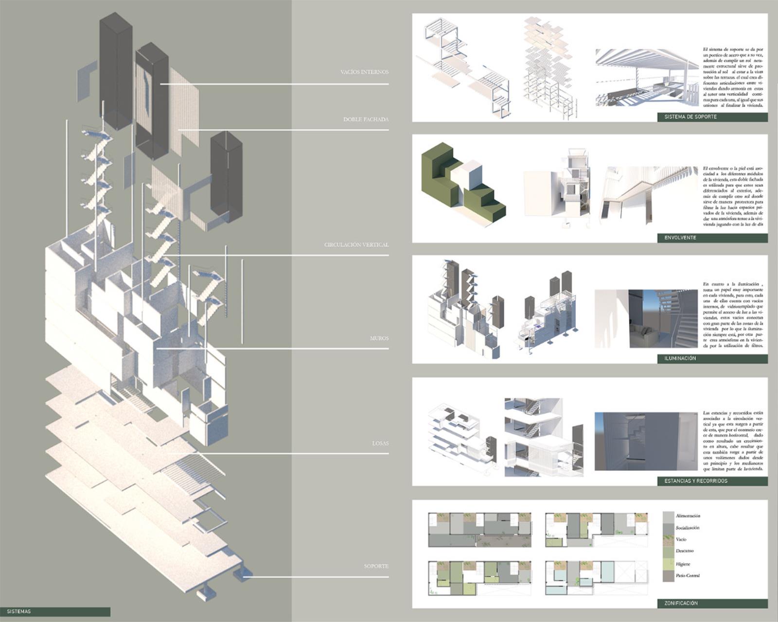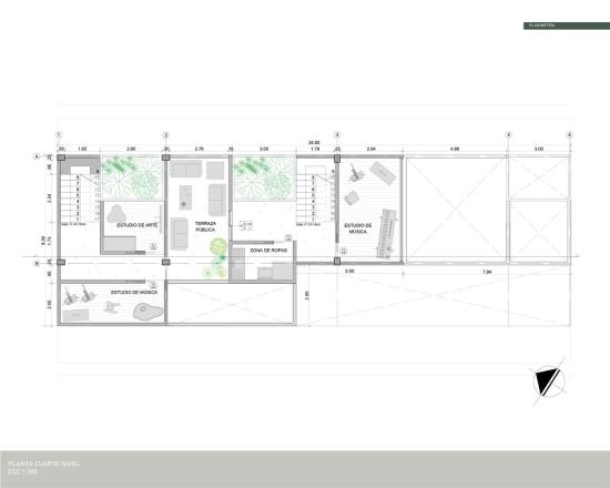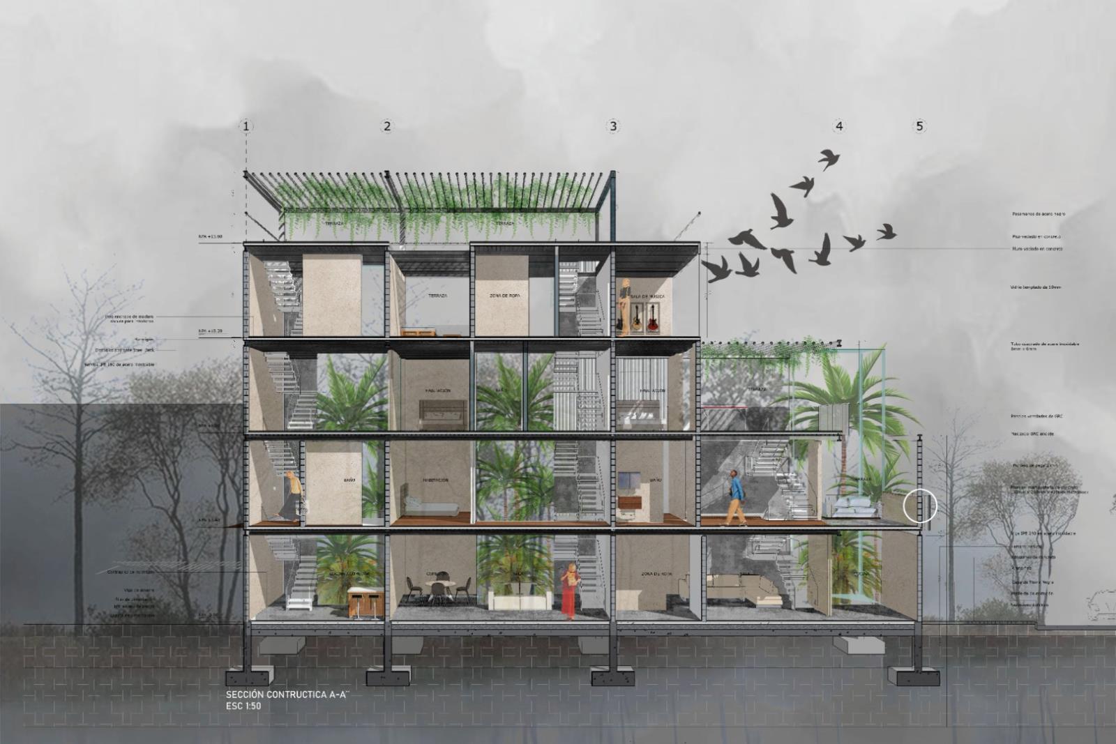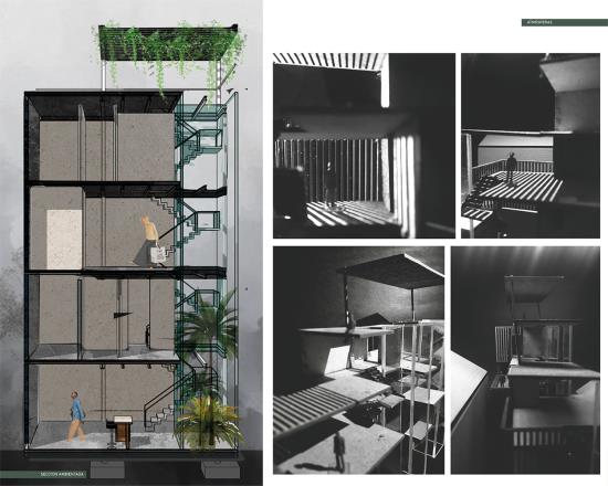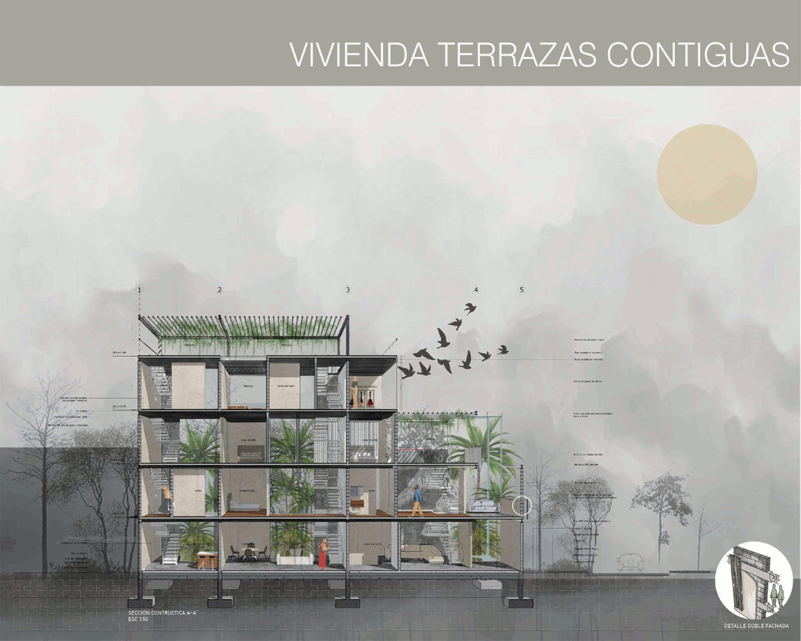 Terrazas Contiguas Part 1 Project 2021 Isabel Restrepo Pontifical Bolivarian University | Colombia "Terrazas contiguas" is a three-family housing project, specifically related with the environment, and giving answers to users. This project takes as its main reference different types of plants in Manila neighborhood. The project welcomes vegetation for joy, with internal voids that in addition to giving shape to gardens, provides lighting and sort out othertechnical components of the house.Different types of plants are in different type of terraces, and these are the more enjoyable places where the user can do many activities. The garden diversity comes from the environment, and so this directly reflects on the house. Tutor(s) Victoria Eugenia Sanchez Holguin