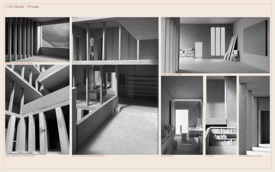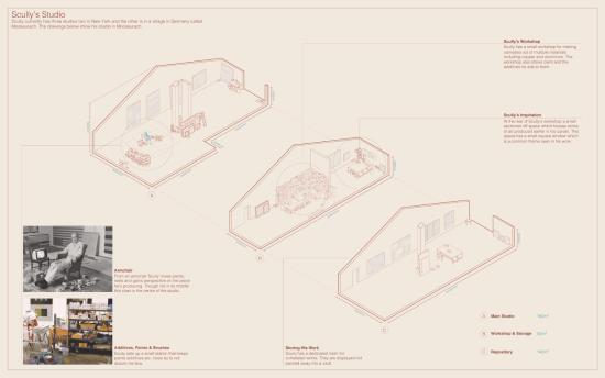 The project creates a typology cultivated from the art and mind of Scully where the “lines in-between animate the spaces”. An encapsulation of the soul of the client translated into architecture, it assists the aspirations of the Scully in both life and death by being a place to work, live and a means of connecting him to the community. It takes back contaminated privatized land and hands it to the people strengthening current social practices and uncovering practices lost to time.