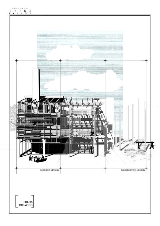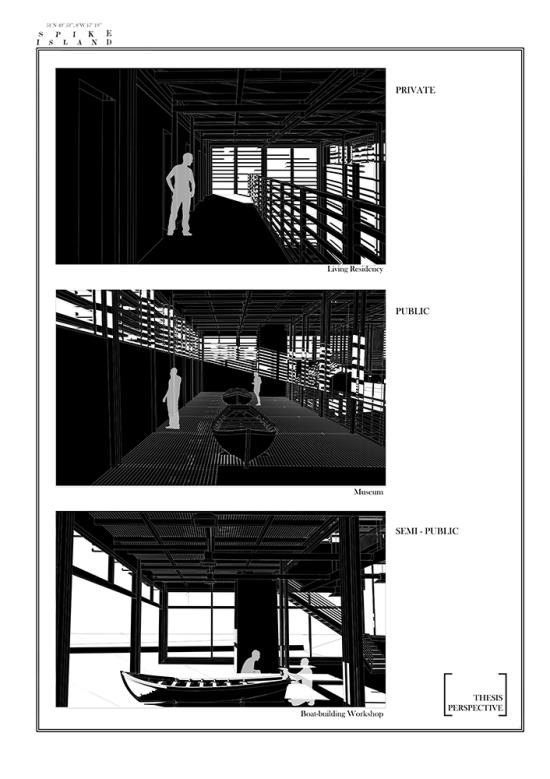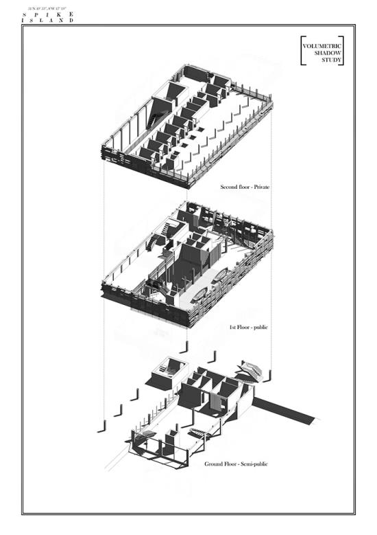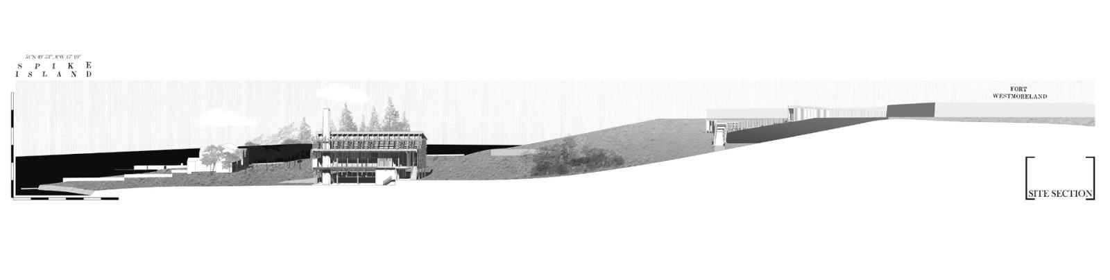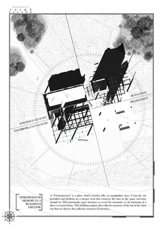Pilgrimage Part 1 Project 2021 James Pearce University College Cork | Ireland The heart of the project is a boat building workshop with accommodation where people can escape the modern world. It situated on spike Island, a previous military fort and prison. Spike Islands history has always had a transformative effect on the people who have been there.This scheme wants to build on that memory. Materials and visitors are transported to the island and undergo a transformation, be it physical or mental, similar to the prisoners that came to the island albeit a more positive transformation. There is also this romantic notion that the building would be built over time by people visiting the island as way of pilgrimage. Built with the same materials and connections one would construct a boat. A building that the visitors themselves have control over its future. This pilgrimage creates an incorporated memory in its construction. The façade holds drying timbers used in the building of the boats creating a dynamic shell which changes over the season.This building is temporary, it will fall into ruin like the rest of the buildings on the island and inscribe a memory on the land. Tutor(s) Joseph Mackey John McLaughlin
