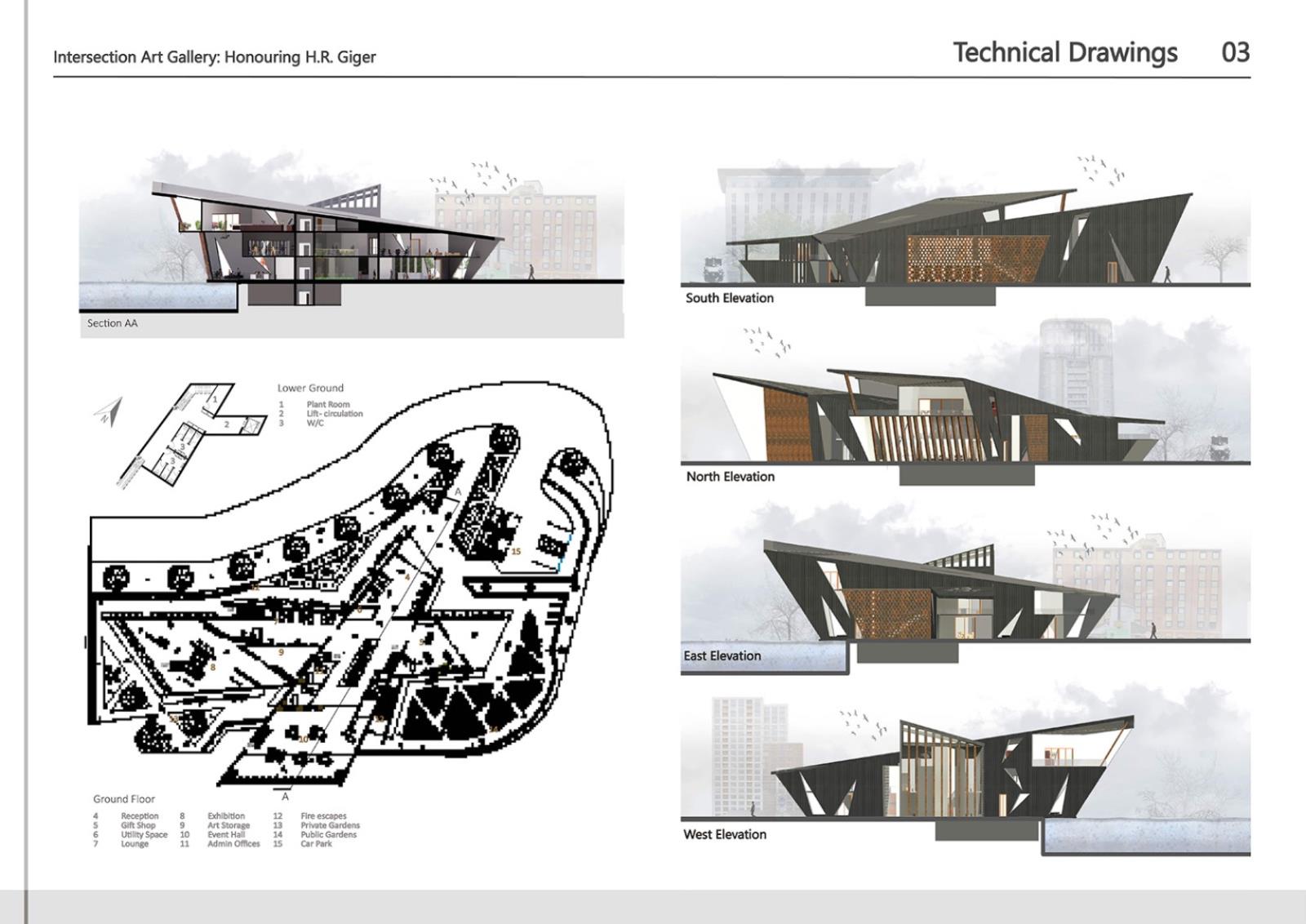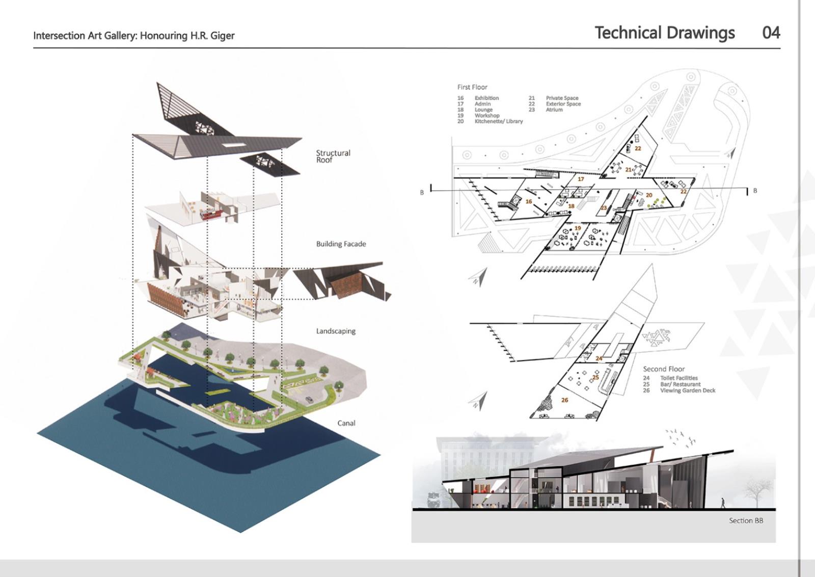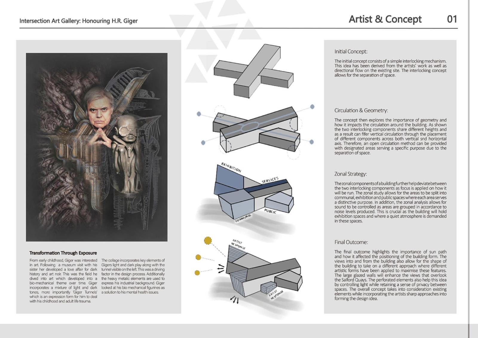 The design accompanies and supports the full project proposal for the re-development of the Vancouver Quay, Salford, Manchester (M50 3TT) in line with the functionality of the brief commands in designing an International 20th Century Art Centre honouring H.R Giger. The following Design has been conducted with reference to significant documents; 2012 (Founded): National Planning Policy Framework, and 2019 (Founded): Salford City Council: ‘A Fairer City’. The Design will aim to explicitly explain how the proposed development is a suitable response to the site context, public realm, user-requirements and client vision.