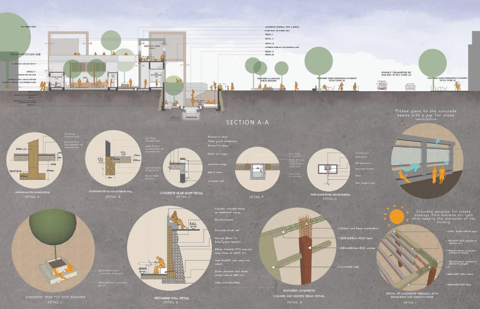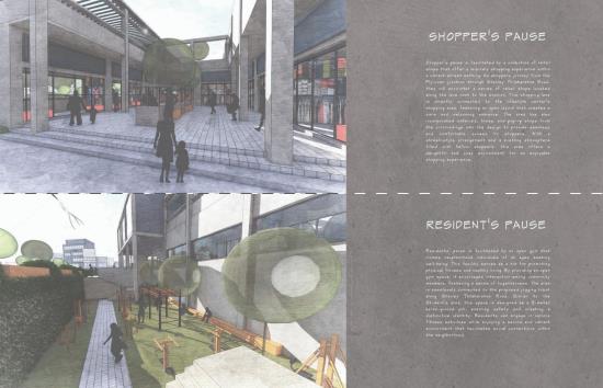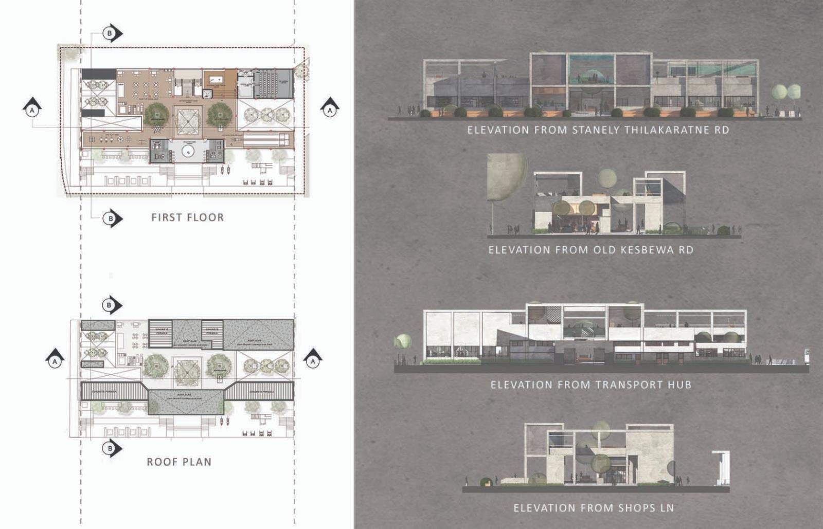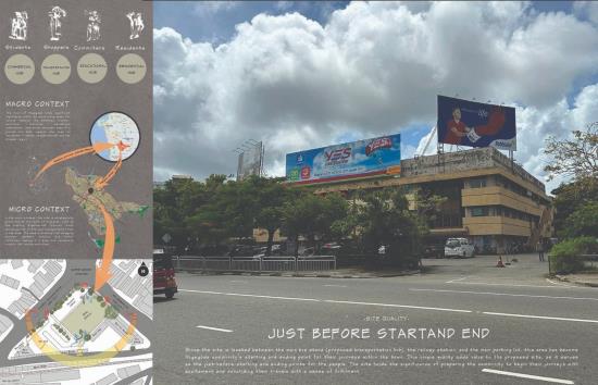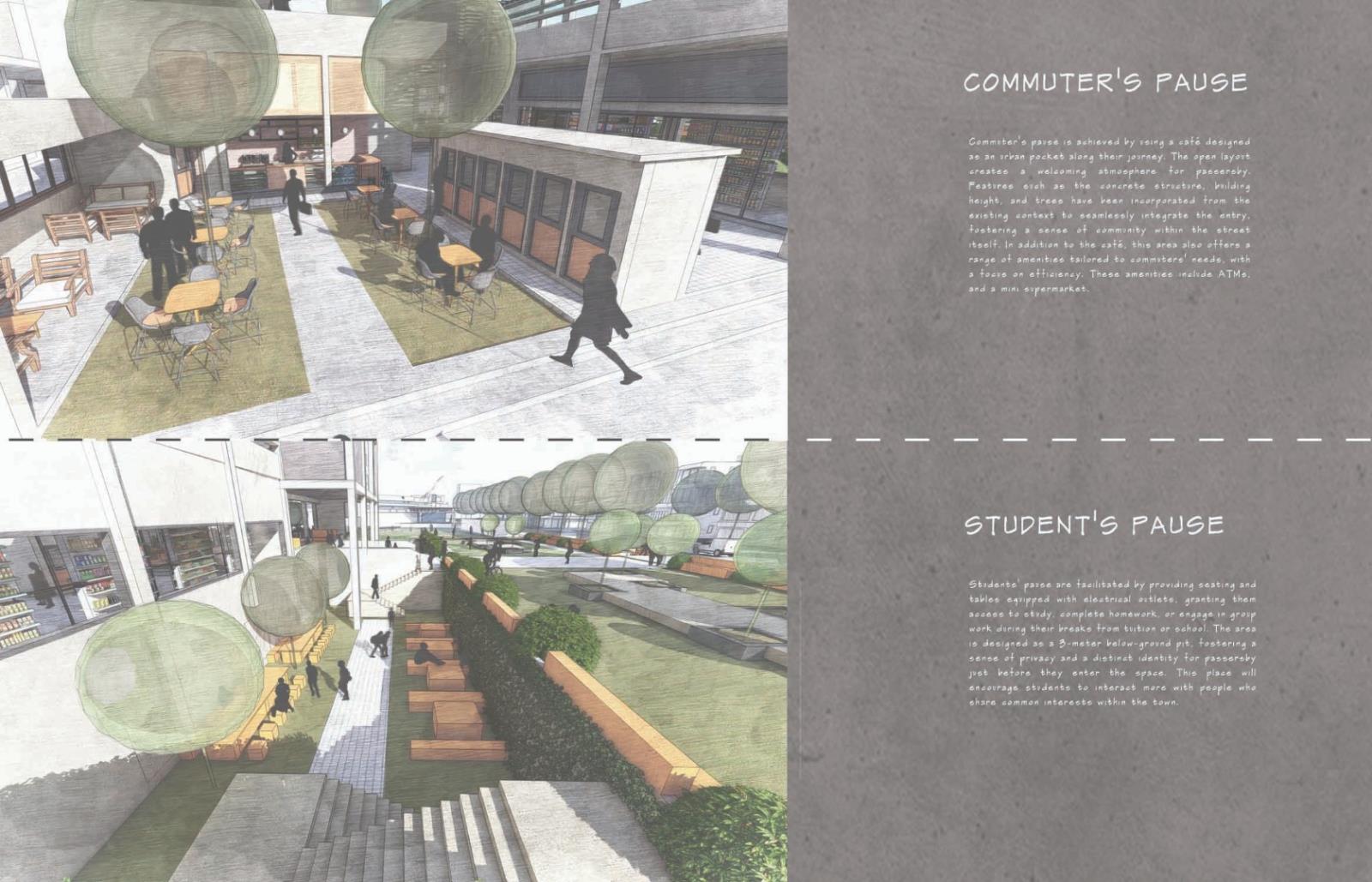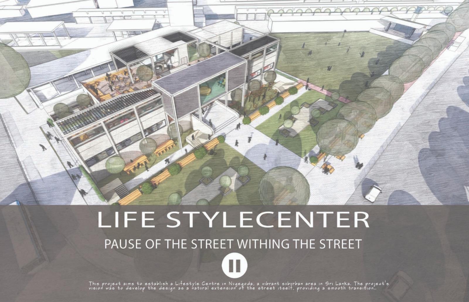 Lifestyle Center: Pause of the Street within the Street Part 1 Project 2023 Mawathage Anjalee Gayashi Medonza Sri Lanka Institute of Information Technology (SLIIT) | Sri Lanka A lifestyle center in an urban context significantly enhances residents' quality of life by providing convenient amenities and promoting social interactions through retail, entertainment, and dining options.The following Lifestyle Center is located in Nugegoda, Sri Lanka, serving as a Transportation Hub, Educational Hub, Commercial Hub, and Residential Hub. This allows four types of users to partake in the town area, each with distinctly different needs: commuters seeking efficiency, students seeking knowledge, shoppers seeking consumer experiences, and residents seeking wellbeing.The design originated by considering the users' perspectives, addressing the identified issue of a lack of a strong sense of community among its inhabitants, due to the transient nature of the town and the built environment itself. This highlighted the importance of providing a pause for individual user groups and responding to their specific needs by creating separate zones fostering a sense of community within the lifestyle center. The design was developed by analyzing the behavioral patterns of individual user groups with the idea of providing a smooth transition to their respective zones.In this manner, the design was developed under the concept of 'Pause, Unify, and Unite,' which was followed by the idea of 'building with the street.' Tutor(s) Minushi Polhena