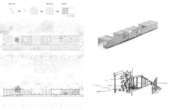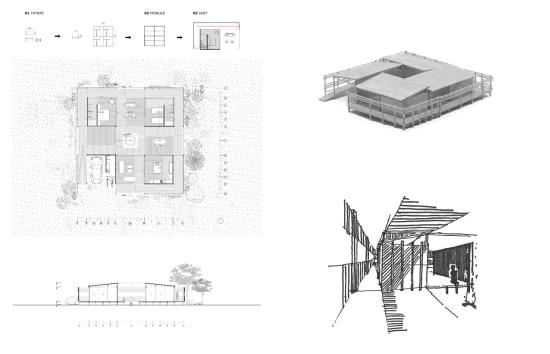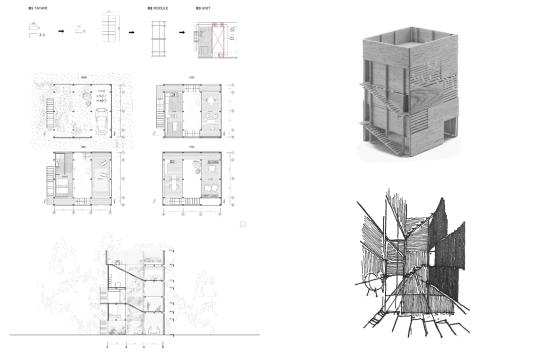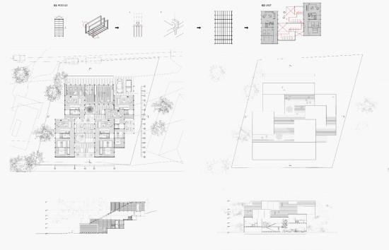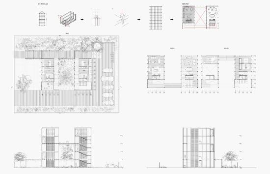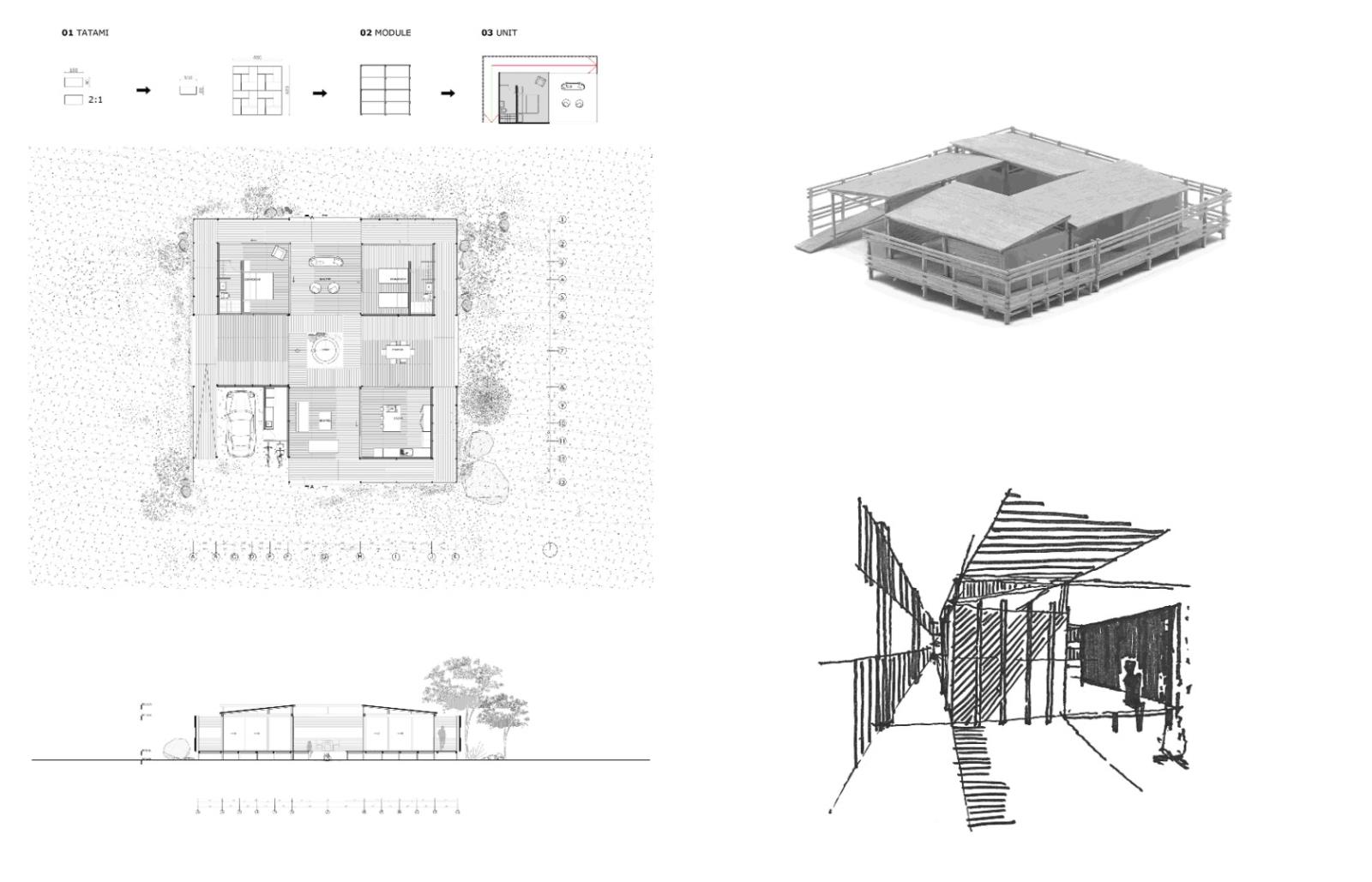 With this foundation, the first three exercises for houses test different module dimensions in response to typologies of Yard, Tower, and Gallery Houses. Creating modules of 480x480cm, 320x640cm, and 480x480cm, respectively, which through various operations, fulfil the typological idea of each house.