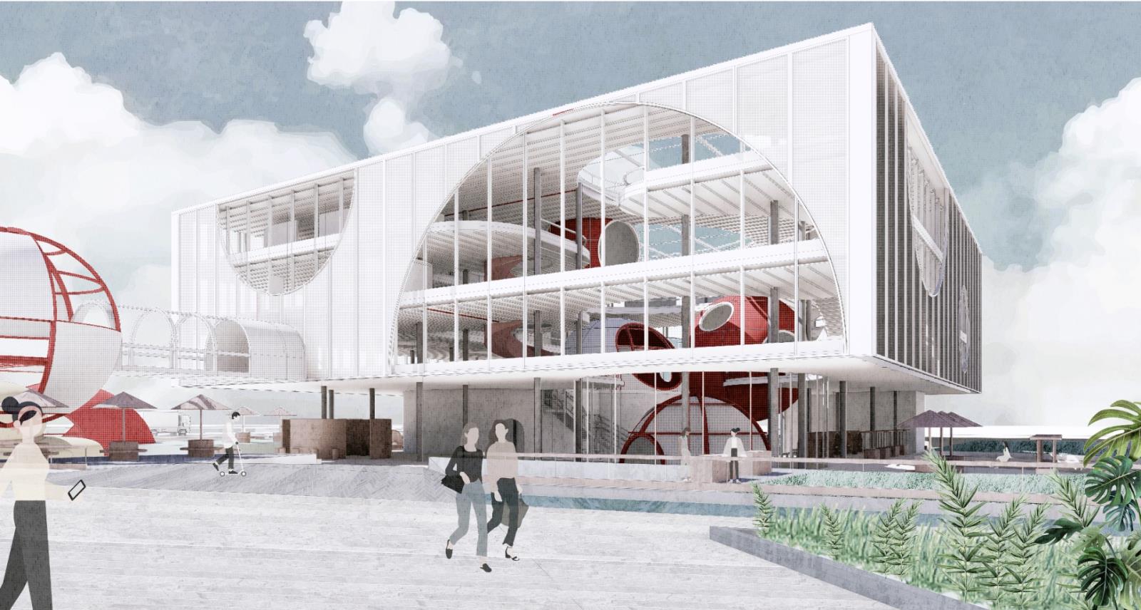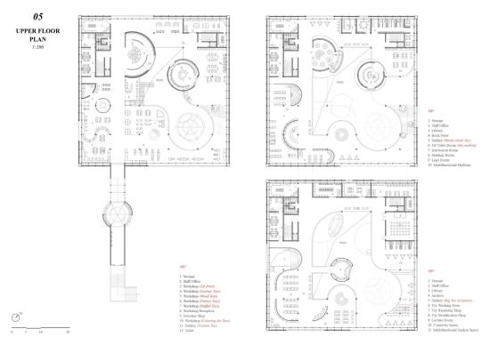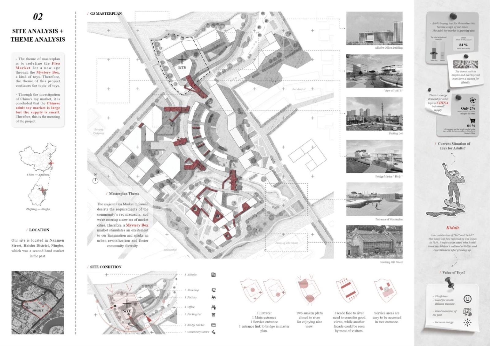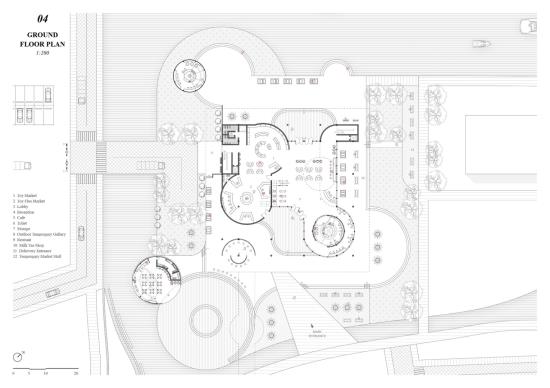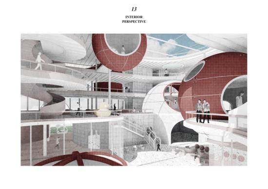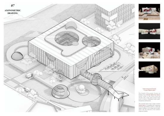 Therefore, I designed a center that provides an experience to customize toys for adults, which is well suited to the needs of adults in the new age and is of great importance to the mental health of clients. Through the theme of "toys", I established elements with a sense of childlike interest, flow and floating: spheres, as the main element of the design, are endowed with the function of immersive experience space, such as 3D video room and gallery, which run through the whole building and connect the whole narrative. In addition to the custom toy workshop, the lab also includes a toy playing space, an educational space and a first-sale toy market.