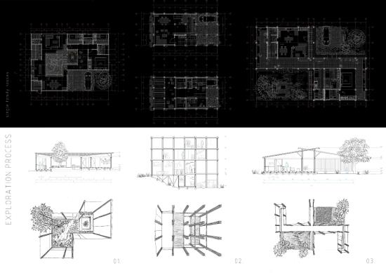 Living Through Layers: In/On/Under Part 1 Project 2023 Emilia García Lozano Pontifical Catholic University of Chile Santiago | Chile Through initial experimentations in different housing typologies, internal green void helped organize space, visuals and movements in designs. The whole process was deeply characterized with a landscape component, modifying and affecting different ways of living. The final proposal consists of a collective residential space, with an initial operation of extending a virtual horizontal applying an acupuncture strategy regarding supports, with a strong belief respecting the site. Throughout this horizontal construction, in order to ingeniously blend with its surroundings, the architecture is pierced and enables the terrain to elevate its value and serve as delimited exterior for the recreation of the community holding multiple programs. Therefore, within the proposal, a sequence of houses bounded by a series of varying contained natural areas, mimics the pattern of its surroundings; the sequence of cliffs, always making a connection to the landscape and the natural reserve it sits on by the sea. Furthermore, these moments in which the constructed is punctured, becomes the most crucial and significant part of the motion. Meaning the conquer of a moment, which besides reconnecting with nature, it injects life to a community lifestyle intended in the residential ensemble. Living in the nature, on a home, under a community. Tutor(s) Philippe Blanc
