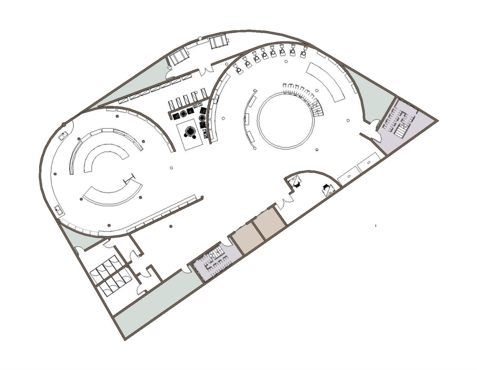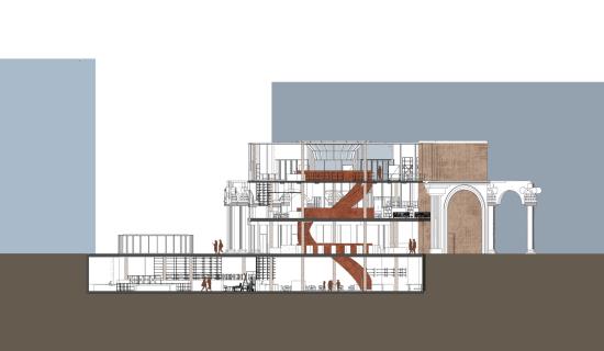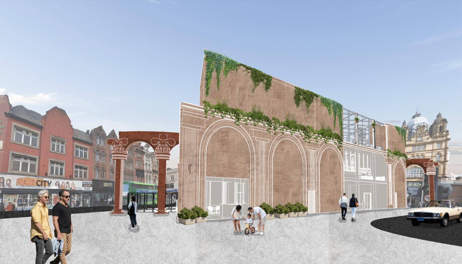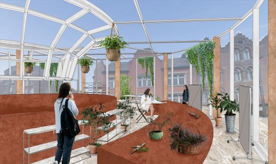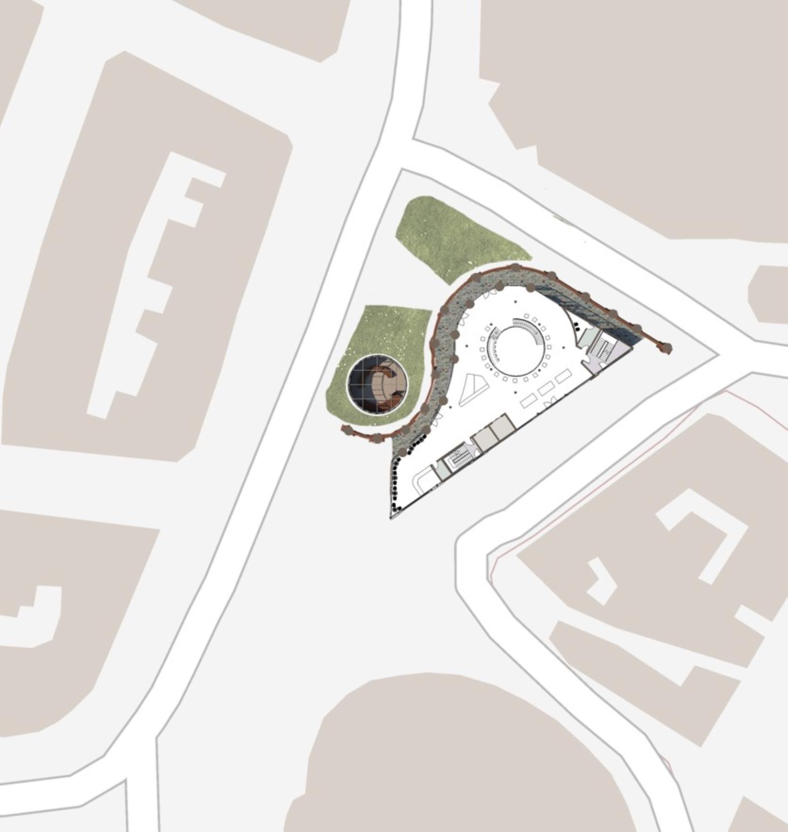 Kirkgate Craft Centre Part 1 Project 2024 Pattanan Tuangsitthombat University of Leeds Leeds | UK The first impression of the building was designed to be the arches wall that developed from the flow line that connects both circles together. As I would like the building to blend in with the surroundings, I designed the column as a sculpted pillar with Victorian architecture as same as the surroundings. Also because of the activity in the building is clay art, I used red terracotta cladding as a facade material to make the design stand out. However, on the inner layer of the arches, I reduced the details of the column and applied fewer details on the column to balance out the whole building, adding on with light-tone sandstone cladding. The Arches wall not only covers one side of the building but also extends out to curve with the below circle, creating a continuation of the design to the landscape. The building's design mimics the first two stories in a traditional style and has a glass house on top to add more greenery to the space, while still not going over the average height of surrounding buildings. Another highlight feature is the curved cylinder roof which is designed to be seen from the ground floor and across the street, as well as the circle on the ground that reveals the activities in the basement level. The building is designed to be four stories, one as a basement to extend the usage area and three above the ground. Tutor(s) Justin Lunn