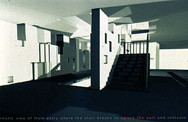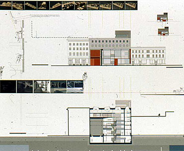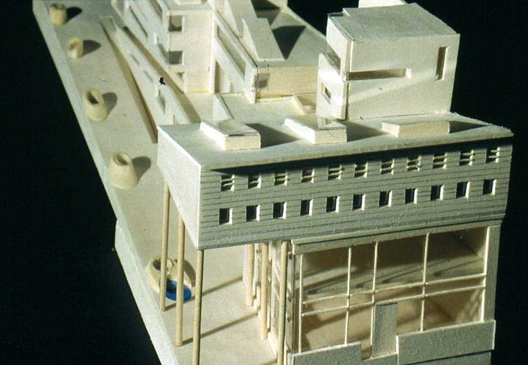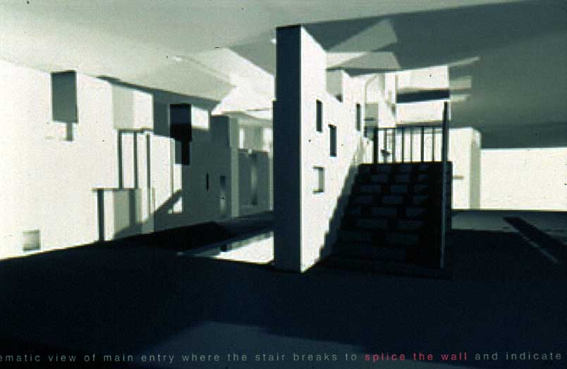 Urban Shadow: Institute Of Art And Design Part 2 Project 2001 Nadia Meratla McGill University, Montreal | Canada The premise of “Urban Shadow” relies upon a concrete faith in urbanism as the basis for this religion of Architecture. In designing an Institute of Art and Design, the evolution of applying this program to this premise became a rigid doctrine that served to nourish the exploration of urbanistic principles in an attempt to redefine the nature of institution. As a direct statement against the synthetic bohemia that has polluted the Old Port of Montreal (Canada), the site selected spans one block between two principal streets in this area and faces the majestic historical monument Marché Bonsecours. The insertion of an institution acknowledges that it is indeed due time that architecture rise to embrace the challenge of complementing this urban domain on a less seasonal basis.As a site in the shadows of the urban fabric, it offers an interesting dynamic to the concept of an Art School that is reclusive yet engaged, somewhat visible yet with an element of discovery. Stricken with a peculiar irregular geometry that is the envy of its orthogonal neighbours, a residual garden that flanks the entire block creates an interior elevation and orientation to the siting of this project. This longitudinal garden defines a particular response to the broader urban domain and is designed as an overflow of the artists’ interior workspaces. Similar to that of the lane behind a blacksmith’s shop, the “alley” is loosely structured to engage the potential of a sculpture garden and junkyard. Architecturally, the premise of this thesis was an investigation of exploiting the very Montréalais “Mitoyen” skeleton into the program in order to articulate the regular rhythm of studios laterally and create the mystical “wall-with-depth” on the longitudinal circulation spine. The depth presented an opportunity to extend the public gallery on the street throughout the building as a “cadaver chamber” with recesses in the wall for the work that is generated by the students. In certain considered areas, these recesses expand to become benched niches for conversation, in others to store the products of artistic endeavours. With a more neutral treatment of studios, the intention was to articulate the public communal areas of the building and sober the working domains of the artists in order to foster creativity. Throughout the development of Urban Shadow, the basis of designing with the larger urban fabric in the spirit of the project became the premise of redefining “institution” and the obligation of architecture to complement an urban fabric. Nadia is an exceptionally intelligent and sensitive person who is continuously trying to improve herself, to learn about her craft and about architectural theory. She makes every effort to sensitize herself to the numerous movements and ideas that have shaped contemporary architecture. She is self-motivated, methodical in her approach to design and to problem solving. She is also an exacting craftsperson. First and foremost, Nadia is a true student of architecture: someone interested in reaching beyond usual professional problem solving issues. She is concerned with the meaning and the purpose of buildings, with their contextual relationships and their social implications. She also possesses amazingly strong computer and computer graphics skills.Finally, Nadia is a kind person, always willing to help others, to participate in class discussions or collective tasks and to assume responsibilities. Her leadership qualities come from a visible commitment, consideration for others, a sense of ethics and a reasoned approach to her metier.Nadia's design for the INSTITUTE OF ART AND DESIGN is the synthesis of three clearly articulated concerns: for the definition of the urban form, for the resolution of a complex programmatic brief, and for tectonic investigation. Urbanistically, the design of the Institute becomes an exploration into contextualism as an ideology of significant linkages and relationships with a fragment of a very complex and urban fabric. Programmatically, the project is an essay on the definition and the nature of the modern educational institution. Tectonically, the design addresses issues of structure and construction, of complementarity, and of a means to enunciate formal compositional ideas. Although the projects deal with all these concerns most successfully, it goes well beyond the resolution of a well-stated problem. It suggests a modern way of looking at the traditional city in terms of its movement, morphology, public and semi-public realms, and spatial organization. The project is dealt with as a relevant counterpoint to an historic precinct that has, over the years, been gentrified in a most conservative manner. In other words, the project speaks of the city of yesterday using a language of today. It adds a new layer on the already the rich urban texture of Old Montreal.