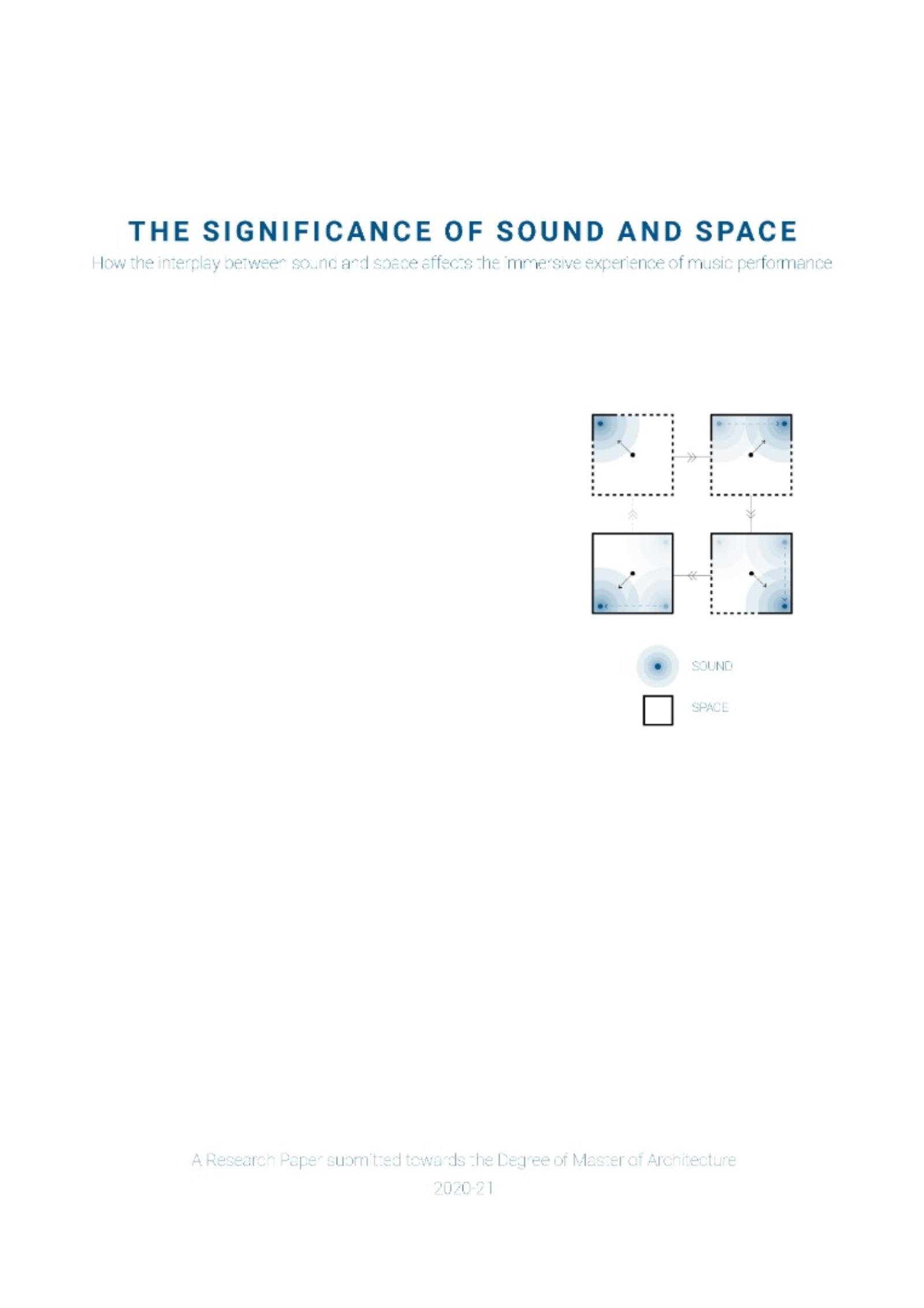 The Significance of Sound and Space Part 2 Dissertation 2021 Lawrence Tang University of Bath | UK The cross-disciplinary approach to architecture and music has been a constant throughout the history of architectural discourse. Many different analogies and explorations between the two disciplines have been made in the past, both intellectual and phenomenological. This research paper investigates the significance of sound and space as architectural medium on impacting the nature of sound exposure on the listener during music performance. This line of enquiry is explored through analysis of multiple case studies of past innovative music venues which sought to enhance the immersive experience of spatial music by challenging the standards of conventional musical spaces. The use of software for acoustic modelling and simulations help to provide a better understanding of sound propagation in these spaces whilst visual and statistical information are used to understand whether the spaces performed in the way the designers’ intended. Ultimately, this paper aims to discover how innovation in the use of sonic and spatial principles in the design of musical spaces may lead to the unique nature of sound exposure intended for the general audience. Therefore, the findings may provide impetus for further exploration in sound and space for designing the musical spaces for the future. Tutor(s) Ricardo Codinhoto