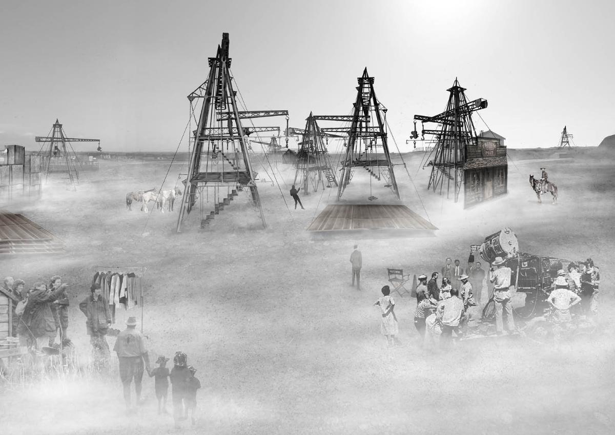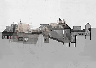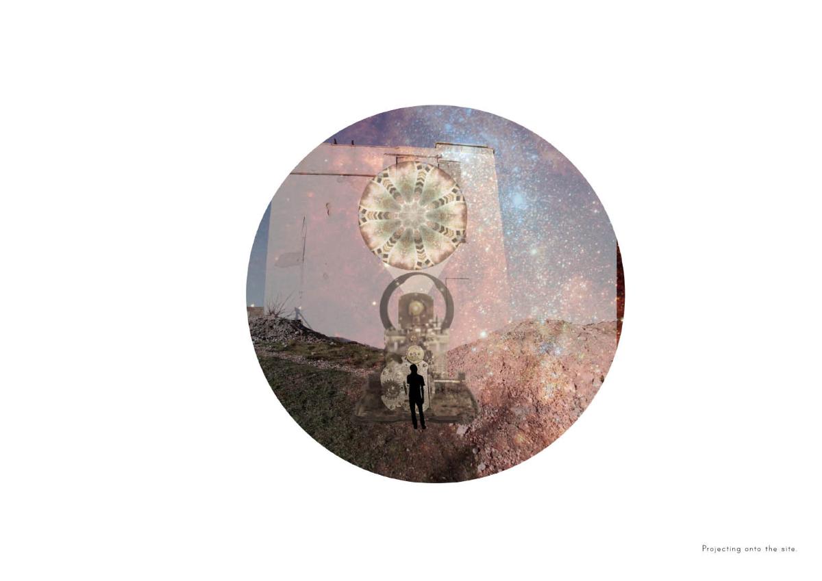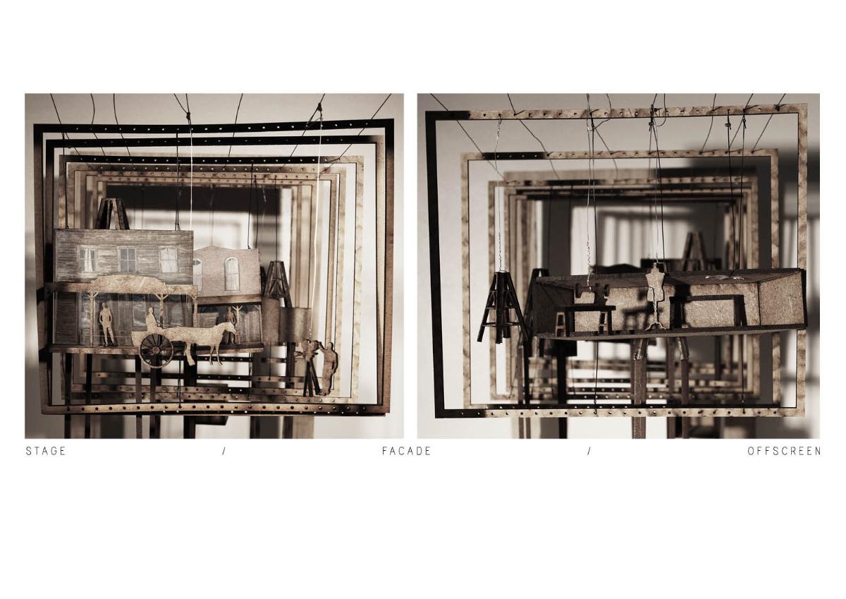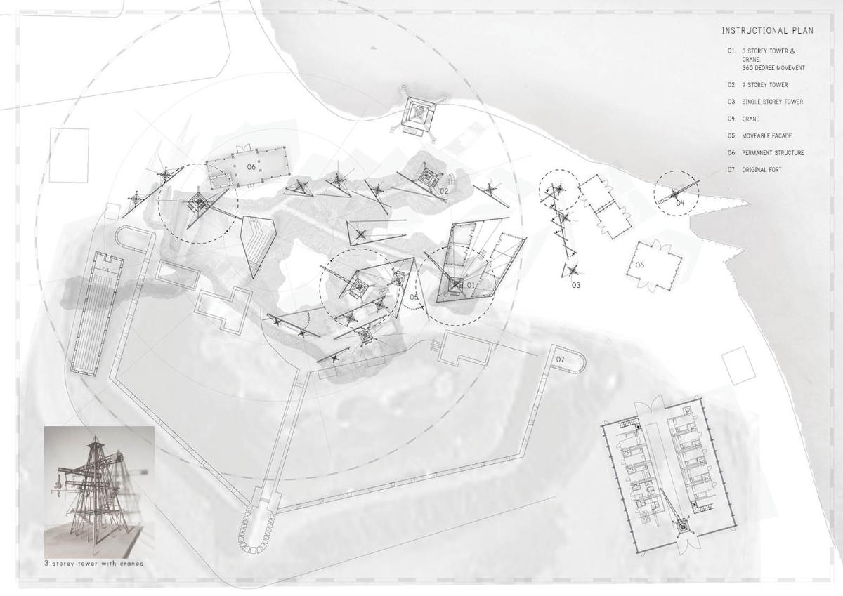 Shoreham Village of Moving Image Part 1 Project 2012 Holly Jean Crosbie University of Brighton | UK The film village, located on the site of Shoreham Fort, was once home to Sunny South Film Company in 1914. The village retains the nature of the fort with the main infrastructure hidden below the surface with only the tops of the towers visible from the sea.Modern storage of film archives involves copying films on to digital formats as film becomes brittle and decays over time, however it is also copied on to new cellulose film as digital mediums can be just as temperamental, proving the ongoing need for the original medium. The tangible nature of the cellulose film allows students to learn about the value of time; every second of film takes up a physical space, which is limited by the length of the film reel. Film becomes precious, and so a careful consideration of what is to be filmed is needed. Inspired by the edited reality of film sets and how they create the illusion of a complete world, the film school recreates the notion of a village. Surrounding a central square, (the theatre), the functional workings of the film school spider web out both above and below ground in a labyrinth of tunnels and cranes. Burrowing underground creates natural darkness for film processing and projection, at the same time aiding refrigeration for storage.The infrastructure of the site allows for the flexibility of different sets to be created for different films through the use of facades. These facades can be positioned around the central core creating the illusion of a complete world. The facades divide the on and off screen worlds. The front of the facade acts as the stage and behind is the functioning film school. Historically facades were used to suggest what might be on the other side; here it is used to disguise it.As the films are created on site and then screened in the subterranean theatre, the visiting audience is immersed in the film and become part of the surroundings creating a complete cinematic experience. Tutor(s) Kate Cheyne Carl Turner