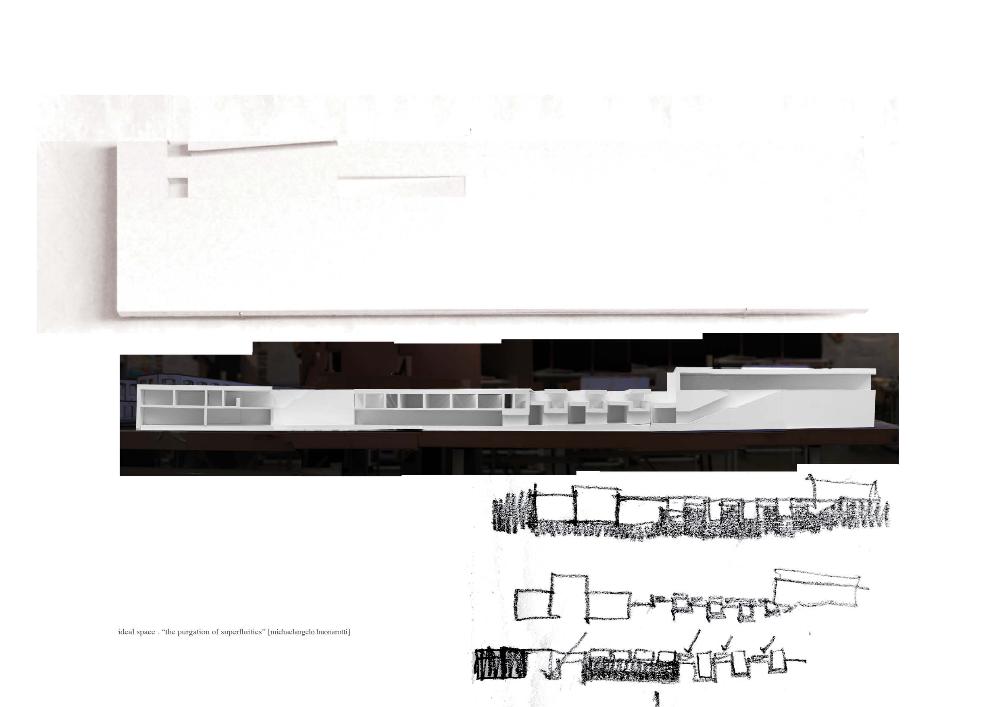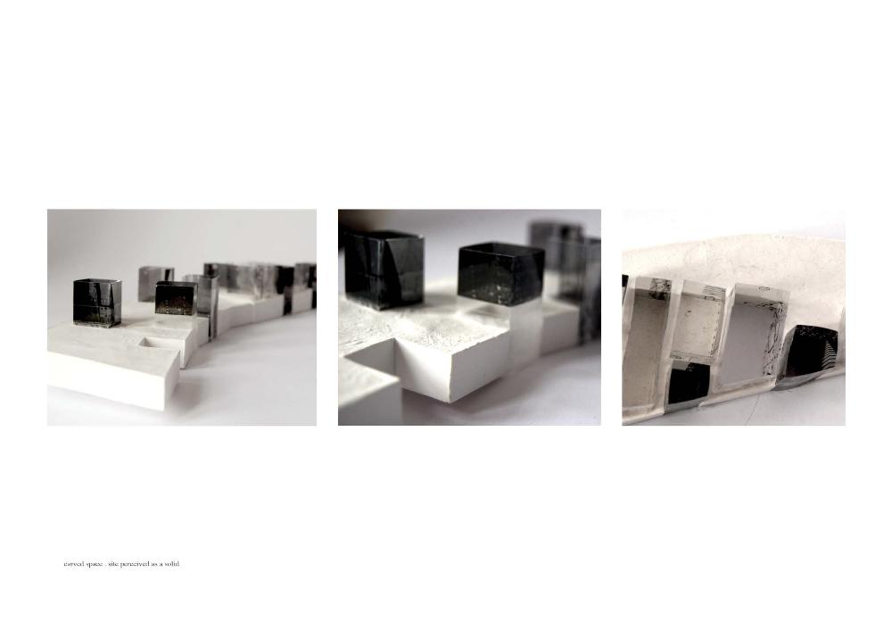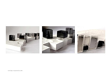 A Place for Books Part 2 Project 2010 Rowan Mackinnon-Pryde University of Dundee | UK The project investigates the balanced composition of an introverted, underground precious space, and the active street above, lined with new housing and local shops. The unique context of the Ouseburn valley is approached with sensitivity: from a city scale, considered as ‘urban acupuncture’, down to material detail. The primary building is a place for books: a gallery, archive and workshop for artsist’s books: precious space for precious objects. The introverted nature of the scheme requires a quiet architecture: an ‘anti-object’, set within a tapestry of industrial decay and regeneration:The valley section allows the gallery to be embedded into the site, stretching along side of a trickling burn. Internal space is perceived as carving space from a solid; an architecture of subtraction. The primary elevation is the horizontal roof surface which creates the context for the public realm. The book is a small confined concept, but the possibilities that can be contained within it are limitless; a “sequence of spaces + moments” , where one carves one’s own place amongst text + image. Taking the structure of the book beyond everyday expectations is often a goal of the artist’s book. These objects are often small and beautiful, and their viewing requires a certain care and concentration. The spaces allow for the concentrated study of these objects.Entrance to the gallery is through a small pavilion which quietly announces the existance of the subterranean space. A long staircase leads from the pavilion down into the galleries. The initial gallery spaces are intimate, dark, becomming progressively narrower and taller as the ground level falls away, carving down into the earth, and further into the book, slowing the viewer to a concentrated quiet state. The narrowness opens, into long gallery space extending towards an external courtyard, which makes a spatial connection between the upper and lower realms. A private realm exists on a secret level: work space slots into the roof space above, along a long circulation route which becomes the archive. Drawn from this work, ideas of reduction, the pursuit of beauty, and the dichotomy between ideal and real space, are explored in parallel studies. The place for books proposes a context for Small, beautiful, fragile things – artists books. Necessarily this became about an architecture make a space which “concentrates” or distils, a space which slows you down and which commands close attention. What kind of presence should this building have in the city? The proposal is almost an anti-object. It remains a “public” building but it’s also enigmatic, slightly removed; not deliberately hidden but quiet, revealing itself by layers. The overall proposal is composed of two balanced pieces, the shops and houses which repair the street and engage directly with the city, and the hidden gallery and archive spaces which form the surface of the street/square, two parallel worlds which don’t touch but exist in proximity.The coherence of the idea is carried through from the way the proposal relates to the city, down to the resolution of technical details which in the subterranean spaces are deliberately reduced to the calmest possible of expression in order to allow the housed artefacts precedence. The value of the project is perhaps in the subtlety of the proposal as a whole, almost denying its own presence as an object but making powerful spaces in the process; an approach which shows confidence, sophistication and uncommon maturity. Tutor(s) Helen O'Connor ralph tilston
