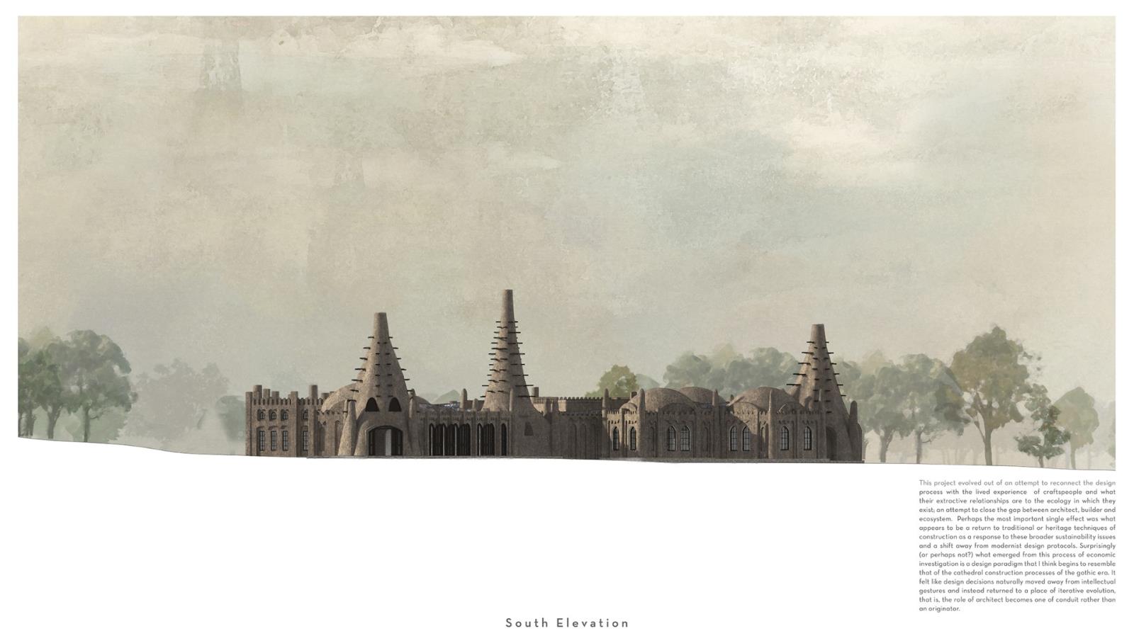 Through the design process of this project, this attempt to challenge the systems within which architecture currently operates morphs into a simpler question: What happens when you take expensive, unsustainable and carbon releasing materials out of an architectural tool kit and in return you give time back to the craftspeople, the builders?