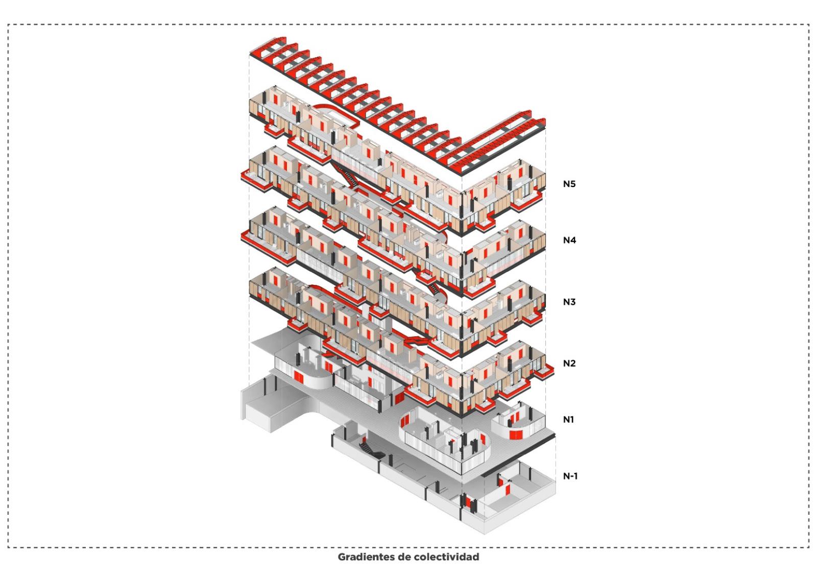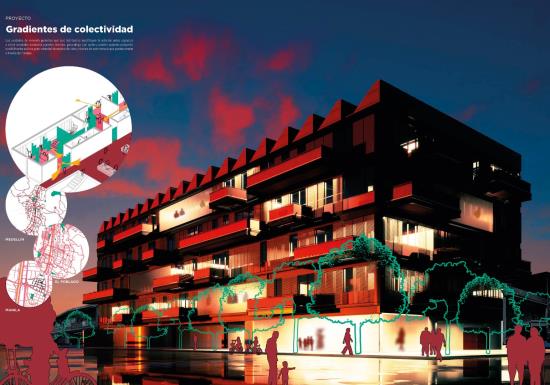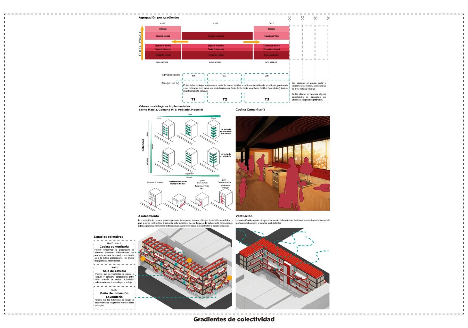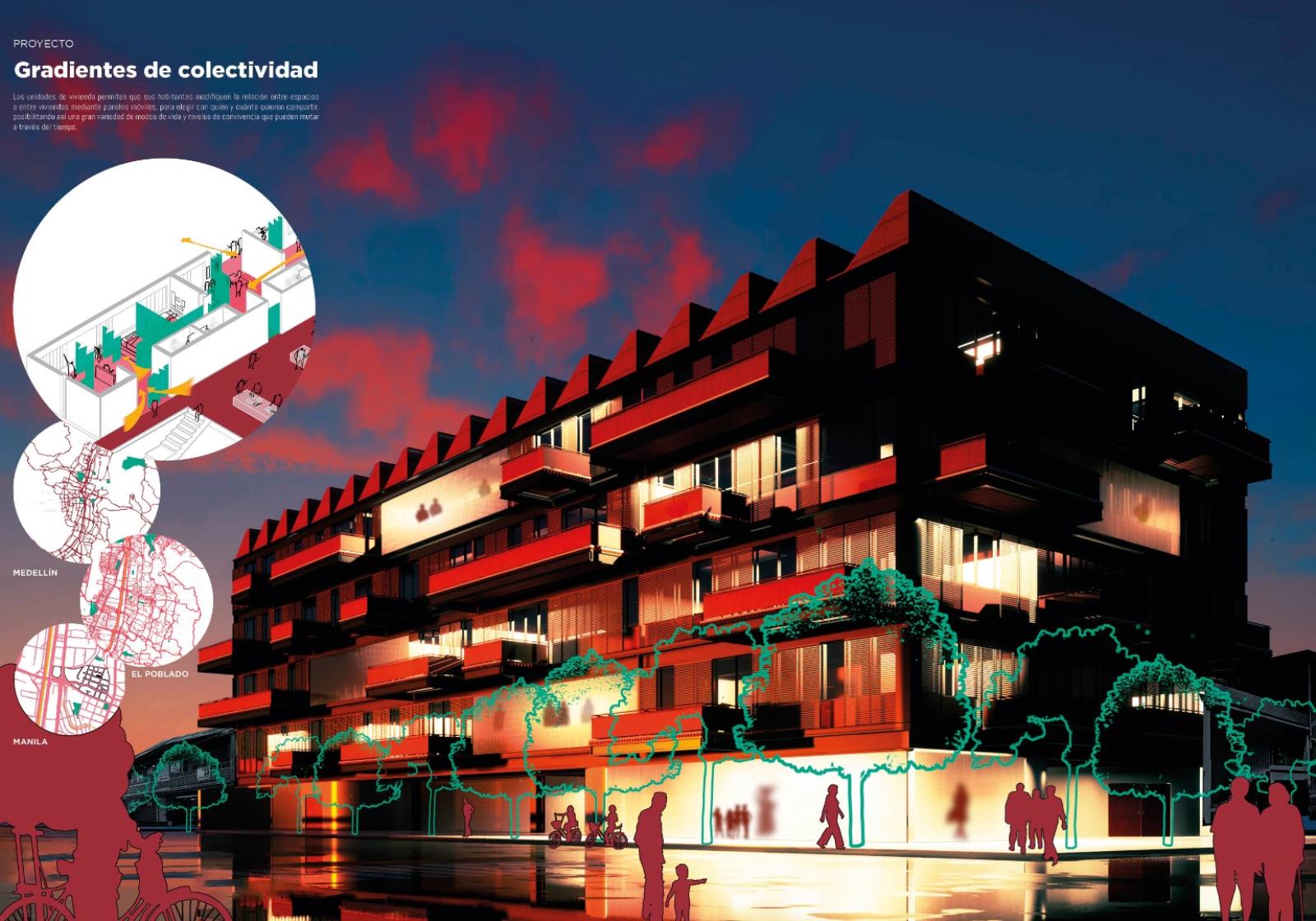 Vivienda Contemporánea Part 1 Project 2022 Esteban Herrera Pontifical Bolivarian University | Colombia Contemporary housing often sterilizes its inhabitants freedom: It prevents adapting the interior and restricting interactions with the exterior.Located in the Manila neighborhood of the city of Medellín, this project is made up of housing units that allow its inhabitants to modify the relationship between spaces or between dwellings by means of mobile panels, to choose with whom and how much they want to share, thus enabling a great variety of lifestyles and levels of coexistence that can change over time. Tutor(s) Carlos David Gonzalez