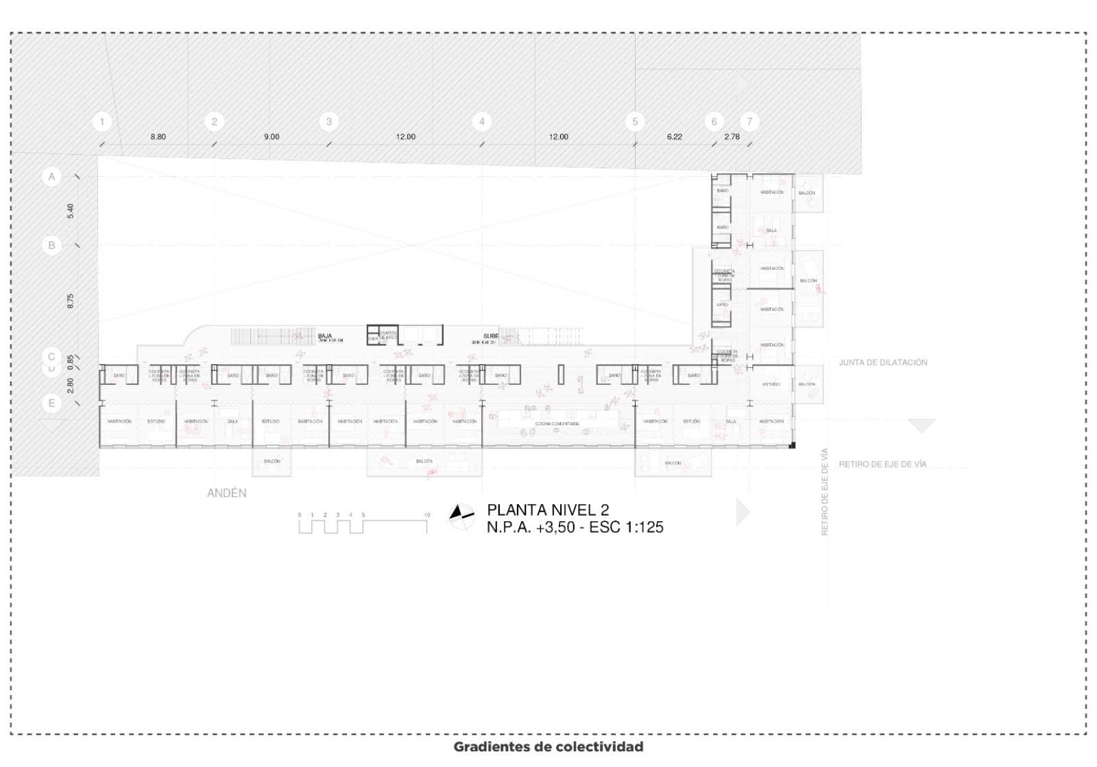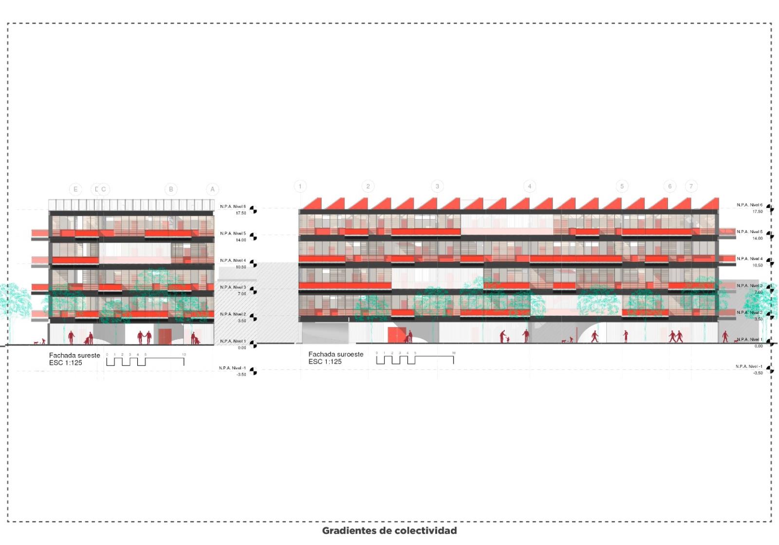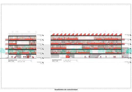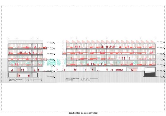 Vivienda Contemporánea Part 1 Project 2022 Esteban Herrera Pontifical Bolivarian University | Colombia Contemporary housing often sterilizes its inhabitants freedom: It prevents adapting the interior and restricting interactions with the exterior.Located in the Manila neighborhood of the city of Medellín, this project is made up of housing units that allow its inhabitants to modify the relationship between spaces or between dwellings by means of mobile panels, to choose with whom and how much they want to share, thus enabling a great variety of lifestyles and levels of coexistence that can change over time. Tutor(s) Carlos David Gonzalez