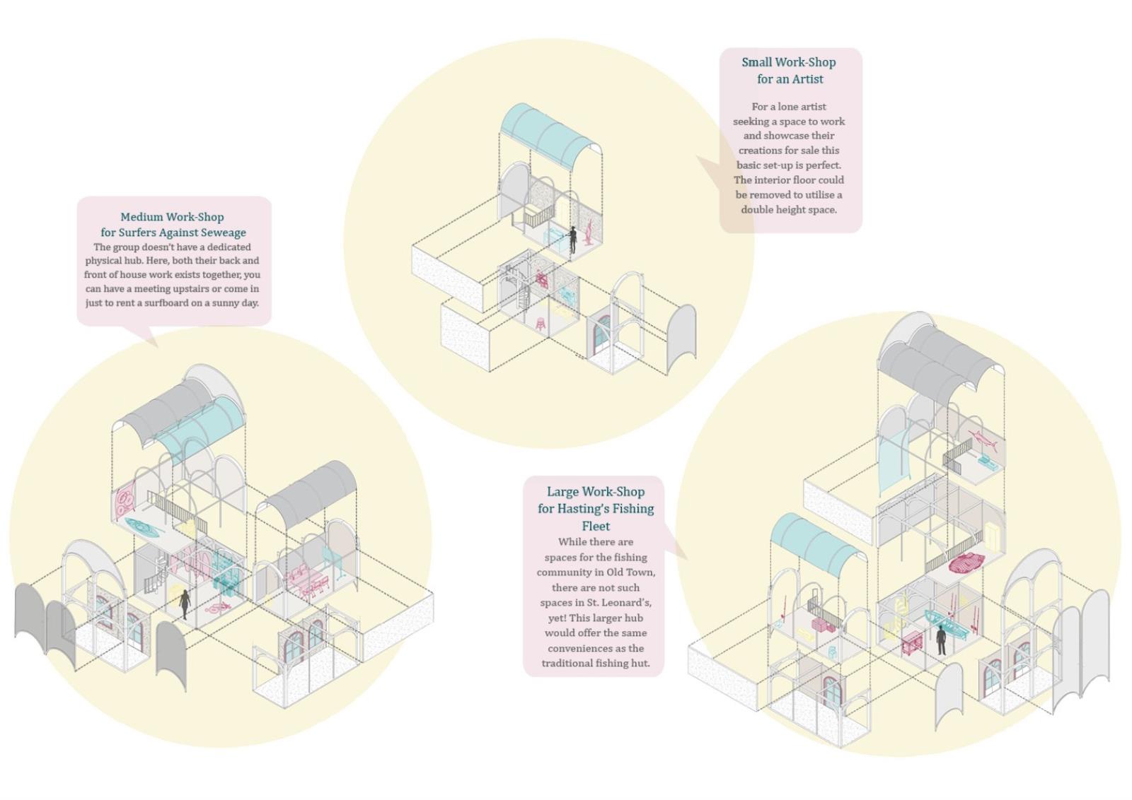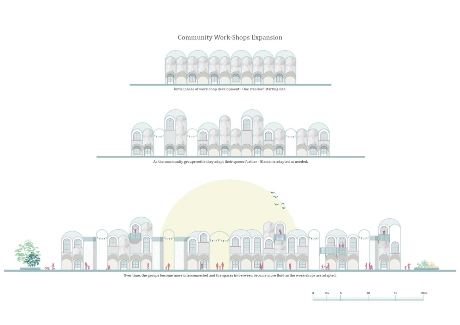 Working with the support of community members through a collaborative design methodology, the proposal integrates workshops and a coastal mixed-used community complex that brings leisure and small local productions together. This encourages unexpected interactions between visitors and locals as well as regenerating the site into a charming new destination.