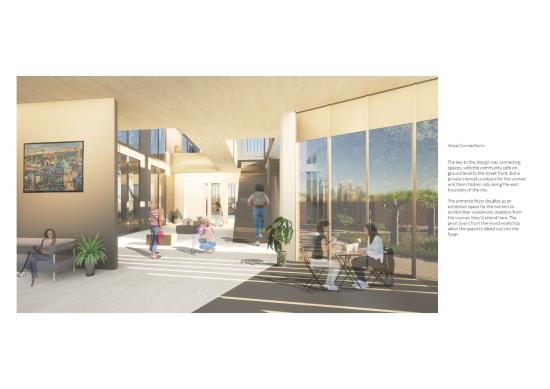 Inspired by the philosophy of Women’s Tec and a growing knowledge of feminist architecture, this project aspires to create spaces that support vulnerable women, refugees and those seeking employment in STEM, a traditionally male dominated industry. Empowering people with technical and creative skill in a light-filled and inspiring environment which promotes social interaction, connects to its context, embraces the street threshold while maintaining its sensitivity to vulnerable users is the thesis of this project.