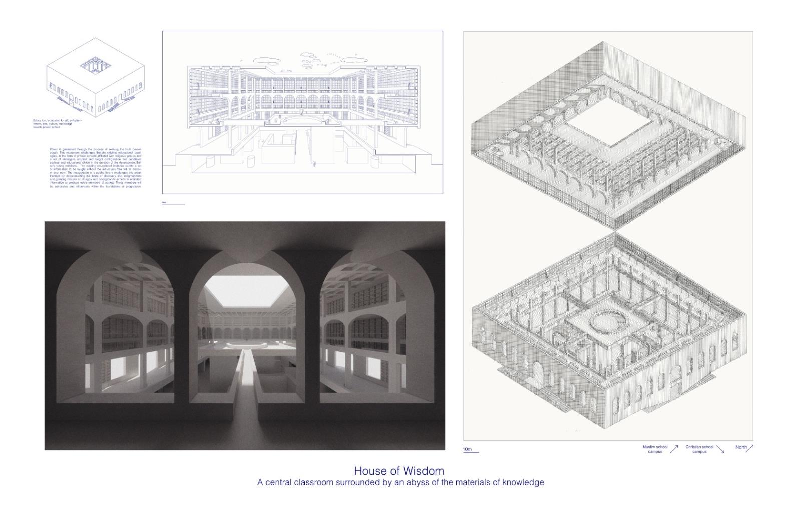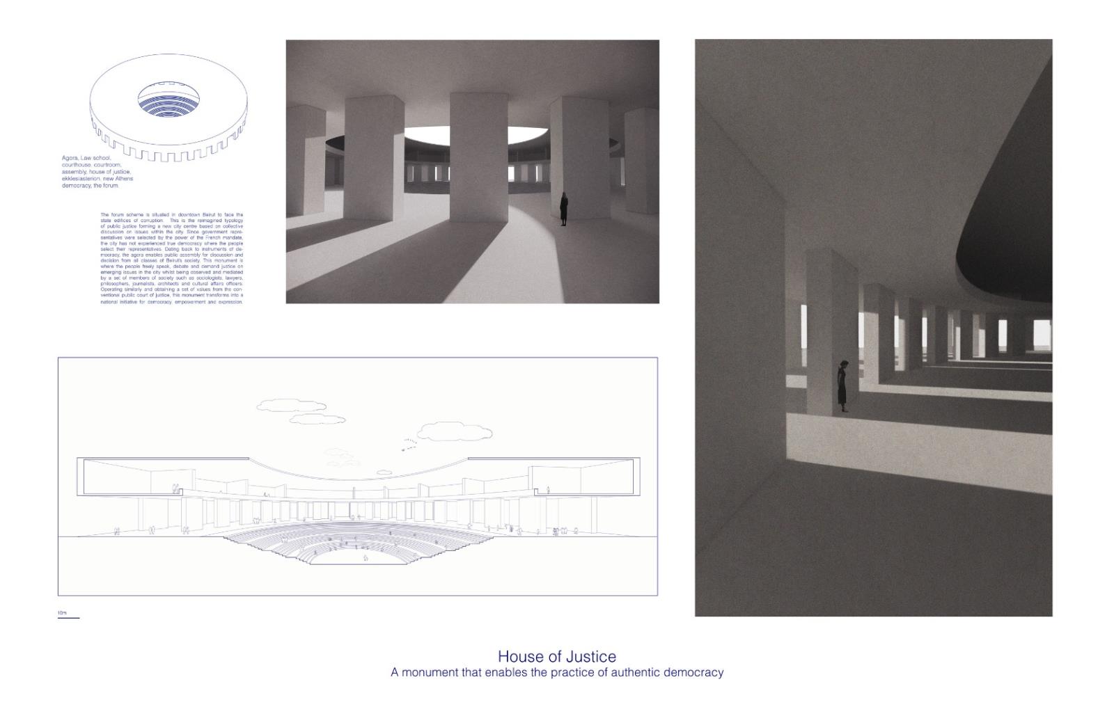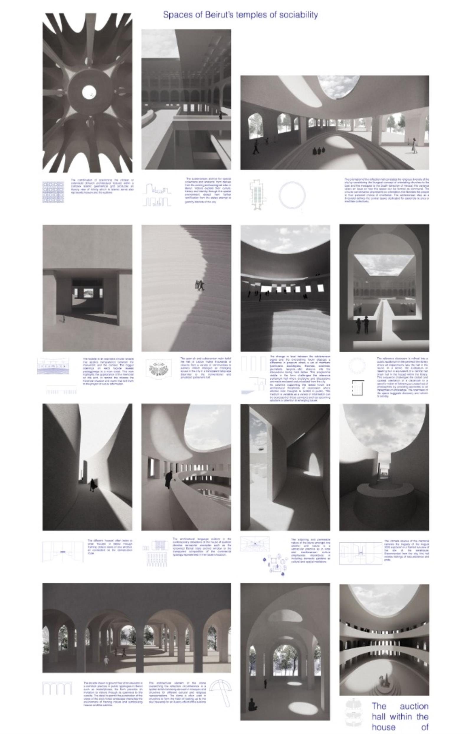 Beirut: A Green Archipelago is a hope-driven urban and architectural intervention project that aims to challenge society’s misconceptions, set the foundation of social reformation and empower the citizens through the consolidation of the religious and ethnics communities of Beirut. Respectively, this scheme ascertains methods and thesis manifestos from the moralising manner of French utopian architect Claude Nicolas Ledoux’s temples of sociability and architectural theorist Oswald Mathias Unger’s response to post war divided Berlin urban development theses. Challenging the demarcation border’s urban environment, the project intervenes in the form of monuments as reimagined typologies dedicated to justice, remembrance, education, meditation and expression. Thus, the monuments explore and challenge the conventional public institutes within Beirut and implement prototype typologies sympathetic to the city’s vernacular.