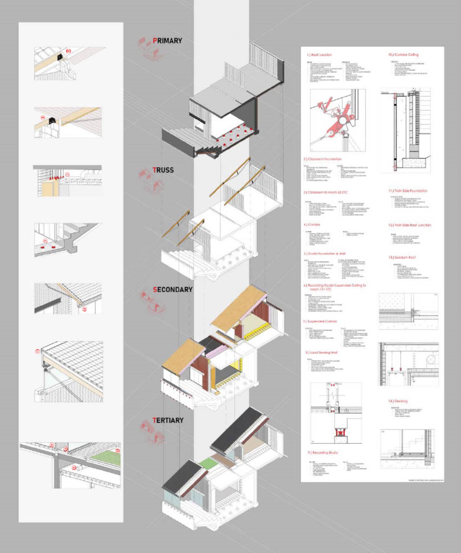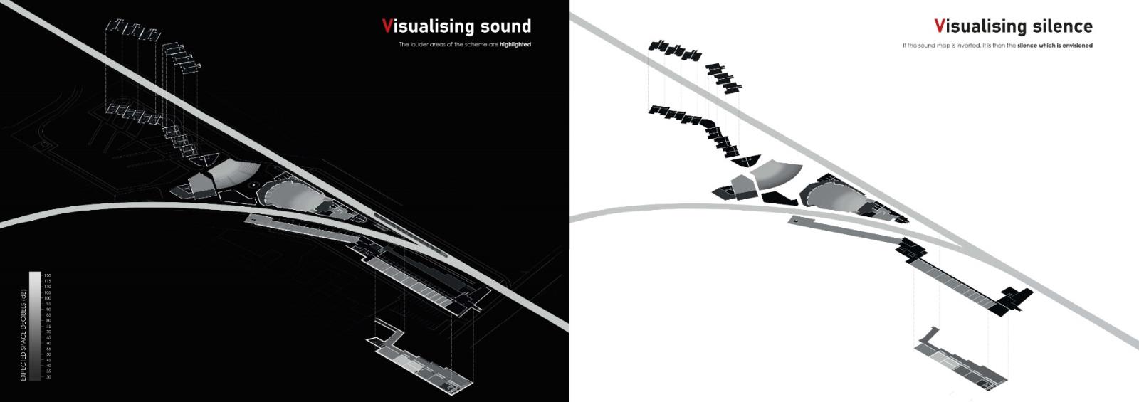 The narrative unfolds through musical notation, composing spaces through harmonious integration and consideration of social-political, historical, intellectual, and emotive needs of the South of Edinburgh. Looking at the contrast of light and darkness, sound, and silence; how accountable is the architect in orchestrating stillness and vibrancy, appropriate to the areas within the scheme?