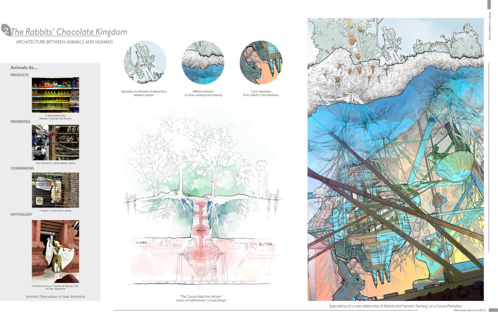 It all started with a curious exploration of animal anthropomorphism, bringing Easter bunnies onto monocultural plantations. These captivating creatures teased the possibilities of animal shelters and questioned the relationships of a chocolate factory’s stakeholders.