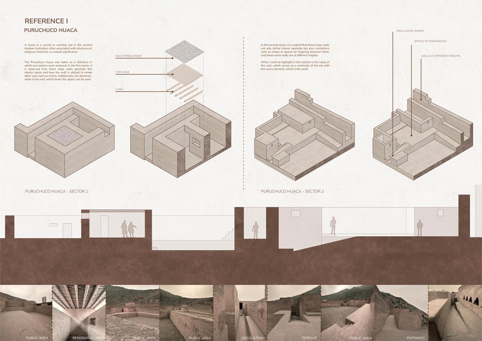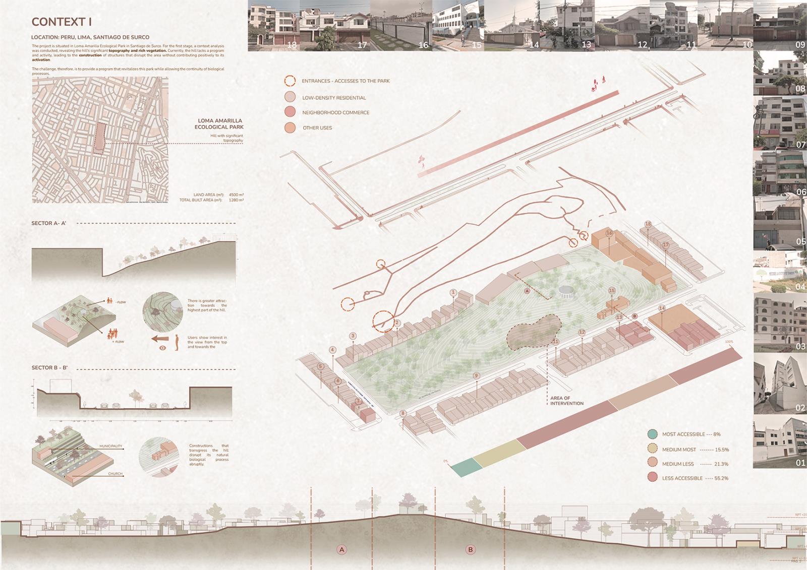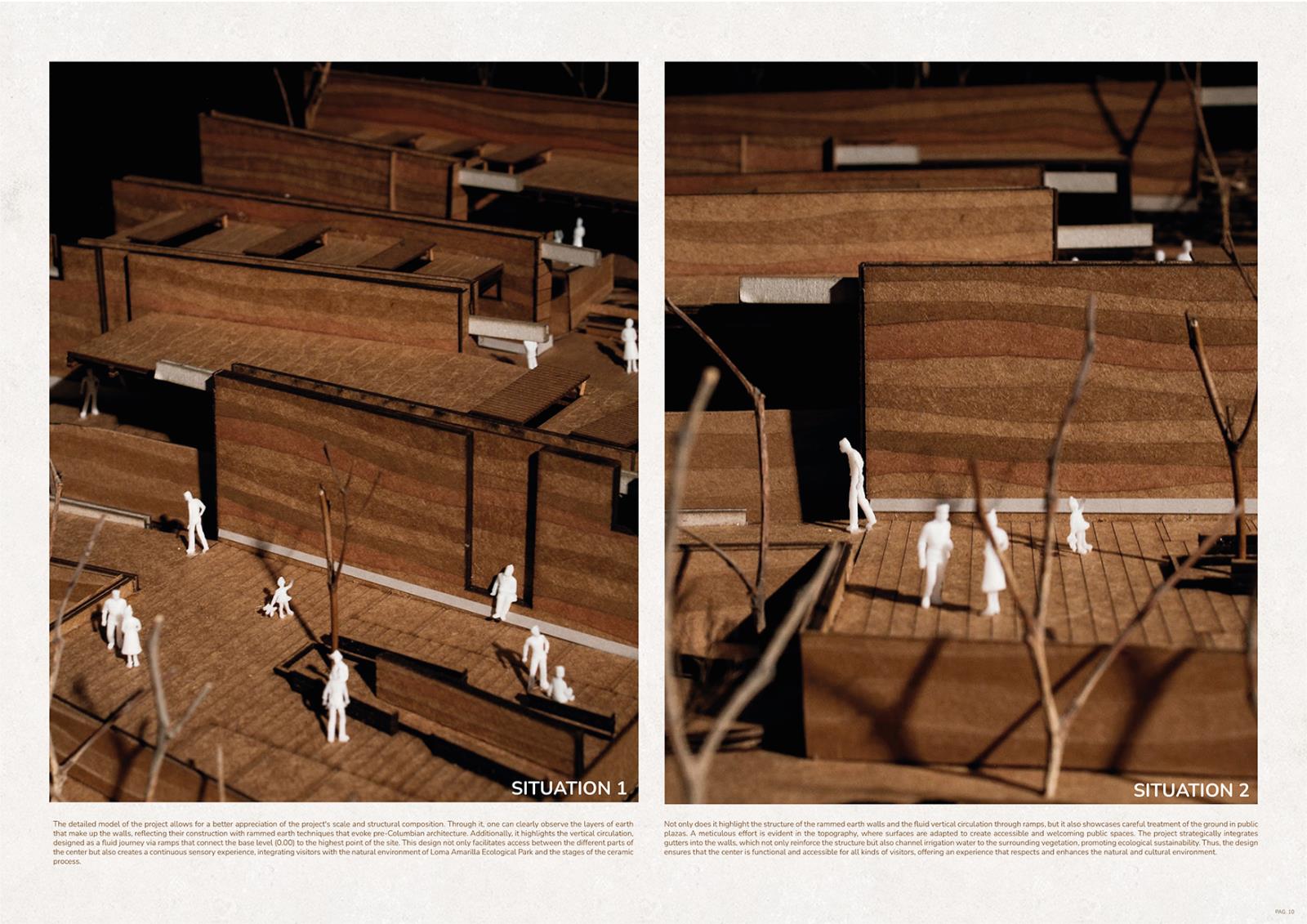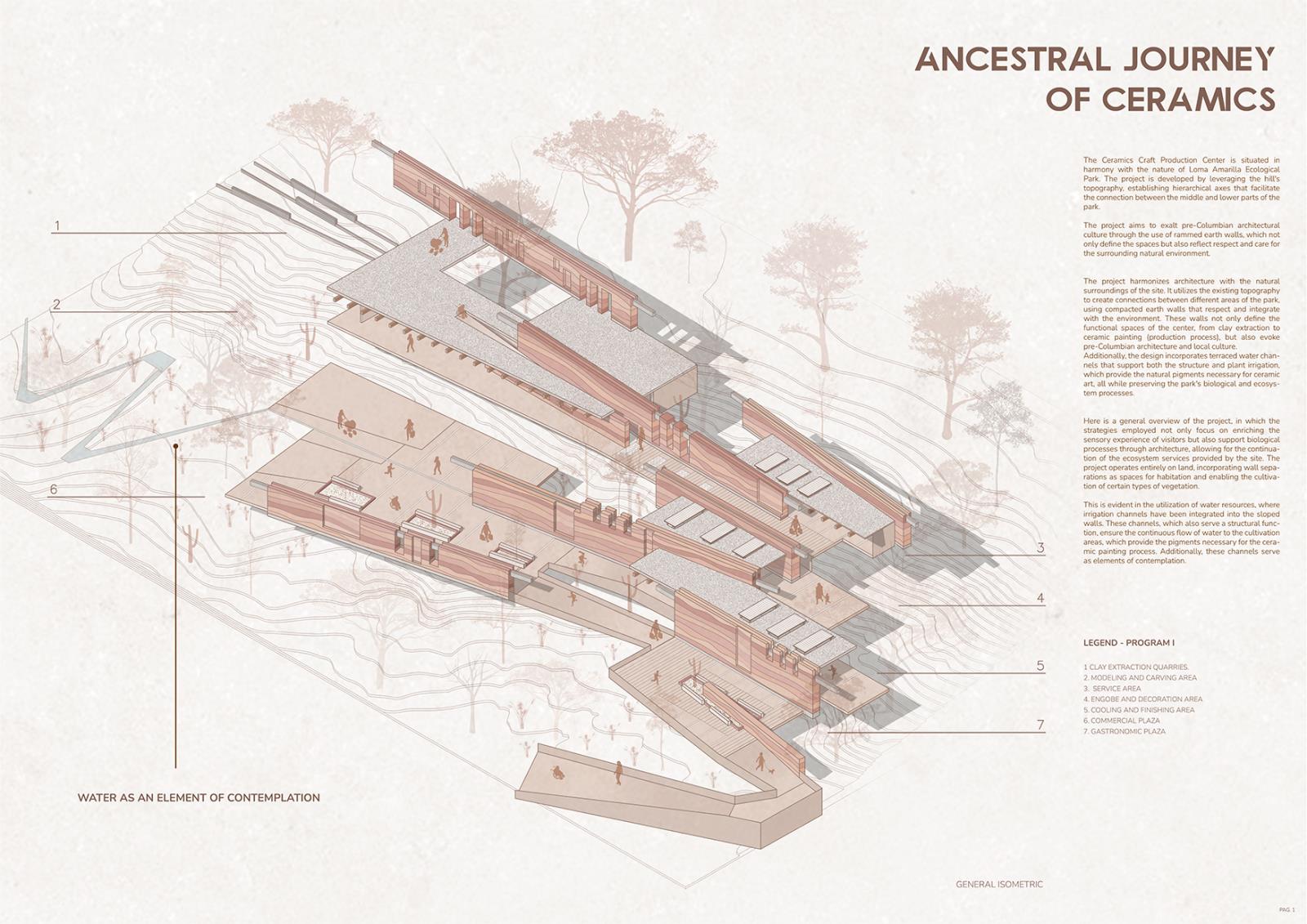 The Ancestral Journey Ceramics is harmoniously situated within Loma Amarilla Ecological Park. The project leverages the hill's topography, establishing hierarchical axes that facilitate the connection between the middle and lower parts of the park.