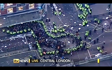 The Production of Space in Protest, Law and Police Action: London, Winter 2010-2011 Part 2 Dissertation 2012 Anthony Powis University of Westminster London | UK This dissertation investigates the production of particular spaces during a series of demonstrations in London during the winter of 2010–2011, through a developed understanding of the social production of space in urban environments. It also investigates the nonphysical structures of public space — the ‘codified regime’ of legislative, juridical and policed landscapes against which everyday lives are practiced — through the careful study of the processes of production of protest spaces.The study draws on a number of detailed interviews conducted with participants and organisers of demonstrations, as well as blogs, twitter feeds, paraphernalia collected from the demonstrations, news reports, broadcasts and analyses. Additionally, an investigation into the historical development of the city as a legal and policed space maps the genesis, application and practical enforcement of public order codes in relation to the construction of particular urban spaces. These histories sketch a number of performative landscapes intrinsic to urban spaces, which counter the notion of ‘space’ as an inert opposite to ‘action’.This understanding provides the context for a number of ‘scenes’ — ‘the march’, ‘the kettle’, ‘the occupation’ — which focus on particular events: examining the production of space through the dialectical contradictions that occur in and between the legal representations of space, the spatial practices of the police and protestors, in their interaction and through associated acts of civil disobedience. These scenes explore how urban public space is produced through the dual realms of representation (in law) and spatial practice (in the street).The research demonstrates the relationship between the construction of spatial boundaries (through contest) and the production of political subjectivities. Representations become realised in practice, in their relationship to people and though performance — a process of identification of people as subjects. Crucial to this formation is the inclusion of ‘space’ both as an explanatory concept and active in the process production. These different forms of spatial production have different effects: the political and juridical are transformed in different ways in each protest site. The dissertation therefore offers an analysis of various forms of protest space, and police response, revealing in their production limits and possibilities for political action. Tutor(s) Nick Beech