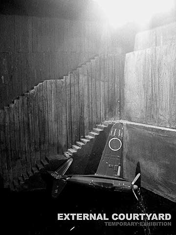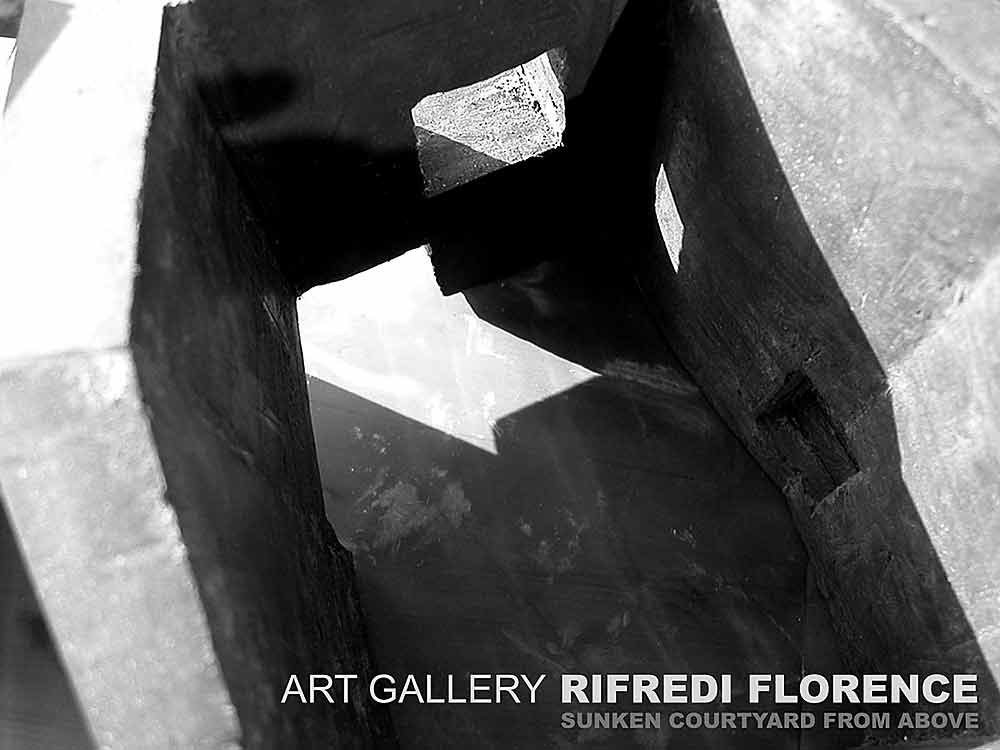 Secondly, the tunnels of the defunct Galileo lens factory in the Rifredi suburb of Florence express the violence of modern optics. Having pre-existed as the shooting ranges for killing machines made on the site, the gallery is a way to explore the relationship between art and violence and repression. The building allows an encounter with these deep subterranean forces that are mysterious and haunting. On the surface the building presents the image of a ghost town modertade by the fruit trees and gardens, spaces for recreation and pleasure which still however suggest a sinister underworld. It evokes a similar sensation to that created in the first scene of Blue Velvet by David lynch, where the view of someone cutting the grass of a suburban garden slowly focuses-in on the grass and the savagery of the natural world and insect kingdom below the tranquil surface.
