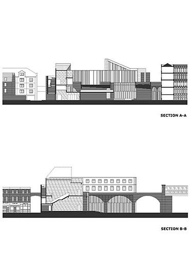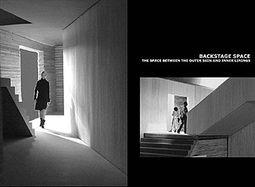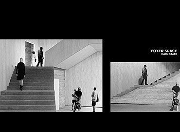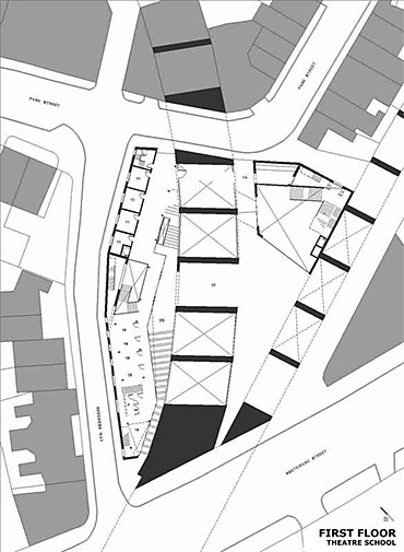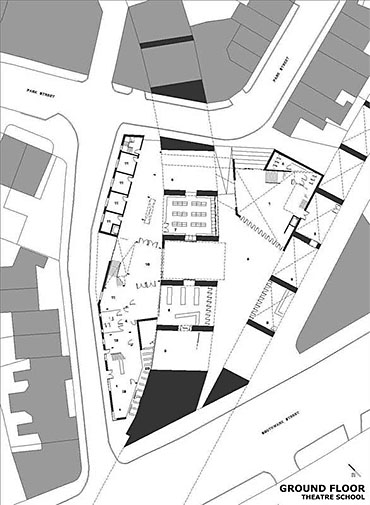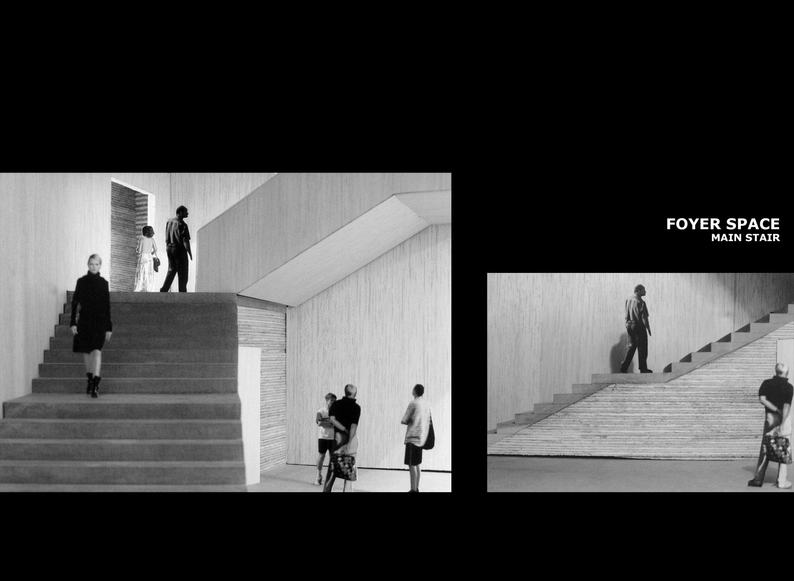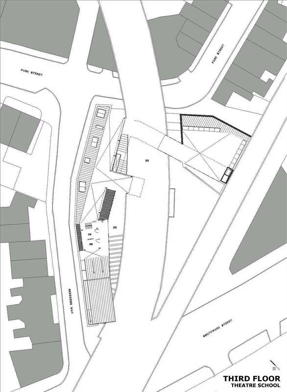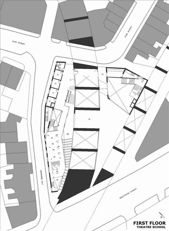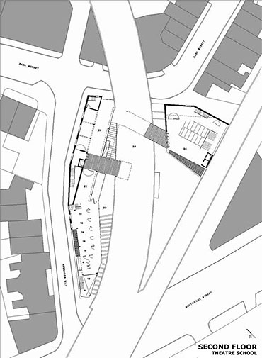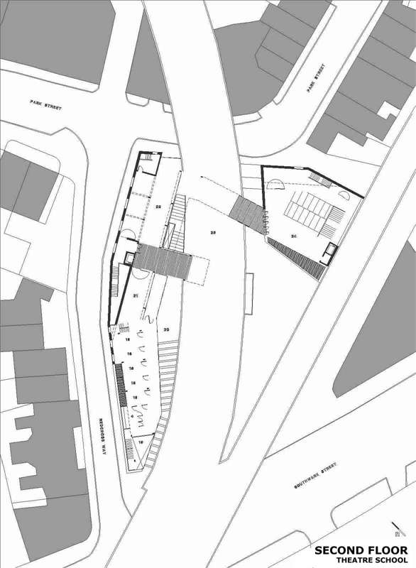 Southwark Theatre School Part 2 Project 2004 Irena Stoeva Kingston University Kingston | UK This project is for a Southwark Theatre School. The school is a higher education facility for the dramatic arts, located north of Southwark Street nearby Borough Market on London’s South Bank. The site consists of an urban void formed by the junction between two railway viaducts, and its immediate surroundings. It is a highly layered fragment of urban fabric with many different activities in a small area. The theatre school builds upon the inherent theatricality of the site, and enriches the existing context by overlaying its own programme onto that of the public domain. The building aims to profoundly situate the students and staff of the school into their social environment. The building provides public performance spaces, teaching facilities and student accommodation. The relationship between the individual, the community of the building, and the city around them, informs the architecture of the school.The proposal is constructed around ideas of democratic and participatory space, which relate to the theatres of ancient Greece, as well as those of Elizabethan Southwark. The school aims to encourage greater participation in theatre performances by challenging the convention of contemporary theatre space. The performance spaces are daylit to undermine the prioritisation of space and create an environment where the audience is no longer a passive witness but aware to be made up of individuals all part of a community. The spatial experience of the building consists of a series of loosely defined, ambiguous, interlocking spaces. These spaces are graduated and differentiated by the changing conditions of the ground and the ceiling. The subtle manipulations of the flow of space establish transition from the most private to the most public areas. Therefore rather than a definitively formed designated theatre space, the performances can take place in various locations. In this way the spatial manifestation of the building becomes a metaphor for the role of th Irena's Theatre School emerged from impressive research into both the city and the idea of theatre – the latter being a key dimension of the history and contemporary reality of the site. The result is a remarkable project which offers an innovative rethinking of the spatial structuring of the theatrical event, allowing for a genuinely participatory experience of the building, in both the performance and the public/foyer spaces. The tectonic quality of the building enhances this ‘ambiguity of boundaries’ and consistently convinces of the appropriateness of the project to both site and purpose.