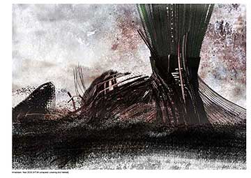 V.En. (Vertical Energy), Lea Valley, London Part 2 Project 2005 Yew Choong Chan University of Westminster London | UK Taking the biomimetic route, my design work is drawn from the work of Professor Marc Baldo of the Massachusetts Institute of Technology, who is pioneering the use of spinach to generate electricity.The scheme looks at combining a power plant and a park together into a regeneration project that will benefit the community in the areas around the Lea Valley. Five vertical towers that are an average of 60 storeys high would house the pods to grow the spinach that is vital to the whole power farm. The protein harvested from the spinach is then used in a photosynthesis process to convert sunlight into electricity, and this power is stored and released as part of the regeneration of the surrounding areas. The towers are also intended as sustainable structures that will burn the physical form of the spinach after extracting the protein. Since the photosynthesis pods are positioned above ground level, this means that the site has the potential again to reintroduce marshlands to the area. This would have great benefits for local wildlife. The site is on the migration path of many species of birds, the towers are designed to create stopping off points for these birds on their journey. A vertical garden would be developed, igniting an ecology of events [plants – insects – birds].As a further by-product, the spinach hydroponic towers would create a significant increase in the oxygen levels and thus fresh air in the surrounding area. Airborne pollution could also be absorbed by the spinach and plants. By using spinach to farm electricity, this proposal would potentially allow London to become a sustainable ‘suburban city’. The studio project this year was subdivided into a series of interconnecting episodes, providing a framework for students to develop their individual thesis agendas. The studio considered the drawing as subject, object and site of the work a speculative environment of the imagination. Chan's project was both highly inventive and superbly designed and presented.