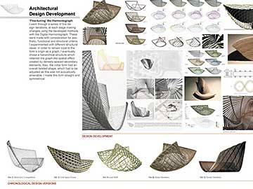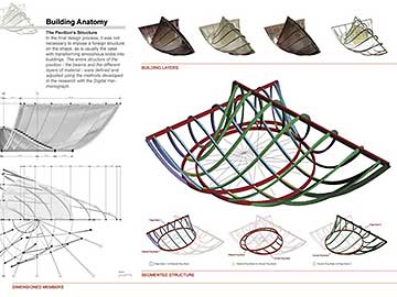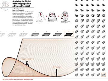 An accomplished pavilion proposal, this work is the first disciplined study of harmonic proportions in three dimensional ‘free form’ known to the author. A highly original piece of work with further potential beyond this specific brief.