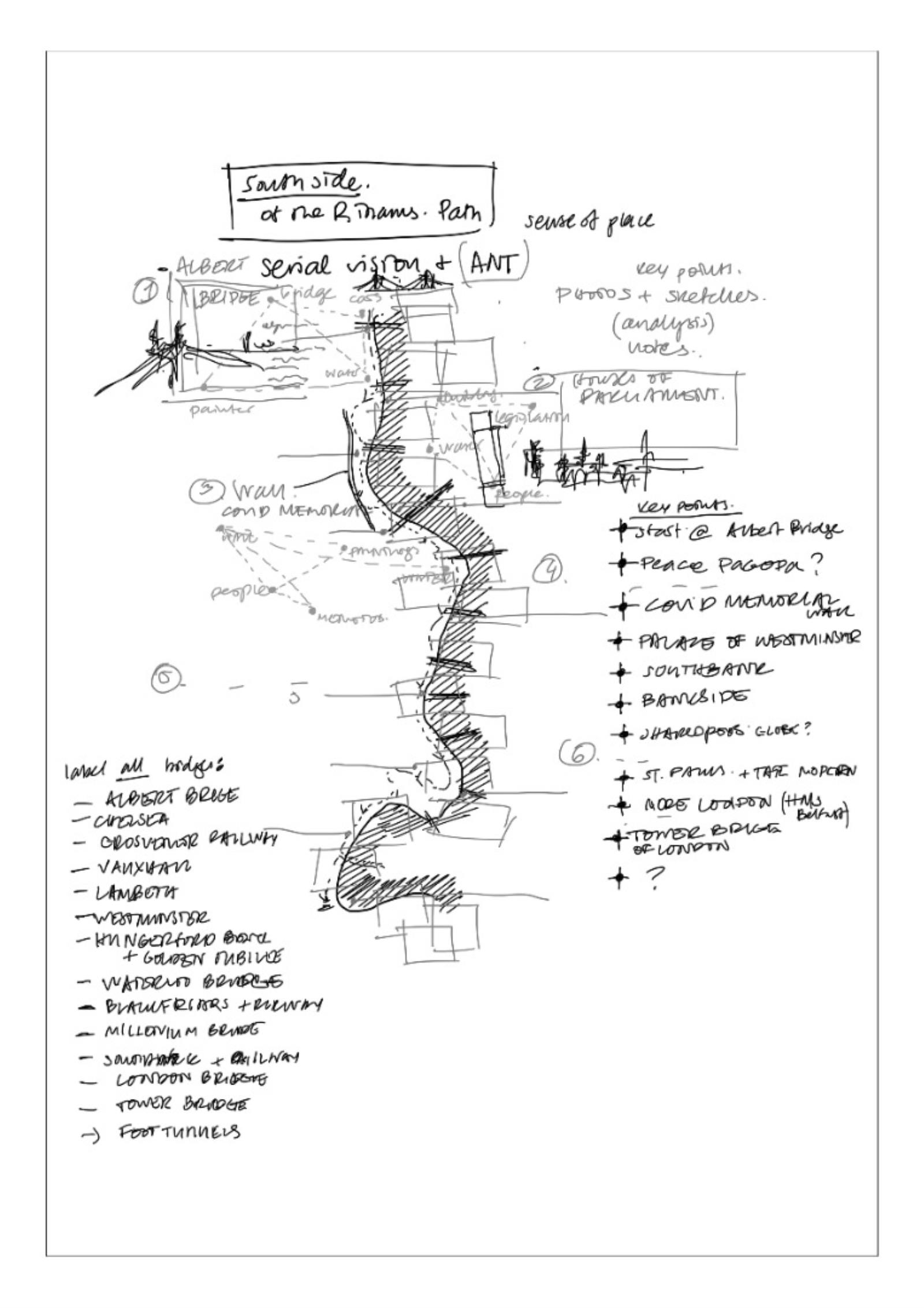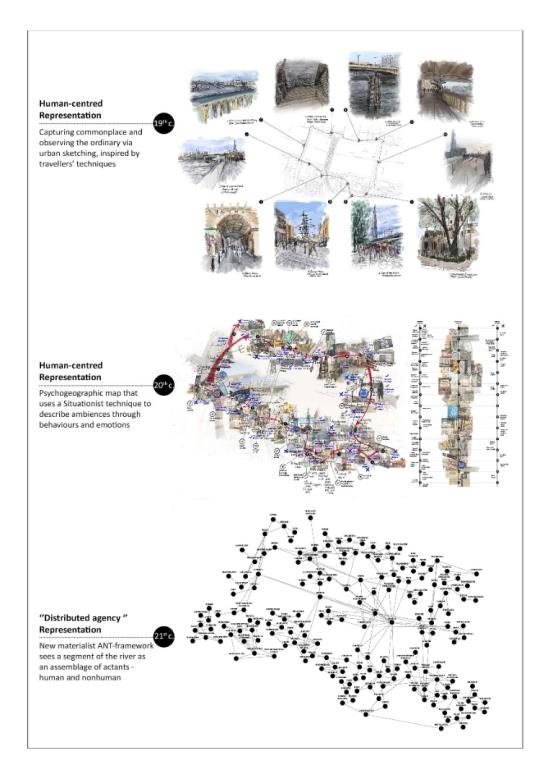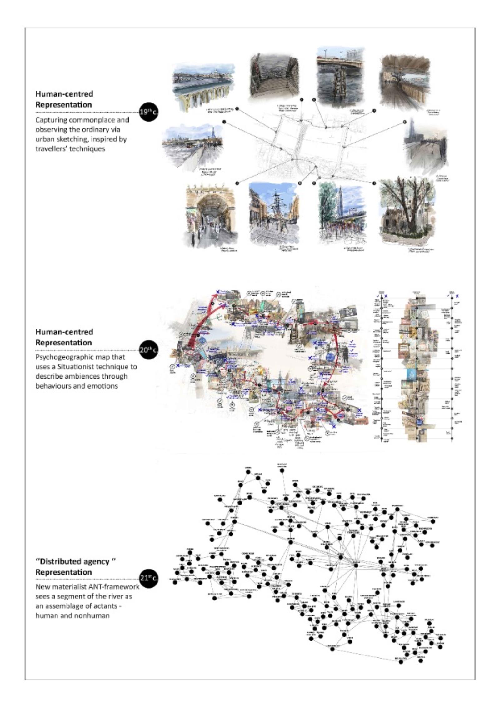 River Rights: The Thames Assemblage - A Common Goods Resource in London Part 2 Dissertation 2022 Margarita Andreeva London South Bank University | UK What if the River Thames was granted legal rights? To address this question, the conceptual and methodological framework of the Assemblage Theory, Actor-Network Theory and New Materialism is fully deployed. The dissertation investigates and represents a segment of the River Thames, the London Bridge and its surroundings, as an assemblage of the current actors and networks involved. Thus, the significance of this research is the attempt to push the architectural debate on climate change in the direction of considering all actants in an assemblage equally.Starting with human-centred techniques, the dissertation re-enacts 19th- and 20th- century methodologies. The author departs from such conventional paradigms to arrive at 21st-century thinking and represent the segment as an assemblage.The findings of the primary research are then projected into the future, which leads to a line of argumentation that suggests a detachment from the subject-object dichotomy, inherited from an anthropocentric way of thinking. This, in turn, leads to a discussion of current environmental movements concerned with the rights of nature, and more specifically, river rights. The dissertation considers the potential assignment of legal rights to the River Thames and its inherent social, political and environmental implications. Tutor(s) Maria Theodorou